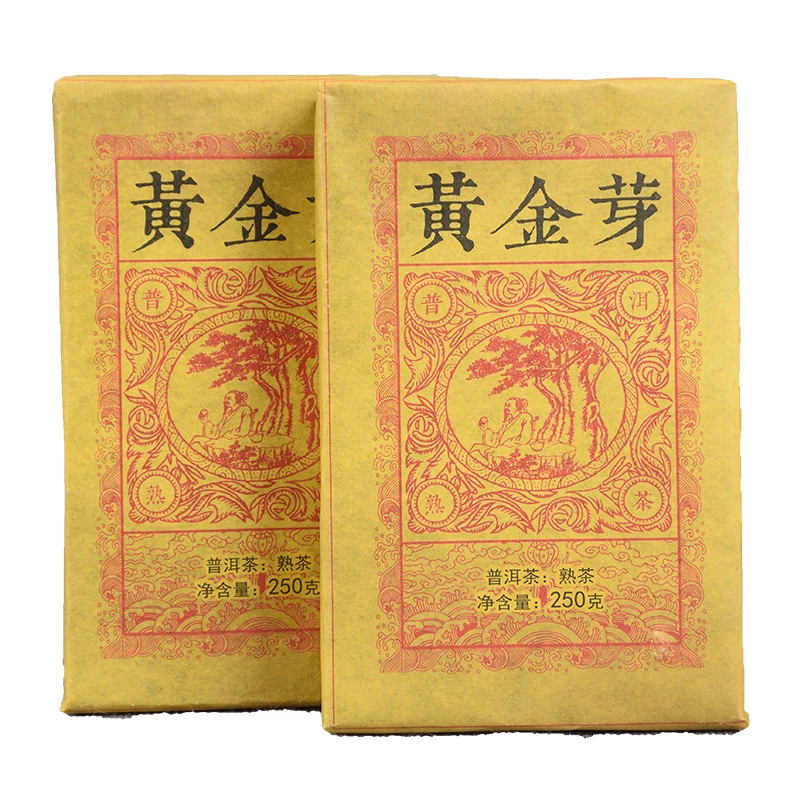 250g Yunnan Pu'er Tea Ripe Tea Golden Bud Ripe Brick Weight Loss Healthy Drink