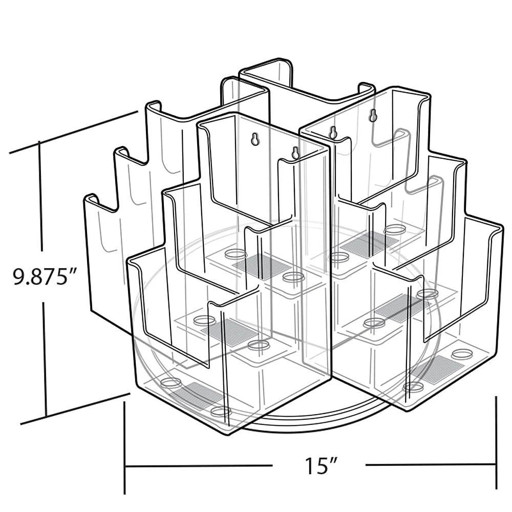 12-Pocket Revolving Trifold Brochure Holder Sold in Multiples of: 1 Material: Crystal Styrene Color: Clear