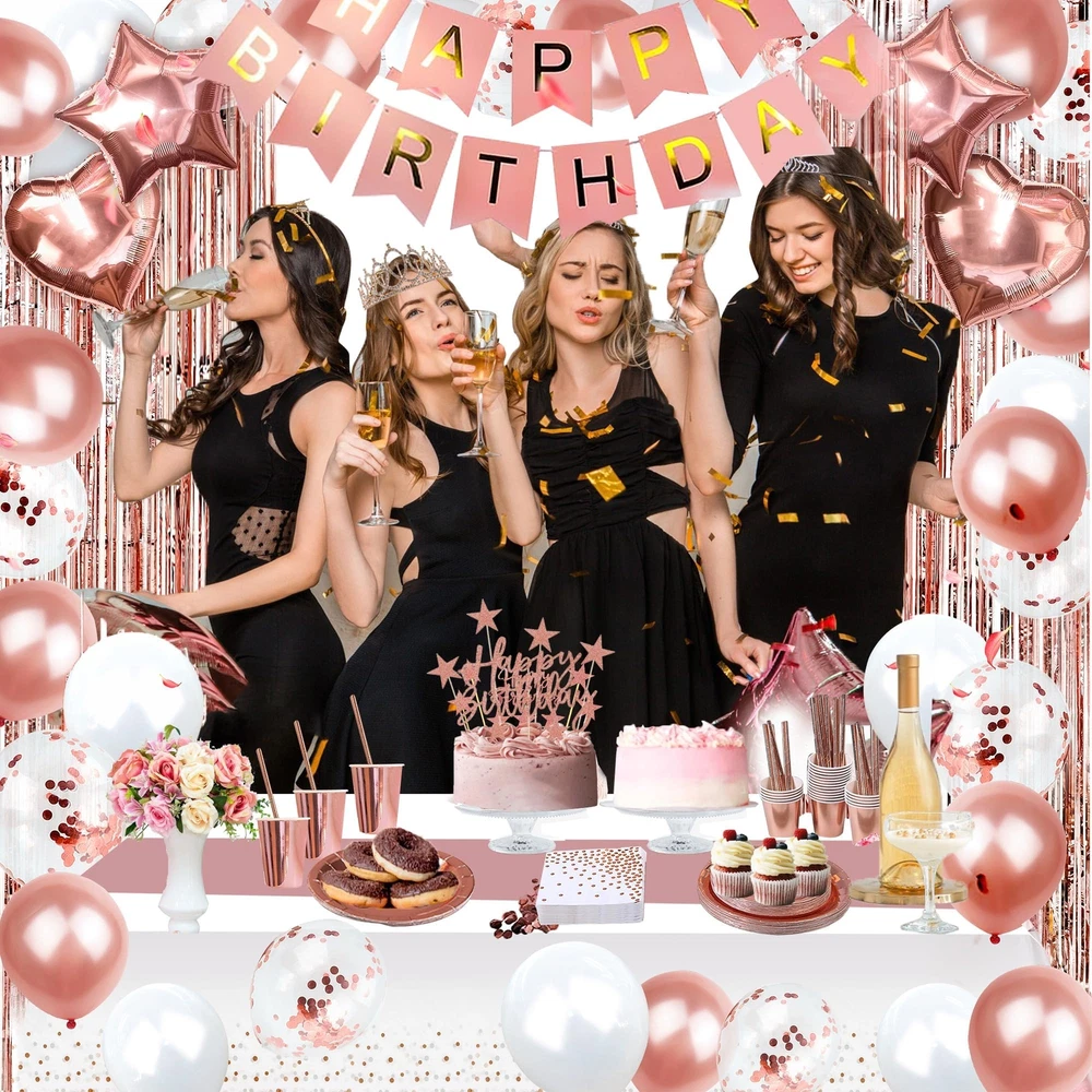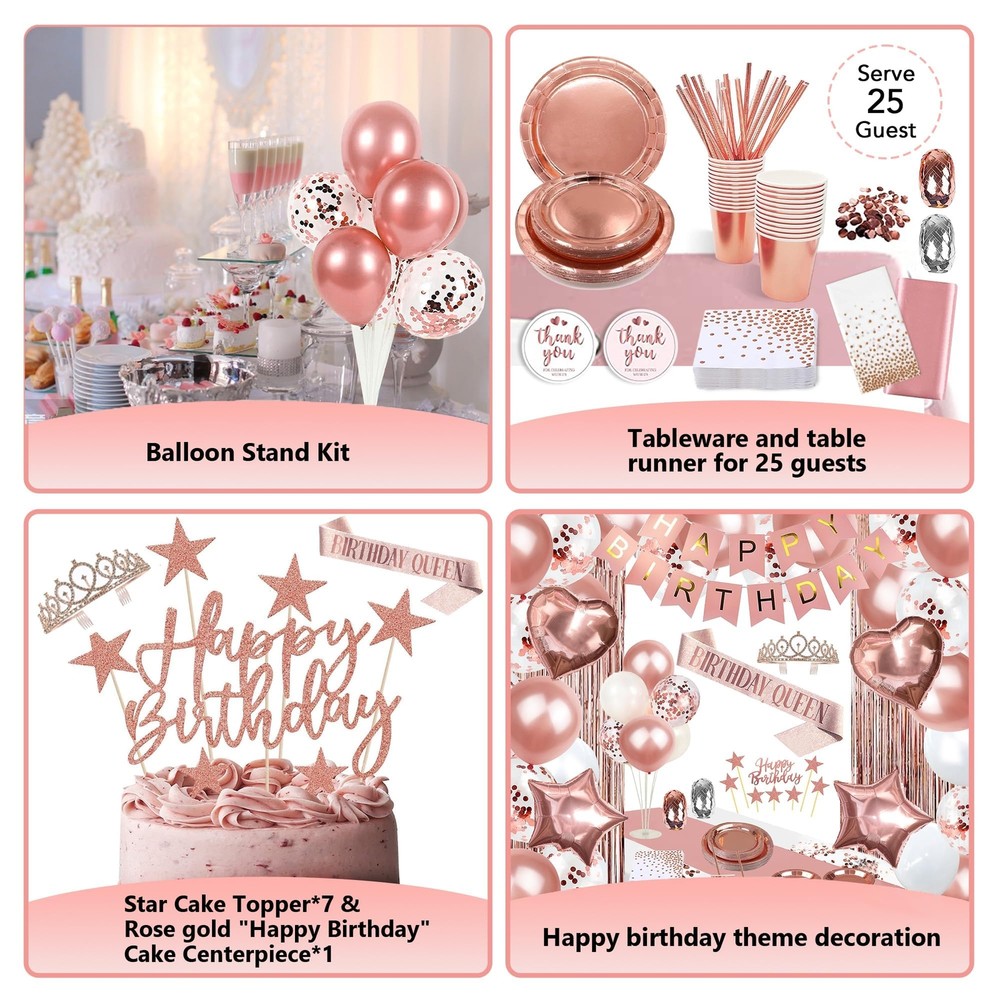 253 Pcs Birthday Decorations for Women Rose Gold Party Decorations for Women ...