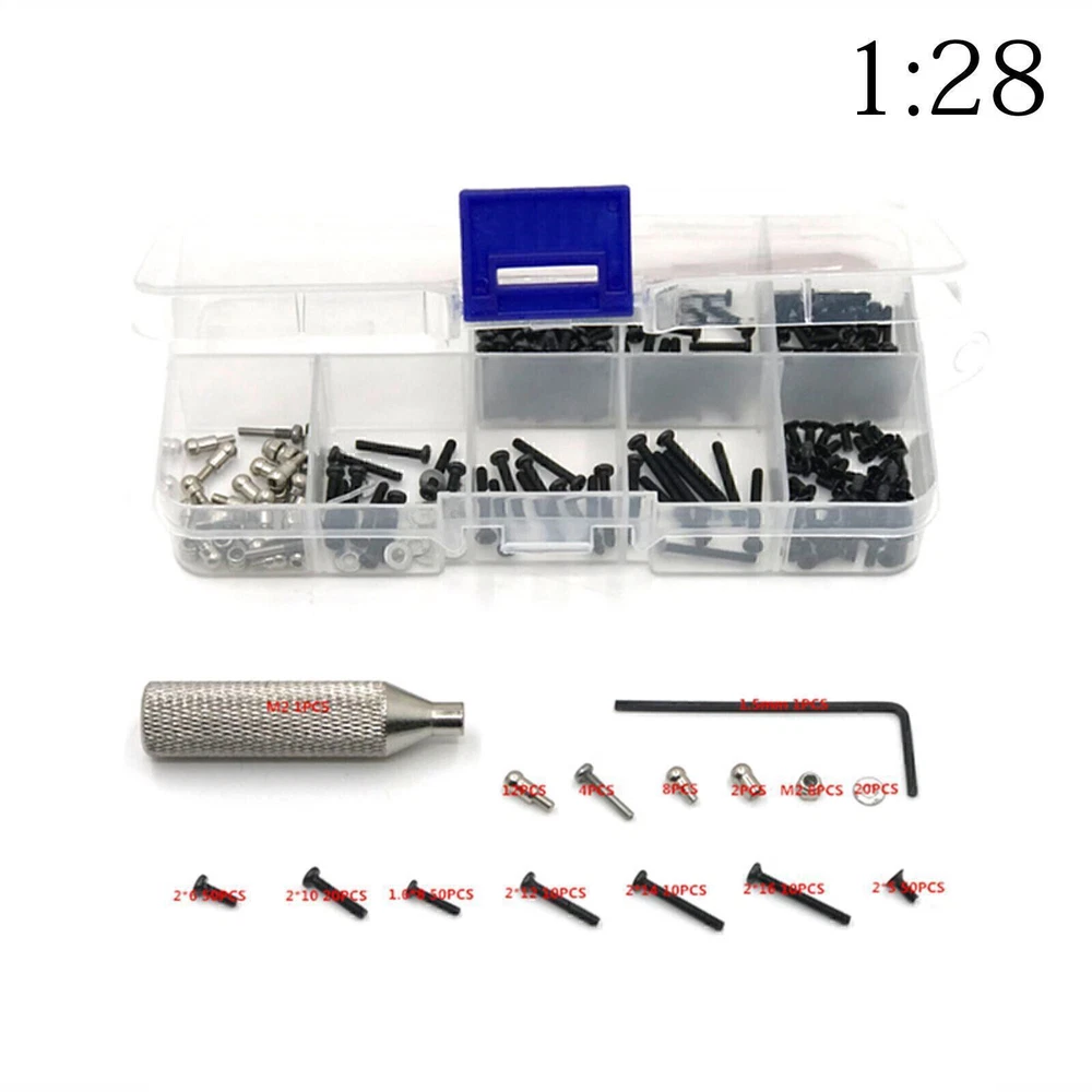 Product Description If you have any questions, please contact customer service first, do not open disputes easily, thank you! Features: Easy to take and durable in use. Made of high quality metal material. A variety of sizes to suit your needs. Metal screws & nuts set with a hexagon wrench. Fits for Wltoys 1/28 284131 K969 K979 K989 K999 P929 P939 rc model. Package Includes: 1pcs* Screw Box 22pcs* Ball Head Screw 4pcs* Upper Swing Arm Screw 1pcs* Tire Wrench M2 1pcs* 1.5mm Hexagon Wrench 8pcs* 2.0 Lock Nut 20pcs* Gasket 50pcs* 2x6 Screw 20pcs* 2x10 Screw 50pcs* 1.6x8 Screw 10pcs* 2x12 Screw 10pcs* 2x14 Screw 10PCS* 2x16 Screw 50pcs* 2x5 Screw About Us We accept all payments authorized by eBay. About Us We accept all payments authorized by eBay. powered by