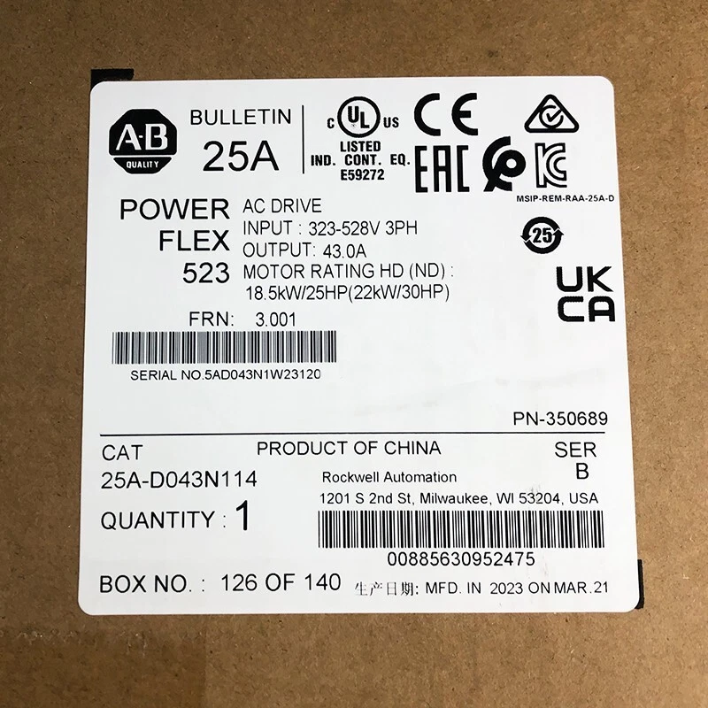 25A-D043N114 PowerFlex 523 22kW (30Hp) AC Drive 25AD043N114 New US Free Tax
