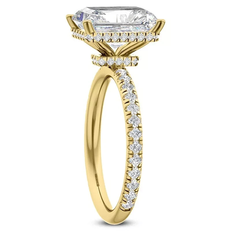 3Ct Radiant Cut Natural Moissanite Women's Wedding Ring 14k Yellow Gold Plated