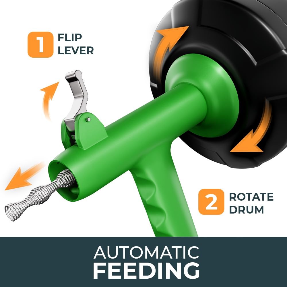 25FT Auto Feed Drain Snake for Sinks & Clogs - 4.0 Model