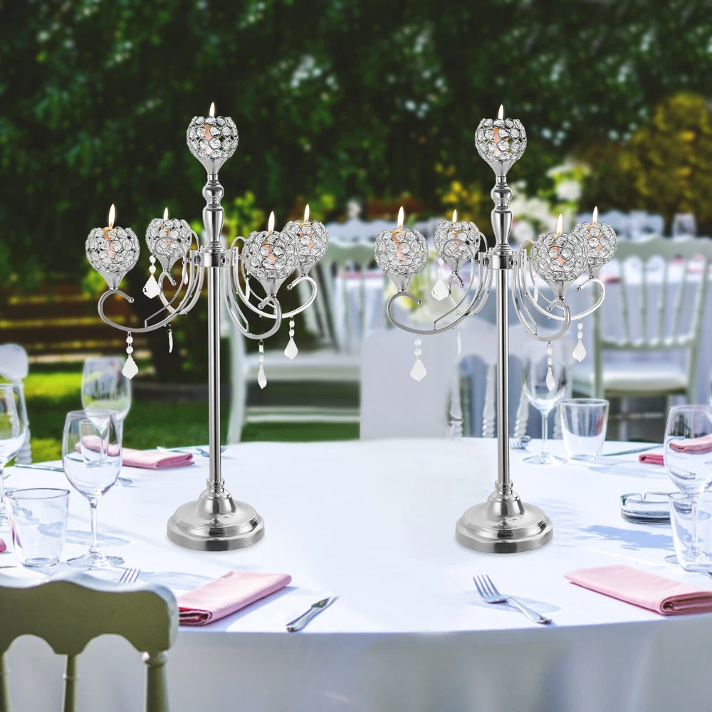 Application It can hold candles up to 1.97 inches in diameter. It can be placed in living rooms, reading rooms, bedrooms, corridors, foyers, patios, terraces, stairs, and other places, filling your home with a warm and romantic atmosphere; What's more, it is also suitable for weddings, engagements, dinners, birthdays, family gatherings, or other formal events Specification Material: Iron, Crystal Process: Electroplating Color: Silver Mount Type: Tabletop Assembly Required: Yes Number of Pieces: 2 Number of Heads: 5 Applicable Candle Diameter: Within 5cm/1.97in Each Base Diameter: 20cm/7.8in Each Product Height: 86cm/33.8in Each Product Width(With Shades): 52cm/20.4in Each Crystal Shade Bottom Diameter: 5.5cm/2.16in Package Size: 42*25*25cm/16.54*9.84*9.84in Gross Weight: 3.32kg/7.32 lbs 2*5-Head Tabletop Crystal Candle Holders Iron Electroplating Crystal Candle Hold Description Romance is an attitude to life and a great way to sublimate the quality of life. With our crystal candle holders, you can enjoy candlelight dinner, ambient room, and so on, so that you and your loved ones or family members can enjoy this romantic moment. What are you waiting for, come and buy it! Key Features Sturdy and Durable: It is made of high-quality iron and crystal with an electroplating process, so it is wear-resistant, rust-resistant, and not easily deformed, ensuring a long service life. Set of 2: Two 5-head crystal candle holders can create elegant atmospheres, and can be placed separately or together to meet your use needs. Atmosphere Maker: When you light the candles in these crystal shades, the candlelight refracts from the crystals in brilliant sparks, creating a dreamy and elegant atmosphere. You can imagine how nice it would be to have a date, get-together, or even read in this romantic atmosphere. Fancy Decoration: The clean lines of silver color and 5 clear crystal shades make the whole product look very elegant and atmospheric, which can embellish your home well! Easy to Clean: Thanks to its smooth surface, detachable crystal shade, and simple construction, you can easily clean it with a soft cloth. Simple Installation: The simple construction and complete accessories allow you to put it together yourself and enjoy the installation process. Ideal Gift: Thanks to its beauty and practicality, you can give it to your friends or colleagues as a housewarming, Christmas, or Thanksgiving gift. Customer Service: We aim to provide quality products and services. If you have any problems, please feel free to contact us. We will reply and solve the problem for you as soon as possible. Details Round Base: The 7.8-inch rounded bases with pads allow the product to stand stably on a table. Round Edges: Smooth, burr-free edges make it not only comfortable to touch, but also care for your candles. Application It can hold candles up to 1.97 inches in diameter. It can be placed in living rooms, reading rooms, bedrooms, corridors, foyers, patios, terraces, stairs, and other places, filling your home with a warm and romantic atmosphere; What's more, it is also suitable for weddings, engagements, dinners, birthdays, family gatherings, or other formal events Specification Material: Iron, Crystal Process: Electroplating Color: Silver Mount Type: Tabletop Assembly Required: Yes Number of Pieces: 2 Number of Heads: 5 Applicable Candle Diameter: Within 5cm/1.97in Each Base Diameter: 20cm/7.8in Each Product Height: 86cm/33.8in Each Product Width(With Shades): 52cm/20.4in Each Crystal Shade Bottom Diameter: 5.5cm/2.16in Package Size: 42*25*25cm/16.54*9.84*9.84in Gross Weight: 3.32kg/7.32 lbs Package Included 2* 5-Head Crystal Candle Holders Payment Delivery details Terms of sales About us Contact us Payment We accept ebay payment 。 Fees such as import duties, taxes are not included in the item price or shipping costs. These charges are the buyer's responsibility. Delivery details Shipping: 2-9 working days to: USA Terms of sales We maintain high standards of excellence and strive for hundred percent customer satisfaction. Feedback is very important to us. We hope that you contact us immediately before you give neutral or negative feedback, so that we can address your concerns. It is impossible to address issues if we do not know about them! About us Your satis faction is our ultimate goal. We work hard to earn your trust and future business. Our certified technicians have tested each item before shipping. The unit comes with 1 year limited warranty on all manufacturing defects. a) If you receive a defective item, you may return it or ask for a discount. Please contact us within 14 days after you receive the package. b) What you returned must be intact and in its original packaging as re? u. Customer is responsible for shipping costs of the returned item. c) We will cover the cost of shipping back t with the shipping rate indicated in the registration page. We will send you a new unit or refund the full payment you paid. Thank you. Contact us Business Hour Business Hour: Monday To Friday: 8:30 AM to 5:00 PM (Beijing China time) Due to time zones, our reply to your questions may not be immediately. But within above working time, we will reply your email within 24 hours. If it's non-workdays, please kindly be patient and wait till Monday. Please contact us with ebay message. Please feel free to contact us if you have any questions. Monday To Friday: 8:30 AM to 5:00 PM (Beijing China time) Due to time zones, our reply to your questions may not be immediately. But within above working time, we will reply your email within 24 hours. If it's non-workdays, please kindly be patient and wait till Monday. Please contact us with ebay message. Please feel free to contact us if you have any questions.