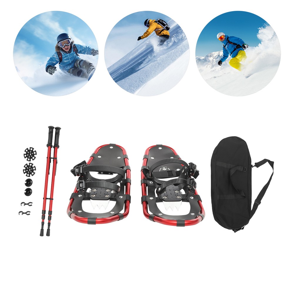 Specifications Color: Red+ Black Style: Modern Material: PE, Aluminum, Stainless Steel Process: Anodic Oxidation Sport Type: Skiing Mount Type: Floor Standing Low Temperature Resistance: -40°C/-40°F Load Capacity: About 50-100kg/110-220lbs(Including Anything Carried by the User and Loads of Snowshoe Walking Equipment) Fit Shoe Size: 35-45EUR Snowshoes Size: 63.5*20cm/25*7.8in Adjustable Trekking Poles Range: 65-135cm/25.59-53.1in Package Size: 67*25*14cm/26.38*9.84*5.51in Gross Weight: 3.65kg/8.05lbs Net Weight: 3kg/6.61lbs Package Included 1Pair* Snowshoes 1Pair* Trekking Poles 1* Carrying Bag Other Accessories for Use 25 Inch Snowshoes, Snowshoes& Adjuatable Trekking Poles, for Adults Men Women Description Good skiing equipment can bring you the ultimate skiing experience. Our snowshoes are made of stable and reliable design and materials to ensure your safety and comfort, and they are easy to put on and take off. The matching height-adjustable trekking poles can increase stability and enhance skiing safety. Whether you are a beginner or an experienced skier, it can meet your needs. Take it with you and have a great time skiing with your friends! Key Features Build to Last: The product is made of premium PE, aluminum, and stainless steel and adopts an anodic oxidation process, which is impact- resistant , low-temperature resistant , and not easy to wear and deform, ensuring long-term use. Stability and Safety: High-strength serrated claw provides better anti-slip effects, strong traction and grip in the snow, and improved skiing safety. Lightweight&Easy to Put Snowshoes: The snowshoes are made from a lightweight yet strong aluminum frame, ergonomically designed to ensure comfortable wearing and smooth, flexible skiing on snow. The double ratchet fasteners easily adapt to most footwear, making them easy to put on and take off. Adjustable Trekking Poles: The 3-section telescopic poles can be adjusted in the range of 25.59-53.1in, which helps you to maintain balance and makes your skiing more convenient and safe. Good Load-bearing: The premium materials and sturdy structure endow the product with a good load-bearing capacity of up to 110-220 lbs, which fits most people's weights. Infinite Joy: In winter, grab a few friends with you to start a skiing battle and enjoy fast sliding on the snow slope, which will greatly enhance the relationship and deepen the friendship. Nice Gift: With its practicality and beautiful appearance, this product is an ideal holiday gift for colleagues, family, and friends. Easy to Carry and Store: The practical carrying bag can store snowshoes, trekking poles, and other accessories, allowing you to carry them for outdoor skiing with ease. Good Customer Service: We stand behind all our guests and look forward to assisting you with your purchase. It is our pleasure to answer your confusion and questions. The end of the story between us is not "we sell and you buy". Details Practical Handle & Wrist Strap: The ergonomic handle makes it easy for you to grip the trekking pole. The wrist strap is designed so that it is not easy to fall off when you are using the poles. Snowshoes Straps: They make your shoes firmly fixed on the deck, and not easy to fall off. Snow Rest: It can increase the contact area between the tip of the pole and the ground, preventing the tip of the pole from sinking into the snow, effectively preventing the hiking pole from sinking, and helping you maintain balance and stability. Application It can be used in ski resorts, outdoor skiing programs, etc. It is suitable for men and women weighing 110-220 lbs(Including anything carried by the user and loads of snowshoe walking equipment). How to Put on the Snowshoes Put on your boots and place the ball of your foot in the center of the snowshoe binding. Tighten the straps on the toes. Adjust the straps. Don't let your feet get too far forward or too far back on the deck. Tighten the straps. The straps should feel snug and just right. (Not too tight, not too loose). Finally, pull to tighten the straps in your heels, and tighten the instep strap. Specifications Color: Red+ Black Style: Modern Material: PE, Aluminum, Stainless Steel Process: Anodic Oxidation Sport Type: Skiing Mount Type: Floor Standing Low Temperature Resistance : -40°C/-40°F Load Capacity: About 50-100kg/110-220lbs(Including Anything Carried by the User and Loads of Snowshoe Walking Equipment) Fit Shoe Size: 35-45EUR Snowshoes Size: 63.5*20cm/25*7.8in Adjustable Trekking Poles Range: 65-135cm/25.59-53.1in Package Size: 67*25*14cm/26.38*9.84*5.51in Gross Weight: 3.65kg/8.05lbs Net Weight: 3kg/6.61lbs Package Included 1Pair* Snowshoes 1Pair* Trekking Poles 1* Carrying Bag Other Accessories for Use Notes Please choose the correct snowshoe size for your weight. Please use this product within the weight-bearing range. Load is the total weight of the user plus whatever they are carrying, such as a backpack, equipment, etc. Please purchase professional helmets, and knee and elbow protectors, and take proper exercise safety measures before use. Please allow the slight color difference caused by the shooting light and 1-3cm error due to manual measurement, and make sure you do not mind before you order. Payment Delivery details Terms of sales About us Contact us Payment We accept ebay payment 。 Fees such as import duties, taxes are not included in the item price or shipping costs. These charges are the buyer's responsibility. Delivery details Shipping: 2-9 working days to: USA Terms of sales We maintain high standards of excellence and strive for hundred percent customer satisfaction. Feedback is very important to us. We hope that you contact us immediately before you give neutral or negative feedback, so that we can address your concerns. It is impossible to address issues if we do not know about them! About us Your satis faction is our ultimate goal. We work hard to earn your trust and future business. Our certified technicians have teste