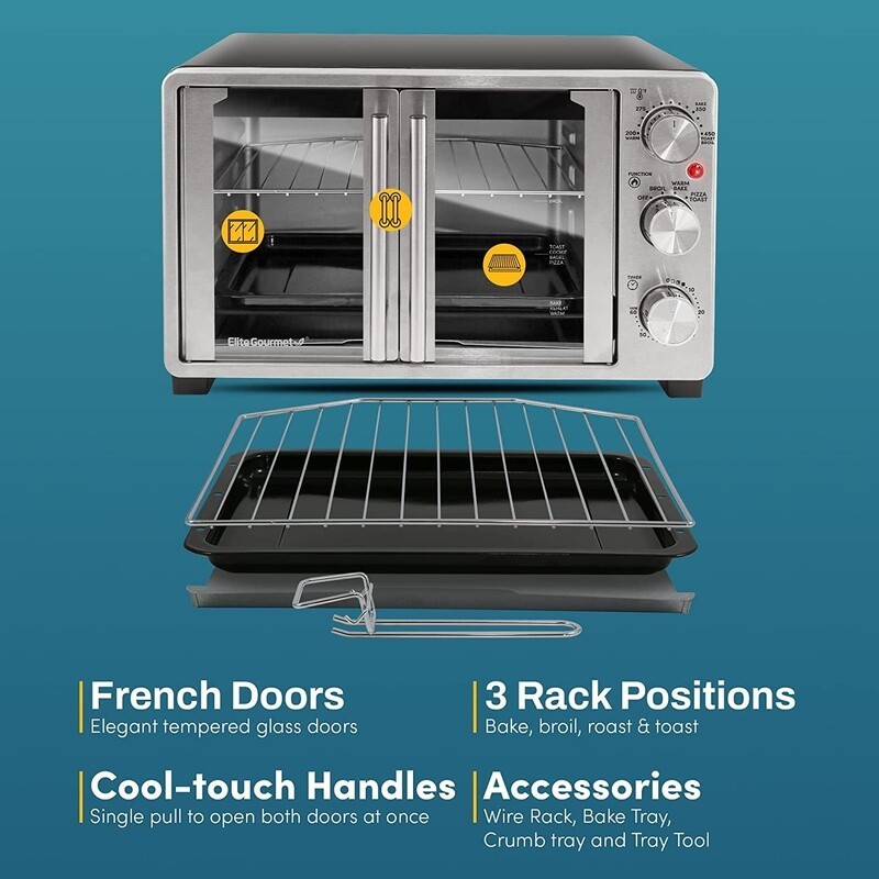 8-Pcs Blue/Chocolate Branch Reversible Bed in A Bag Comforter Set Queen HOT 64.63 USD 68.75 USD Free shipping 6% off 5 Qt Tilt-Head Glass Bowl with Measurement Markings 70.46 USD 74.96 USD Free shipping 6% off Red Cedar Grand Chalet Wild Bird Feeder 14 lb. Garden Outdoor 1 Pack US 48.75 USD 51.86 USD Free shipping 6% off Garage Storage Rack Adjustable Shelves Shelf Organizer Heavy Duty 4000 lb US 64.11 USD 68.2 USD Free shipping 6% off 250PSI Pro Full Flow Metal Fireman Nozzle Watering Washing High Pressure Sprayer 30.45 USD 32.39 USD Free shipping 6% off Medium Steel Mailbox and Post Combo Waterproof Package Delivery Box Outdoor US 49.9 USD 53.09 USD Free shipping 6% off 10.5 Gallon Trash Can Plastic Slim Step On Kitchen Garbage Can Trash Can HOT 52.58 USD 55.94 USD Free shipping 6% off Large Entertainment Stand TV Stand up to 50 inch TV with Side Storage Cabinet 108.14 USD 115.04 USD Free shipping 6% off 2 Pack Wall Mounted Storage Garage Shelves Heavy Duty Wall Shelving 65 Lbs 72.83 USD 77.48 USD Free shipping 6% off 22" Butcher Saw Hand Meat Bone Saw Hand Saw Kitchen Commercial Cutting Tool 36.43 USD 38.76 USD Free shipping 6% off 12 Piece Set Dinnerware Black & White Medallion Plates Bowls Kitchen Stoneware 46.42 USD 49.38 USD Free shipping 6% off 10 Inch Oscillating Table Fan TurboForce Air Circulator Quiet 3 Speed Wall Mount 40.9 USD 43.51 USD Free shipping 6% off Introducing the ETO2530M New double French door 25l countertop oven. The perfect stand-in or supplement to conventional ovens. This dual door convection oven will have you forget about your traditional oven altogether. Toast, bake, broil, and roast your way to delicious, hearty meals and decadent desserts - this oven can do it all. The spacious interior boasts 3 rack positions so you can bake a 12inch pizza, warm dinner rolls, and broil a casserole all at Gourmet double door countertop oven. Includes French-style doors, 1 wire rack, 1 enamel bake tray, crumb tray and a tray removal handle. Removable parts are all dishwasher safe. Avoid heating up your kitchen with a big conventional oven, save time and use less energy with the double French door countertop oven, the perfect supplement for the holidays when your kitchen needs goes on double duty. 25L XL CAPACITY: Fits 6 slices of toast and cooks up to an 11lb roast. Three rack positions plus 0. 9cuft capacity can fit up to a 12" pizza with interior dimensions of 13. 25"x 13. 50"x 8. 95". FRENCH DUAL DOOR DESIGN: Allows you to open one or both doors at a time saving precious counter space. Three rack positions allow you to cook multiple dishes at once. PRECISION COOKING CONTROL: The Oven ETO2530M New built-in heat selector switch allows you to select numerous cooking features for Baking, Broiling, Toasting, Pizza and Keep Warm. ADJUSTABLE TIMER: The oven includes a 60-Minute timer with indicator bell and toast shade settings. 1500 WATTS OF POWER: Optimize your cooking needs with an adjustable thermostat from 200°F to 450°F and 1500 watts of cooking power You may also like Smart Humidifier Large Room Warm Cool Mist 60Hr Timer Humidity Sensor Alexa New 101.42 USD 107.89 USD Free shipping 6% off Self Watering Raised Garden Bed Planter W/ Drainage Plug Outdoor Herbs New 92.53 USD 98.44 USD Free shipping 6% off 15x6.00-6 Lawn Mower Tires 4 Ply Tubeless Front Tire Assembly Replacement New 105.22 USD 111.94 USD Free shipping 6% off Air Purifier Whole House Smart WiFi Large Rooms 3175 Sq Ft HEPA 3-In-1 Filter 317.15 USD 337.39 USD Free shipping 6% off Inflatable Paddle Board Ultra Light Non Slip SUP 3 Fins Backpack Accessories New 253.64 USD 269.83 USD Free shipping 6% off Tool Set W/ 8V Pink Cordless Drill & LED Rechargeable Battery Multi-functional 73.23 USD 77.9 USD Free shipping 6% off Heavy Duty Lightweight Garden Hose 5/8in x 75ft Drinking Water Safe Flexible New 68.43 USD 72.8 USD Free shipping 6% off 4 In Portable Mini Table Saw Electric Cutting Machine 60W DIY Craft Tool New 64.99 USD 69.14 USD Free shipping 6% off Stair Climber Hand Truck Aluminum Dolly Cart 330Lb Capacity Foldable Portable US 164.87 USD 175.39 USD Free shipping 6% off 24lb Multipurpose Copy Paper 8.5x11 97 Bright White 5000 Sheets Jam-Free New 114.11 USD 121.39 USD Free shipping 6% off Collapsible Cardboard Trash Cans 22.3 Gallon Reusable Disposable 6-Pack White 95.72 USD 101.83 USD Free shipping 6% off 6 inTwin Memory Foam Mattress Medium Firm Pressure Relief Breathable Cover US 114.09 USD 121.37 USD Free shipping 6% off