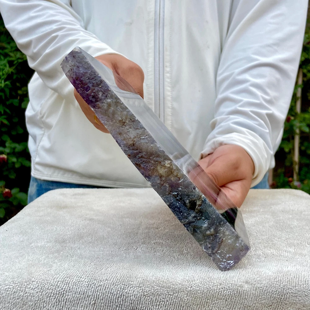 2.5LB Natural Rainbow Fluorite Obelisk Crystal Wand for Healing and Energy