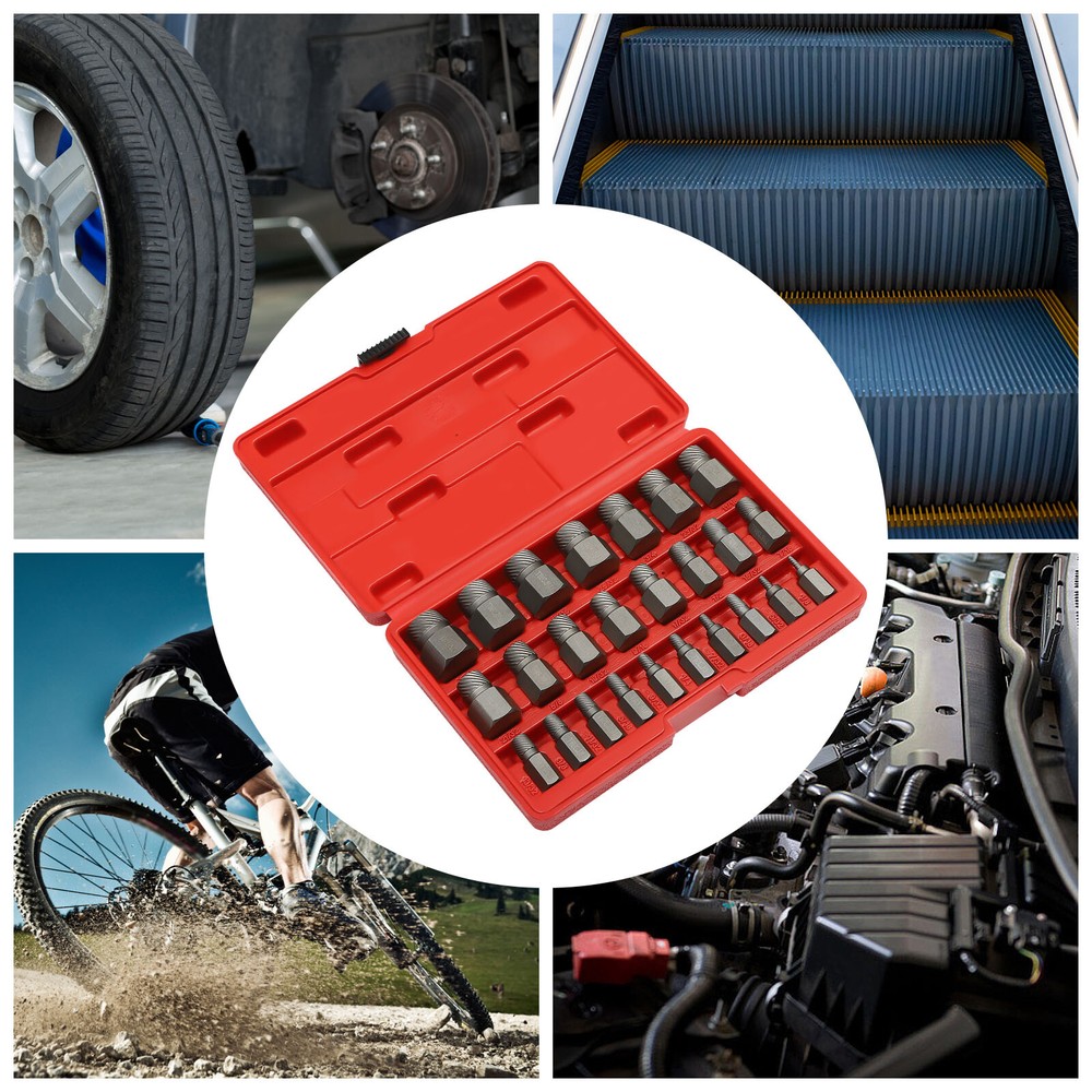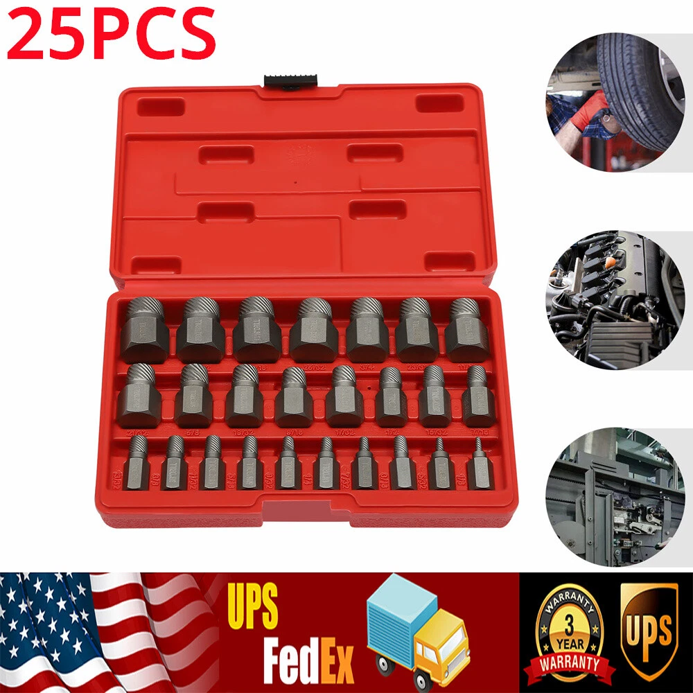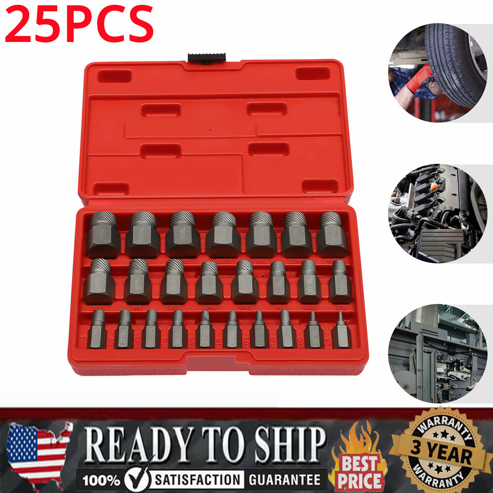 New 25 Pieces Damaged Bolt Remover Easy Out Stripped Bolt Extractor Socket Set Description The 25-piece multi-spline screw extractor set can meet your multi-size needs. The carrying case included in the package can make your storage and on-the-go carrying easier. The high-hardness chrome molybdenum steel and the fine hardening and sandblasting process will provide excellent quality assurance for the product. It will be your powerful helper for removing bolts and other accessories! Key Features High-quality Material: This product is made of high-quality chrome molybdenum steel, with high hardness, strong pressure resistance, high wear resistance, and long service life. Easy to Carry: The lightweight of 4.63 lbs and the easy-to-carry case allow you to easily carry it anywhere you want to go. High Precision: The precision machined multi-faceted active teeth with reverse helix design provide high precision and stronger clamping force. Easy to Clean: The simple structure and smooth surface make it easy to clean. Dust and stains can be easily wiped away with a rag. Multiple Size Options: The 25-piece set gives you more size options, allowing you to match more bolts and remove them quickly. Easy to Use: Size markings on the box allow you to quickly select the right extractor, saving your time and efforts. Anti-corrosion and Anti-rust : Hardened and sandblasted surfaces provide superior corrosion and rust protection, thus effectively extending the life of the product. Good Customer Service: Communication is the best way to solve problems. If you encounter any problem after purchase, please contact us in time before opening or unpacking the box. We will do our best to solve the problem for you. Details Hexagonal Head: The hexagonal head is designed to fit sockets and wrenches, allowing the product to apply maximum torque. Carrying Case: The right size groove in the carrying case can hold extractors stably. Application This product is suitable for removing damaged screws, bolts, nuts, studs, fittings, threaded tubes, and pins and is compatible with hand tools, power tools, or pneumatic tools. It is suitable for homeowners, carpenters, mechanics, artists, hobbyists, etc. Specification Material: Chrome Molybdenum Steel Color: Red, Silver Process: Hardening, Sandblasting Number of Pieces: 25 Assembly Required: No Size: 1/8"(3.2mm),5/32" (4mm), 3/16"(4.8mm), 7/32" (5. 5mm), 1/4" (6.3mm), 9/32" (7mm), 5/16" (8mm),11/32" (8.7 mm), 3/8"(9. 5mm), 13/32" (10.3mm), 7/16"(11.5mm), 15/32" (12mm), 1/2" (13mm), 17/32" (14mm), 9/16"(14. 5mm), 19/32 "(15.5mm), 5/8"(16mm), 21/32" (1 7mm), 11/16" (18mm), 23/32" (18.5 mm), 3/4"(19.5mm), 25/32"(20mm), 13/16"(21mm), 27/32" (22mm), 7/8" (23mm) Gross Weight: 2.1kg/ 4.63 lbs Net Weight: 2kg/ 4.41 lbs Product Size (Outer Box): 22.5*16*5cm/8.8*6.2*1.9in Package Size: 26*19*9 cm/10.24*7.48*3.54 in Package Included 1 * Multi Spline Screw Extractor Set Notes Please allow the slight color difference caused by the shooting light and the 1-3 cm error due to manual measurement, and make sure you do not mind before ordering. Payment Delivery details Terms of sales About us Contact us Payment We accept ebay payment 。 Fees such as import duties, taxes are not included in the item price or shipping costs. These charges are the buyer's responsibility. Delivery details Shipping: 2-9 working days to: USA Terms of sales We maintain high standards of excellence and strive for hundred percent customer satisfaction. Feedback is very important to us. We hope that you contact us immediately before you give neutral or negative feedback, so that we can address your concerns. It is impossible to address issues if we do not know about them! About us Your satis faction is our ultimate goal. We work hard to earn your trust and future business. Our certified technicians have tested each item before shipping. The unit comes with 1 year limited warranty on all manufacturing defects. a) If you receive a defective item, you may return it or ask for a discount. Please contact us within 14 days after you receive the package. b) What you returned must be intact and in its original packaging as re? u. Customer is responsible for shipping costs of the returned item. c) We will cover the cost of shipping back t with the shipping rate indicated in the registration page. We will send you a new unit or refund the full payment you paid. Thank you. Contact us Business Hour Business Hour: Monday To Friday: 8:30 AM to 5:00 PM (Beijing China time) Due to time zones, our reply to your questions may not be immediately. But within above working time, we will reply your email within 24 hours. If it's non-workdays, please kindly be patient and wait till Monday. Please contact us with ebay message. Please feel free to contact us if you have any questions. Monday To Friday: 8:30 AM to 5:00 PM (Beijing China time) Due to time zones, our reply to your questions may not be immediately. But within above working time, we will reply your email within 24 hours. If it's non-workdays, please kindly be patient and wait till Monday. Please contact us with ebay message. Please feel free to contact us if you have any questions. *Feature *Durable Material*Beautiful Appearance*Good Performance* Surface Finish* Made of high quality material Feature* ★Good Quality Guarantee★ 🔥Feature🔥 ❤Premium Material❤Long Service Life❤Creative Design❤ Note ★Good Quality Guarantee★ Tip If you have any question , please contact us *Features � Convenient Use,Unique Appearance,Reliable Quality� Year of manufacture 2014 Surface Finish 1 Made of high quality material Highlights Creative Design,Durable Material,Beautiful Appearance *Feature* Compact Design,Unique Appearance,High Reliability Style 1 Beautiful Appearance ~Feature~ AAAAA+ SELLER!!! * Feature *1 high performance🔥reliable quality🔥good stability Manufacturer Warranty 3 Years Characteristic Creative Design,Durable Material,Beautiful Appearance * Feature *1: AAAAA+ SELL