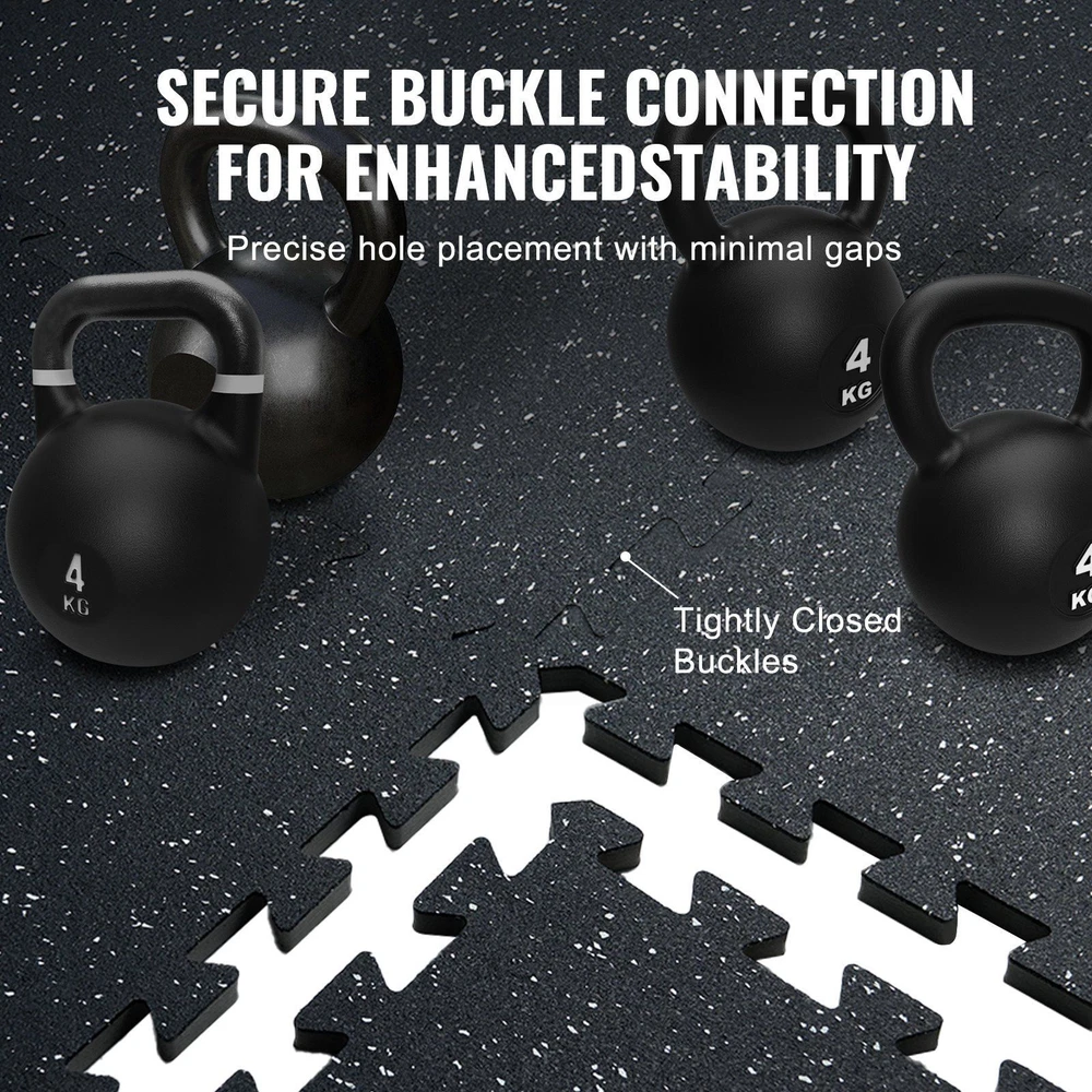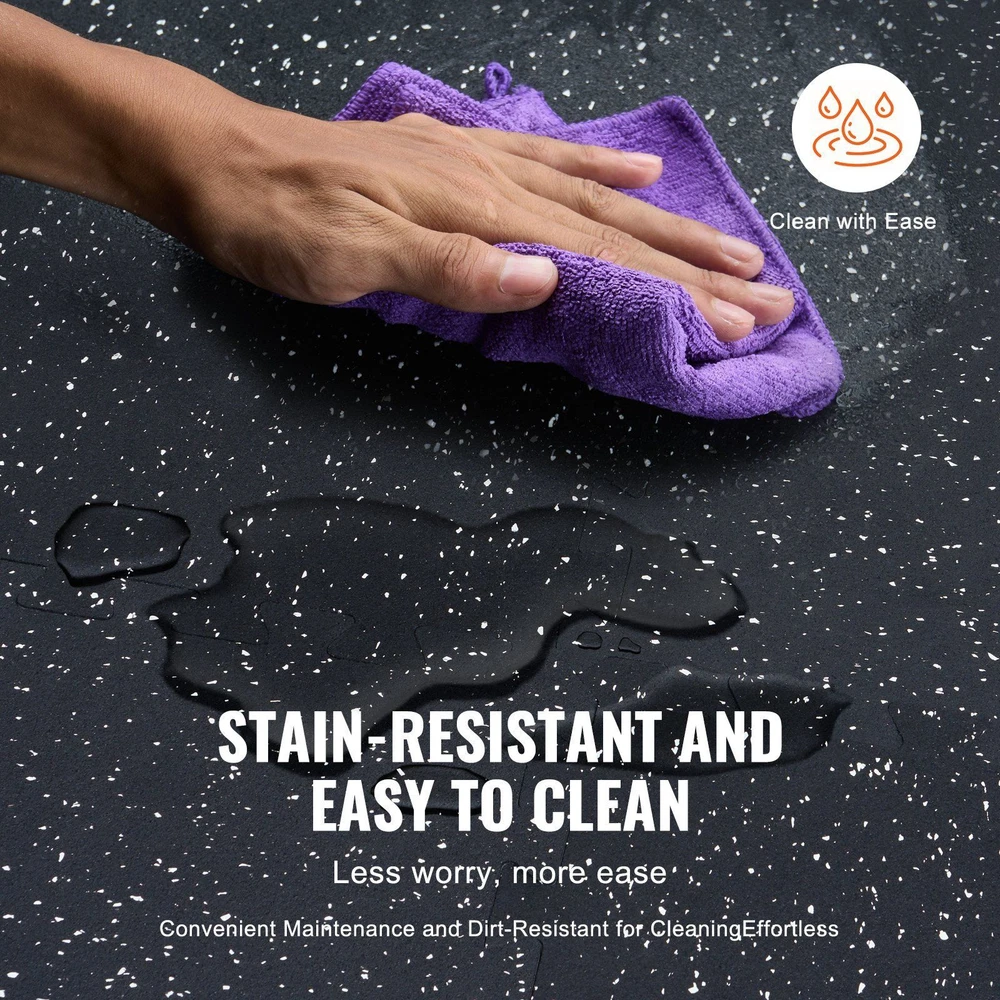 Features: Upgraded Material: The mat is made of 2-in-1 material, 0.56 inch rubber top with EVA foam ensures excellent slip resistance. This gym flooring for home gym design effectively absorbs shock and rebounds while providing enough grip for safe workouts. 100 Square Feet Coverage: The gym mats include 25 tiles and 50 borders, covering 100 sq ft. The workout mats can reduce the noise effectively, allowing you to work out upstairs without disturbing those below, making your fitness routine neighbor-friendly. Wear and Scratch Resistant: The surface is made of high-tensile rubber material, making it durable against wear and scratches. These rubber floor mats resist marks from foot traffic and are not easily damaged. Easy to Assemble: Our interlocking foam exercise mats provides quick and convenient assembly for your home fitness program. Easy Care: Enjoy easy maintenance with our cleanable gym floor mat; simply wipe or rinse the surface for quick and effortless cleaning, ensuring your rubber flooring tiles stay fresh and ready for your next workout.