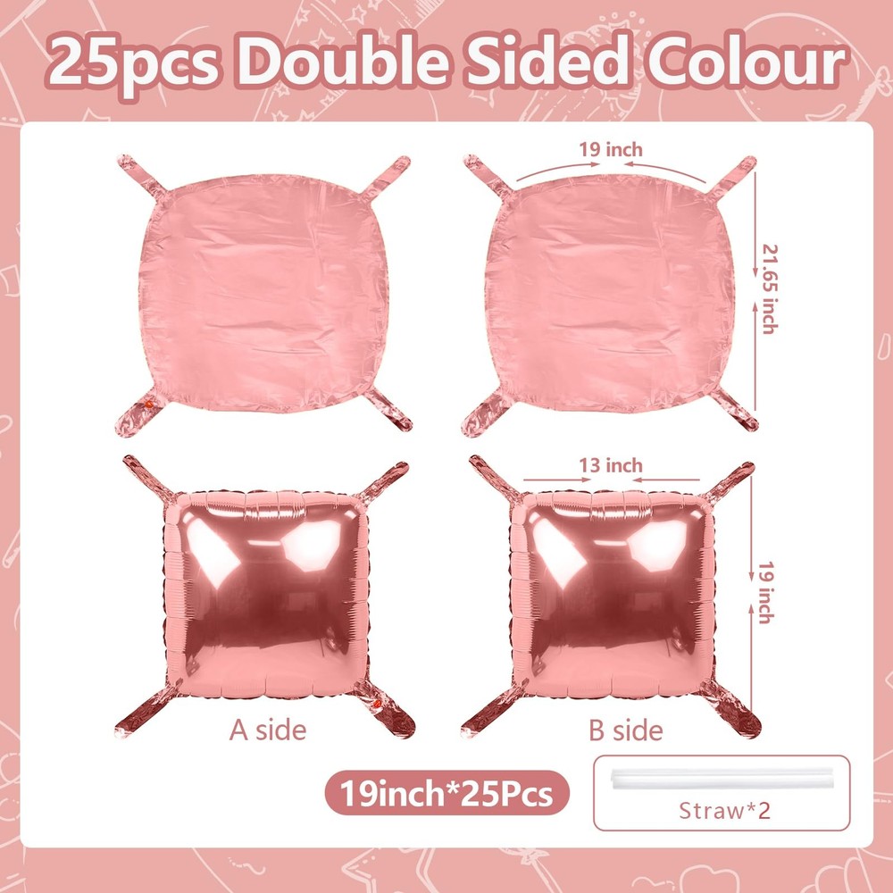 balloon wall square balloons balloon wall backdrop balloon backdrop wall square foil balloons square foil balloon wall checkered balloons checkered backdrop balloon backdrop foil balloons rose gold square foil balloons wall backdrop Valuable Package: You will receive 2 straws and 25pcs two sided rose gold square foil balloon wall. Each square balloon measures 19*19 inches before blowing and 13*13 inches after blowing. Our foil balloon wall backdrop is crafted from high quality mylar material. Compared to latex balloons, aluminum foil balloons can maintain their shape for a longer period of time and are less likely to leak or pop Premium Material: The double side rose gold balloon wall kit can maintain bright and shiny colors for a long time due to our unique production process, so your party will look fabulous from start to finish. Chrome rose gold foil square balloons shine brightly under the lights of the party, making the atmosphere of the party happy and active, and creating a memorable party Easy to Assemble DIY: This double sided square foil balloon wall backdrop can be freely tied up as needed to decorate party. They can be used to make balloon arches, balloon tunnels, or paired with latex balloon kits to decorate your birthday party, Christmas, New Year, graduation, Wedding, Anniversary, Independence Day bringing surprises and fun both indoors and outdoors Reusable and Recyclable: These double side rose gold foil square balloons wall decorations can be used to decorate indoor walls, floors and ceilings, as well as outdoor doorways. When the perfect party is over, separate the square balloons, then deflate them by inserting a straw into the inflator to recover and reuse them for your next event while also helping to reduce waste Considerate Service: Please do not inflate the square balloons beyond 85% to prevent any sudden bursting. If you encounter any issues with our rose gold double sided square foil balloon wall, please do not hesitate to reach out to us via email