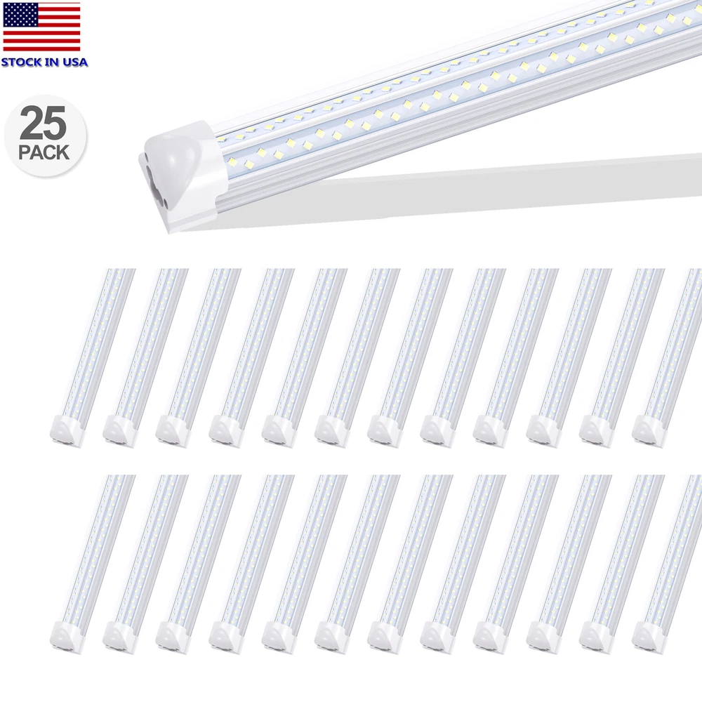 Specification: Model Name: T8 Integrated V Shaped LED Tube Length: 8FT Power: 8FT 120W LED Source: 2835SMD Lumens: 14400 Lm Base Type: Integrated (With Bracket) Beam Angle: 270 Degree Voltage: AC85-277V Housing material: Aluminum Drive: Built-in drive CRI: > 80 Power factor:>0.90 Operation temperature: -20C to 50C Life: 50,000 hours Frequency: 60Hz to 50Hz Warranty:3 Years PC cover: Clear Color temperature: Cold White (6000K-6500K) PACKAGE INCLUDE: 25pack T8 8ft 120W LED shop light Fixtures Dust Caps Connectors Screws Mount Clips Power Cables (1ft / 12inch) Connectors cables (4ft / 48inch) 25 Pack 120W 8 Foot Led Shop Light Fixture 8FT T8 Led Tube Light 8' Garage Light Specification: Model Name: T8 Integrated V Shaped LED Tube Length: 8FT Power: 8FT 120W LED Source: 2835SMD Lumens: 14400 Lm Base Type: Integrated (With Bracket) Beam Angle: 270 Degree Voltage: AC85-277V Housing material: Aluminum Drive: Built-in drive CRI: > 80 Power factor:>0.90 Operation temperature: -20C to 50C Life: 50,000 hours Frequency: 60Hz to 50Hz Warranty:3 Years PC cover: Clear Color temperature: Cold White (6000K-6500K) PACKAGE INCLUDE: 25pack T8 8ft 120W LED shop light Fixtures Dust Caps Connectors Screws Mount Clips Power Cables (1ft / 12inch) Connectors cables (4ft / 48inch) Key Benefits: 270 Degree angle design, which shed more light on your products to make much brighter Double row LED, which give more light output Clear cover, which emits more light than frosted cover Cut Energy Costs by 60-80% Lamp Lifespan: 50,000 hrs Bright Light output Mercury free, No Health Hazards Easy Installation: 1. Remove Old Fixture (If needed) 2. Install Mounting Clips to Doors 3. Snap LED Tube Light into Mounting 4. For multiple lights installation, Connect other end of the Tube light output to second light input and so on. With one power source, it can connect 2 Tube lights utmost for 8FT Tube. 5. Connect to Power Source Application / Usage: Reach-In Coolers / Freezers Multi-Deck Cases , Bakery Display Cases Meat Coolers , Industrial / Medical Refrigeration Show Case , Super Market, School, Factory, Residential , Commercial Bus, shuttle, railcar passenger interiors,Places where need energy-saving and high-color rendering index lighting Payment Delivery details Terms of sales About us Contact us Payment 1.We only accept payment by Paypal. 2.If you pay by paypal with E-check, it normally takes 5 business days to clear, Once your E-check payment clears, your item will be dispatched within 1-2 working days. 3.Payment must be received within 7 days after the auction ended. Delivery details 1.All orders ship within 24 hours after receiving your payment. 2. Fedex shipping from our US warehouse, takes about 3-5business days for delivery. 3.Please verify your address during checkout. We are not responsible for any wrong or undeliverable addresses. Terms of sales We strive to ensure 100% satisfaction for each and every one of our customers. we offer a 30-day 100% money-back guarantee on all eBay orders. If your item isn't just as you wished, simply send it back to us and we'll refund or replace your item. Please note that all returns must be authorized by our Customer Service department. please contact us though message first if you have any problem . About us 1.Our working time is Monday to Friday. 9.30-18.30 BeiJing time am. 2.We will reply you within 24 hours(1work days). 3.We are always been trying to provide best service and reliable products for every customer. Contact us 1. If you are dissatisfied for any reason, please do not be quick to leave negative/neutral feedback. We work hard to make sure EVERY CUSTOMER 100% SATISFIED and resolve any problem for you and always leave positive feedback to all our customers. 2. If you are satisfied with the product you received,please leave us positive feedback and 5 scores DSR.