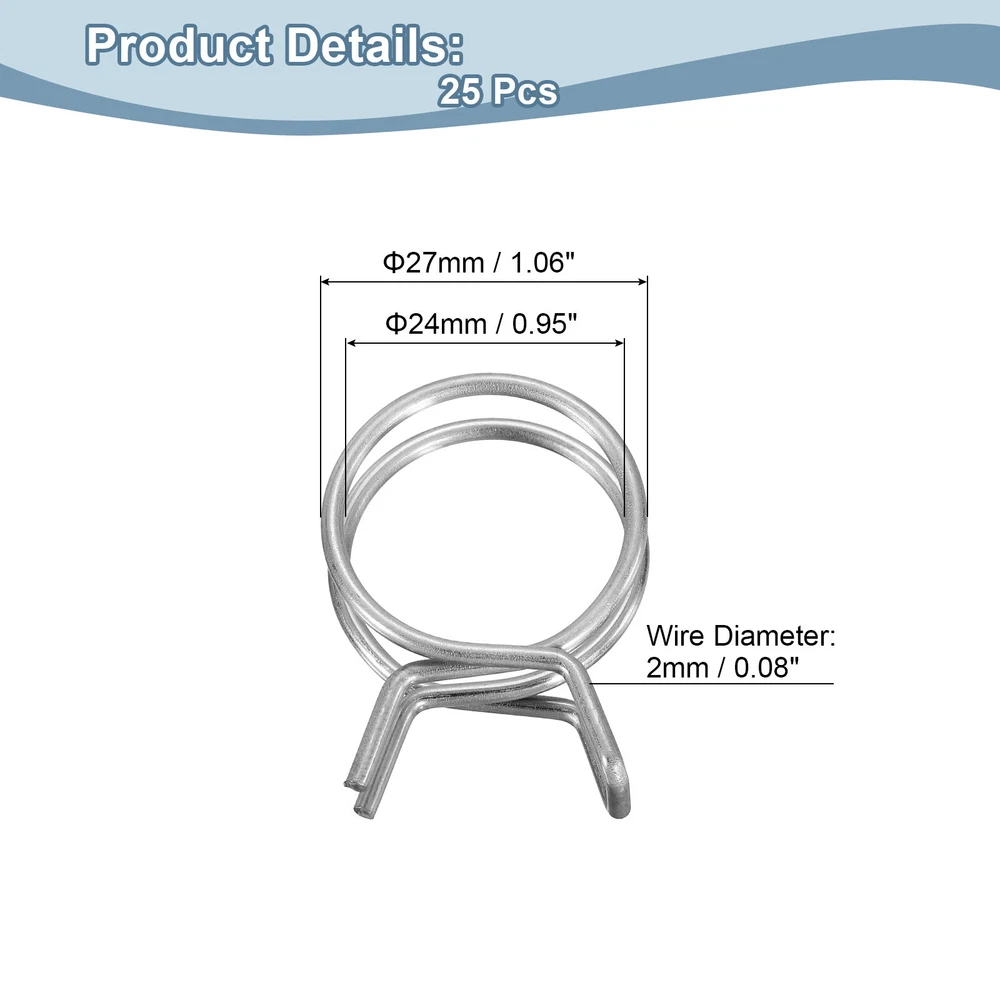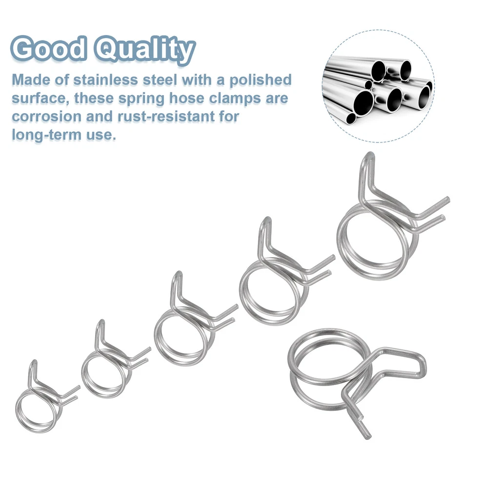 Document Description: Material: Made of stainless steel with a polished surface, these spring hose clamps are corrosion and rust-resistant for long-term use.Design: The spring hose clamps are designed with double-wound wire, which can spread the clamping force around the hose, and is more cost-effective than single-wire clamps.Easy to Use: These spring hose clamps are very easy to use, just use pliers to open the clamp and easily place it on the pipe.Wide Application: Spring hose clamps are widely used in automotive, agricultural, factory, and construction industries. Mainly used for fastening interfaces, they can firmly lock power equipment fuel lines, air hoses, water pipes, silicone hoses, vacuum hoses, automobile fuel lines, motorcycle air pipes, etc.Specification:Material: Stainless SteelFinish: PolishedInner Diameter: 24mm / 0.95inchMaximum Open Inner Diameter: 27mm/1.06inchWire Diameter: 2mm / 0.08inchPackage Content: 25pcs x Spring Hose Clamp Double Wire Spring Hose Clamp, 20pcs 304 Stainless Steel 6mm Spring Clips USD 7.78 Double Wire Spring Hose Clamp, 10pcs 304 Stainless Steel 5.5mm Spring Clips USD 6.71 Double Wire Spring Hose Clamp, 20pcs 304 Stainless Steel 3.5mm Spring Clips USD 7.49 Spring Hose Clamp, 50pcs 65Mn Steel 18mm Low Pressure Air Clip, Zinc Plated USD 21.04 Spring Hose Clamp, 10pcs 65Mn Steel 9mm Low Pressure Air Clip, Nickel Plated USD 7.03 Fuel Line Hose Clips, 5pcs 55mm 65Mn Steel Tubing Spring Clamps USD 8.67 25Pcs 24mm/0.95inch Double Wire Spring Hose Clamp Description: Material: Made of stainless steel with a polished surface, these spring hose clamps are corrosion and rust-resistant for long-term use. Design: The spring hose clamps are designed with double-wound wire, which can spread the clamping force around the hose, and is more cost-effective than single-wire clamps. Easy to Use: These spring hose clamps are very easy to use, just use pliers to open the clamp and easily place it on the pipe. Wide Application: Spring hose clamps are widely used in automotive, agricultural, factory, and construction industries. Mainly used for fastening interfaces, they can firmly lock power equipment fuel lines, air hoses, water pipes, silicone hoses, vacuum hoses, automobile fuel lines, motorcycle air pipes, etc. Specification: Material: Stainless Steel Finish: Polished Inner Diameter: 24mm / 0.95inch Maximum Open Inner Diameter: 27mm/1.06inch Wire Diameter: 2mm / 0.08inch Package Content: 25pcs x Spring Hose Clamp Hot Item Steel Band Clamp 23mm Hose Tube Spring Clips Clamp Black Manganese Steel 20Pcs USD 18.11 Fuel Line Hose Clips, 100pcs 8mm 65Mn Steel Tubing Spring Clamps USD 11.26 Double Wire Spring Hose Clamp, 20pcs 304 Stainless Steel 5mm Spring Clips USD 7.49 Fuel Line Hose Clips, 20pcs 13mm 65Mn Steel Tubing Spring Clamps USD 7.22 Double Wire Spring Hose Clamp, 50pcs 304 Stainless Steel 10mm Spring Clips USD 11.2 Payment We accept eBay payment. Please do not email us to ask for other payment option. We appreciate prompt payment and look forward to your business in the future. Unpaid item will be filed without receiving payment in 7 days from listing ended. Shipping Usually we ship your order out within 24 hours in business day. For shipping and handling charges (S&H) for specific item, please refer to the item listing page for more details. Please make sure your shipping address is correct. We are not responsible for any loss in transit if a wrong address is provided. Return Policy Returns for exchange are permitted and must be initiated by the buyer within 30 days upon receipt. If you would like to return your product(s) for repair / replacement / refund, please kindly contact our customer service representatives via email for an authorized RMA number. Your returned product(s) will not be processed without a completed RMA. About Us We are continually expanding our product selection to better serve your need. We look forward to providing the best sevice to you - our dear customers, so take a look around our store and find the product that you want. You can put your trust in us! If you need any help or have any suggestions, please don't hesititate to contact us anytime , we will reply you within 24 hours and try the best to help you. Description Policy 25Pcs 24mm/0.95inch Double Wire Spring Hose Clamp Description: Material: Made of stainless steel with a polished surface, these spring hose clamps are corrosion and rust-resistant for long-term use. Design: The spring hose clamps are designed with double-wound wire, which can spread the clamping force around the hose, and is more cost-effective than single-wire clamps. Easy to Use: These spring hose clamps are very easy to use, just use pliers to open the clamp and easily place it on the pipe. Wide Application: Spring hose clamps are widely used in automotive, agricultural, factory, and construction industries. Mainly used for fastening interfaces, they can firmly lock power equipment fuel lines, air hoses, water pipes, silicone hoses, vacuum hoses, automobile fuel lines, motorcycle air pipes, etc. Specification: Material: Stainless Steel Finish: Polished Inner Diameter: 24mm / 0.95inch Maximum Open Inner Diameter: 27mm/1.06inch Wire Diameter: 2mm / 0.08inch Package Content: 25pcs x Spring Hose Clamp Double Wire Spring Hose Clamp, 20pcs 304 Stainless Steel 6mm Spring Clips USD 7.78 Double Wire Spring Hose Clamp, 10pcs 304 Stainless Steel 5.5mm Spring Clips USD 6.71 Double Wire Spring Hose Clamp, 20pcs 304 Stainless Steel 3.5mm Spring Clips USD 7.49 Spring Hose Clamp, 50pcs 65Mn Steel 18mm Low Pressure Air Clip, Zinc Plated USD 21.04 Spring Hose Clamp, 10pcs 65Mn Steel 9mm Low Pressure Air Clip, Nickel Plated USD 7.03 Fuel Line Hose Clips, 5pcs 55mm 65Mn Steel Tubing Spring Clamps USD 8.67 Hot Item Steel Band Clamp 23mm Hose Tube Spring Clips Clamp Black Manganese Steel 20Pcs USD 18.11 Fuel Line Hose Clips, 100pcs 8mm 65Mn Steel Tubing Spring Clamps USD 11.26 Double Wire Spring Hose Clamp, 20pcs 304 Stainless Stee
