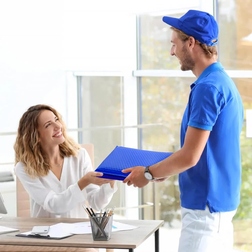 These bubble mailers are fantastic—lightweight yet super durable with thick bubble cushioning that keeps items safe during shipping. The self-sealing adhesive is strong and secure, so no extra tape is needed. The stylish blue design looks professional, and the size is perfect for small to medium packages. Great value for the price!