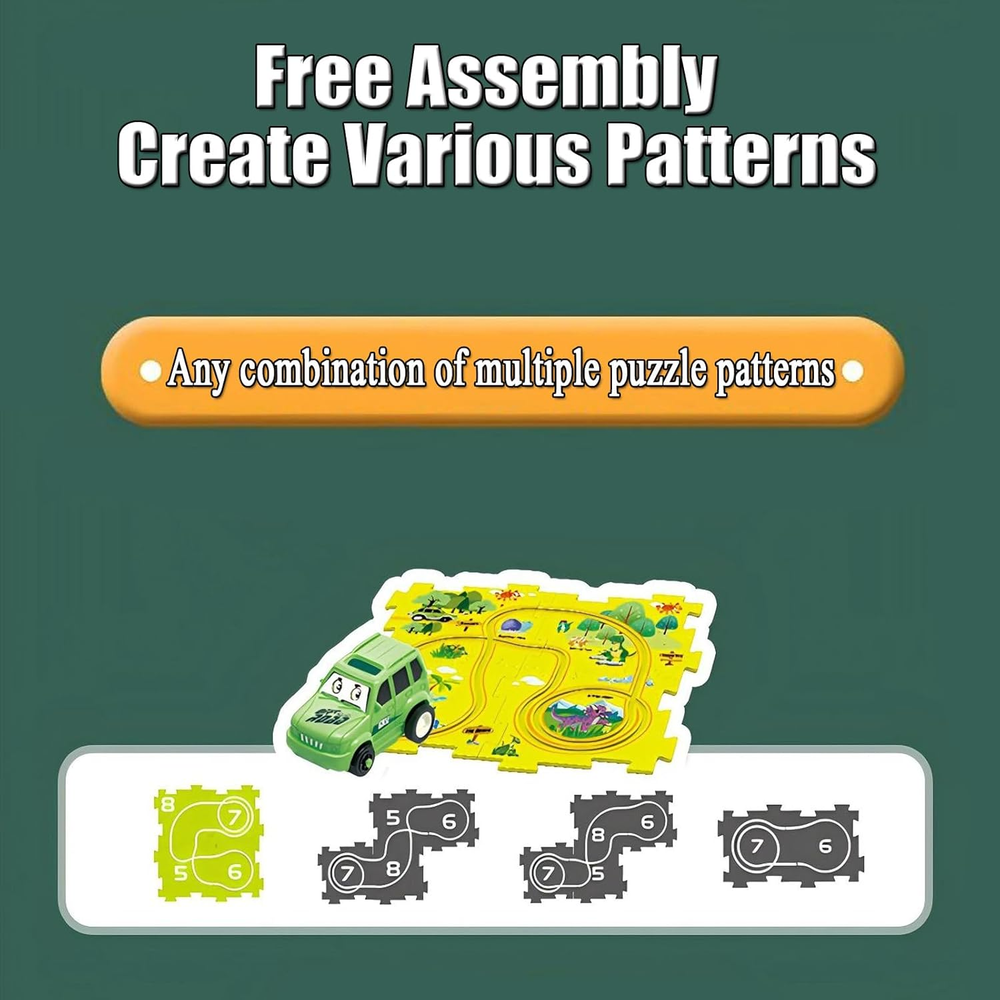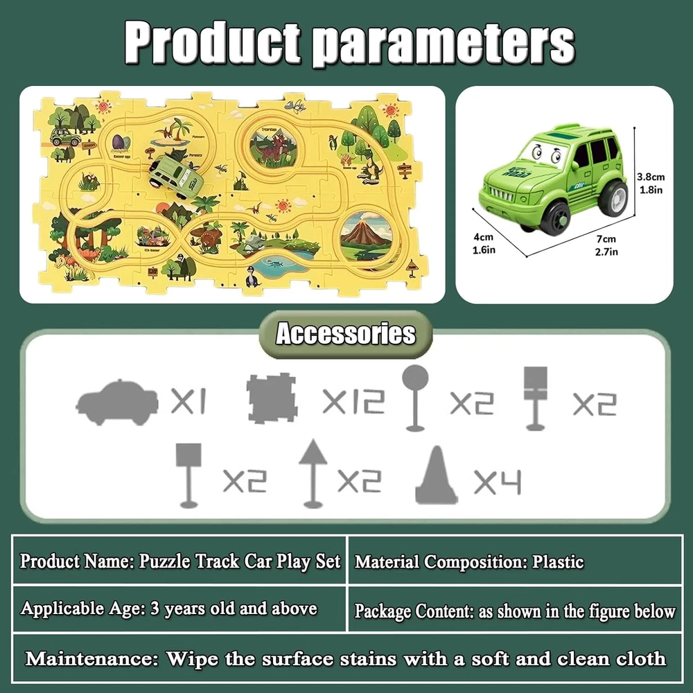- This jigsaw car children's car track set includes 12 puzzle pieces, 12 road signs, 1 red car (requires 1 AAA battery to drive, not included); need to assemble the puzzle pieces in a certain way so that the car can run along the track - Assembling the track is not only a hands-on activity, but also requires logical reasoning and spatial thinking. By piecing together puzzle pieces of various shapes and planning the car's route, you can hone your problem-solving skills and creativity while having fun - This toy is made of high-quality ABS plastic, and the edges of each puzzle piece are carefully polished to ensure smooth edges without sharp corners to prevent any injuries - Easy to store and clean, the educational racetrack toy set is compact and easy to store or carry, suitable for playing at home or outdoors - This educational toy is an ideal gift for birthdays, Christmas, Easter and other festivals. It can enhance parent-child relationships, create new tracks together, and enjoy happy family time. Introducing the Jigsaw Racing Car Track Set, which includes puzzle pieces, road signs and cute cars that can be easily assembled to create various track layouts based on creativity and imagination. With 25, 48 or 56 puzzle pieces, you can develop their problem-solving and logical reasoning skills while playing. The Jigsaw Racing Car Track Set is designed to be easy to assemble and operate, each puzzle piece can be seamlessly spliced, and the car will slide along the grooved track with just a flick of the switch, providing a smooth and seamless gaming experience. This track set is made of high-quality ABS plastic, and the edges of the puzzle pieces are meticulously polished to ensure that they are smooth and harmless. This toy is not just an ordinary car track set, but also a great educational toy. By piecing together puzzle pieces of different shapes and planning the car's route, you can develop their critical thinking, creativity and eye-hand coordination while having fun. It is an ideal gift for any occasion such as Christmas, Thanksgiving, Halloween and other festivals.