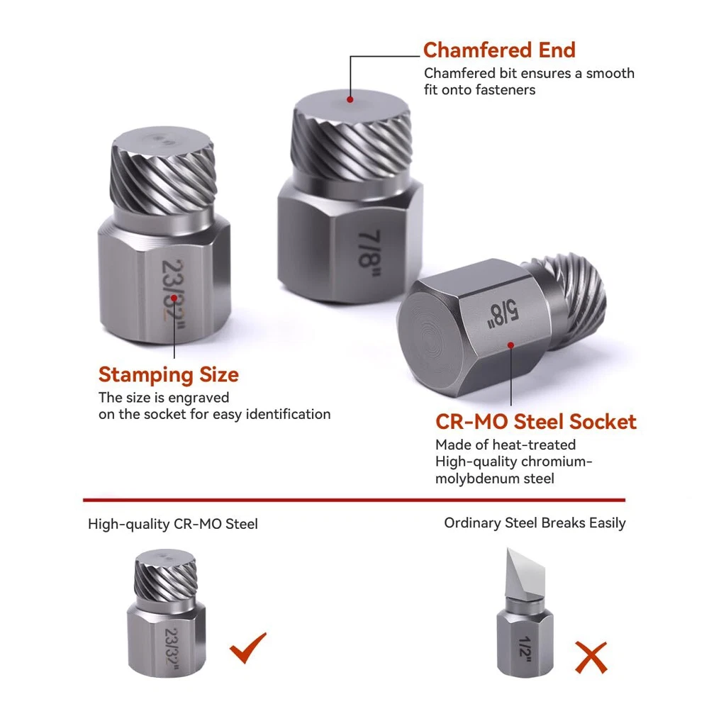 $ 133.0638-Piece High-Hardness Bolt Extractor Set for Stubborn Stripped Fasteners