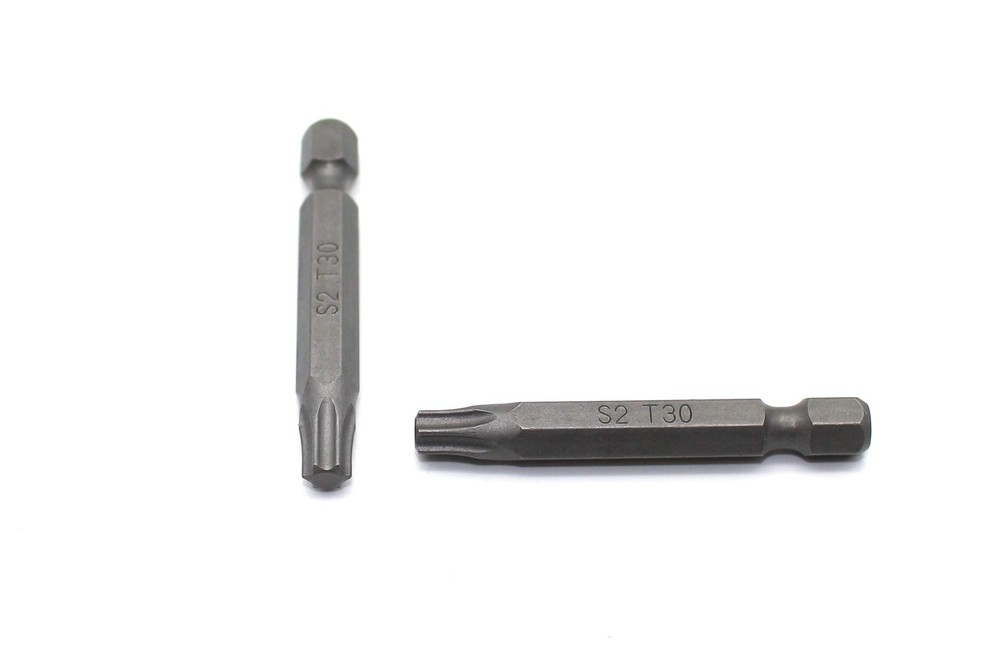 25 pc T30 Torx Star 6 Point T-30 Impact Ready 2 Inch Length Screwdriver Insert Bits Hex Shank with Quick Release Slot INCLUDED: 25 pc T-30 Torx 6 Point Screwdriver Insert Bits in a plastic storage case. SIZE: All bits are 2" (50.8mm) long with a 1/4" (6.35mm) hex shank and quick release slot. TAIWAN S2 STEEL: Made with Taiwan S2 Steel, which lasts 3x longer than regular S2 steel and 10x longer than CR-V steel based on our fatigue testing. Sample test results are shown below. IMPACT READY: Bits are impact ready; suitable for both hand tools and electric tools. US-BASED CUSTOMER SERVICE: Available by chat, email, phone, or visit us at our customer service center in La Crosse, WI.