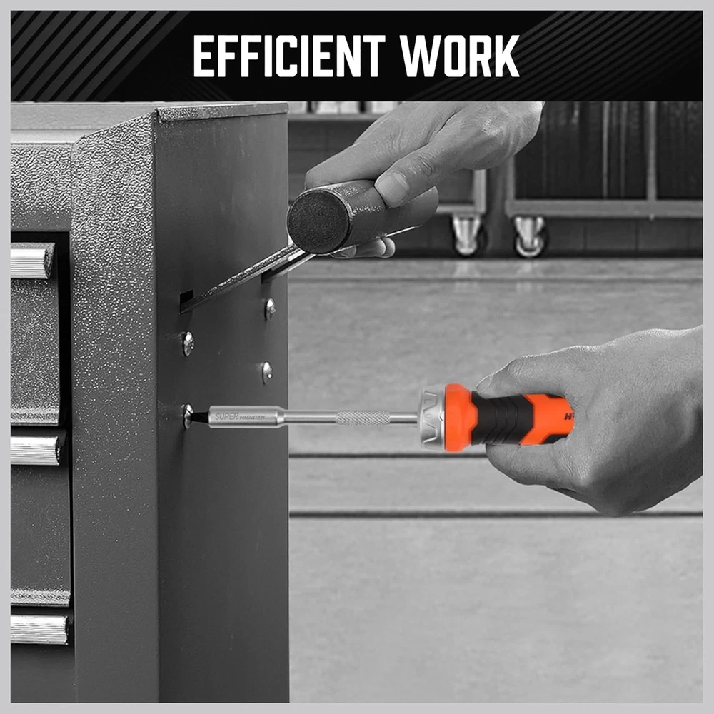 【COMPACT PORTABLE】Made of high-quality S2 steel, with sturdy hardened & tempered construction, Perfectly matched to most standard tamper-resistant German-made star 6-point screws. 【SECUNITY TORX BIT】This set includes 11pc 1/4-inch shank tamper resistant star bits and 1 standard T-5 star bit & Connector Tamper Resistant sizes are: T-6, T-7, T-8, T-9, T-10, T-15, T-20, T-25, T-27, T-30, T-35, T-40. 【DELICATE MECHANISM】The 36-teeth ratchet screwdriver, which can ensure the smooth rotation of the bidirectional ratchet and make more accurate adjustment than the 12-teeth one. You can adjust the direction by simply dialing the spin button buring use. 【MAGNETIC BIT ADAPTOR】The magnetic bit adaptor ensures that any 1/4" hex bit can be firmly secured for higher torque. Used in automobiles, repairs, trucks, automobiles, engines, motorcycles, interiors, dashboards, computers, cable boxes, toys, appliances and consumer electronics, drill bits can also be used in many other protected parts. 【WIDE RANGE OF APPLICATIONS】Used in automobiles, repairs, trucks, automobiles, engines, motorcycles, interiors, dashboards, computers, cable boxes, toys, appliances and consumer electronics, drill bits can also be used in many other protected parts. Product Description COMPACT PORTABLE: Made of high-quality S2 steel, with sturdy hardened & tempered construction, Perfectly matched to most standard tamper-resistant German-made star 6-point screws. SECUNITY TORX BIT: This set includes 11pc 1/4-inch shank tamper resistant star bits and 1 standard T-5 star bit & Connector Tamper Resistant sizes are: T-6, T-7, T-8, T-9, T-10, T-15, T-20, T-25, T-27, T-30, T-35, T-40. DELICATE MECHANISM: The 36-teeth ratchet screwdriver, which can ensure the smooth rotation of the bidirectional ratchet and make more accurate adjustment than the 12-teeth one. You can adjust the direction by simply dialing the spin button buring use. MAGNETIC BIT ADAPTOR: The magnetic bit adaptor ensures that any 1/4" hex bit can be firmly secured for higher torque. Used in automobiles, repairs, trucks, automobiles, engines, motorcycles, interiors, dashboards, computers, cable boxes, toys, appliances and consumer electronics, drill bits can also be used in many other protected parts. WIDE RANGE OF APPLICATIONS: Used in automobiles, repairs, trucks, automobiles, engines, motorcycles, interiors, dashboards, computers, cable boxes, toys, appliances and consumer electronics, drill bits can also be used in many other protected parts.