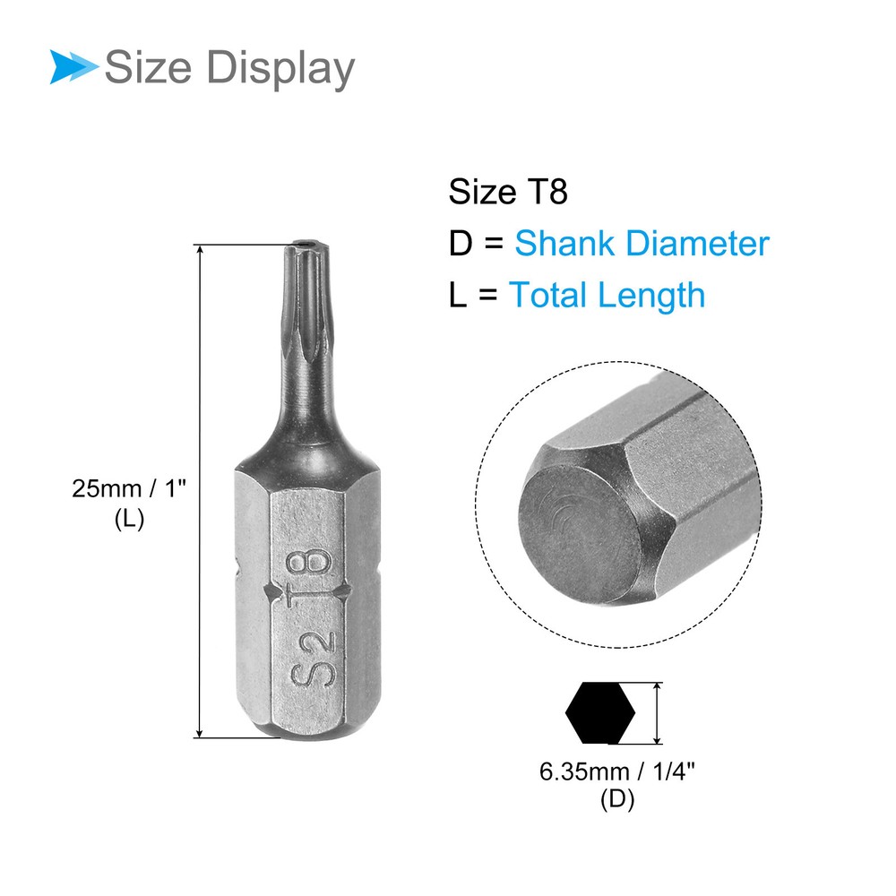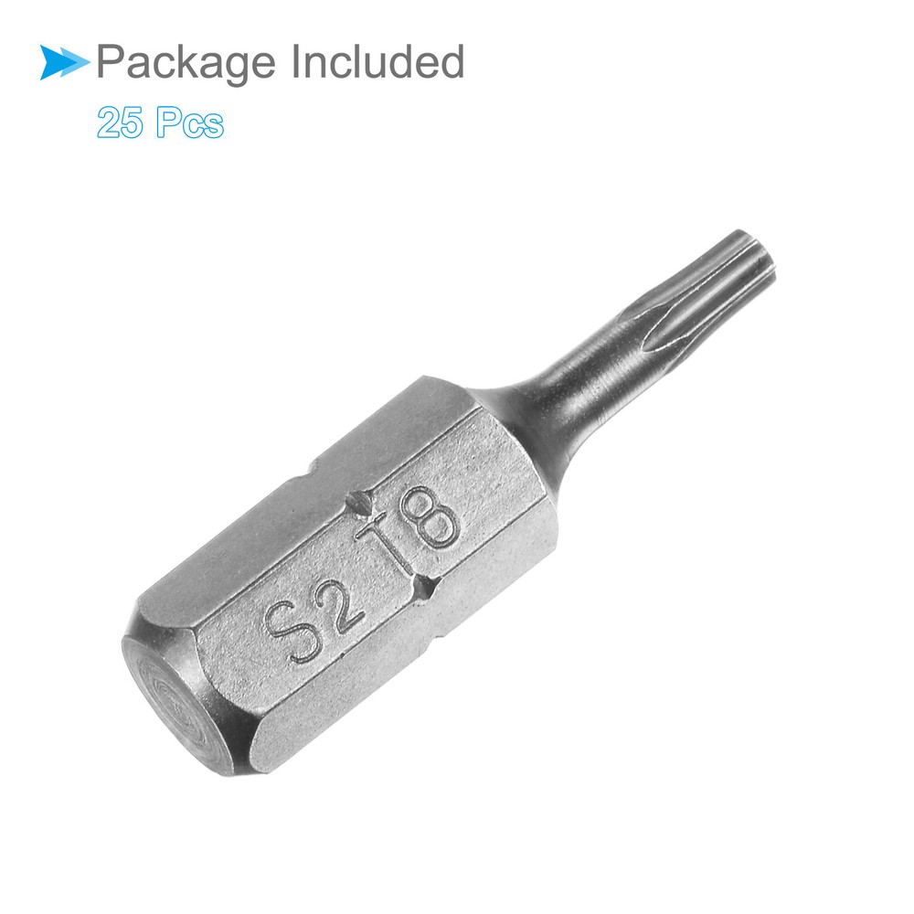 25-Piece T8 Torx Screwdriver Bits 1/4" Hex Shank Magnetic 25mm