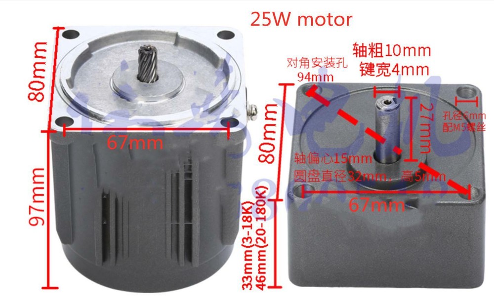 25W AC110V gear motor electric motor variable speed controller 1:10 0-135RPM/MIN 25W AC110V gear motor 25W AC 110V Gear Motor Electric Motor + Speed Controller 1:10 0-135RPM Specification: Name: AC gear motor Rated voltage: 110V Rated speed: 0-135 RPM Reduction ratio: 1:10(10K) Torque: 1.59nm Power Phase: single-phase geared motor size:97MM * 80MM * 67MM Reducer size: 33*80*67mm Is the motor reversible: YES Features: Flexible installation High quality material Efficient works Smooth operation Long working life Packages: 1 * Gear Motor 1 * Speed controller 1 * Reducer Note: Under different deceleration ratio, the output shaft speed is different. The output shaft speed is equal to the motor speed of 1350 rpm divided by the deceleration ratio. If you want to know the detailed product size before purchase, please ask our customer service for it. Payment Delivery details Terms of sales About us Contact us Payment We accept ebay payment 。 Fees such as import duties, taxes are not included in the item price or shipping costs. These charges are the buyer's responsibility. Delivery details Shipping: 2-9 working days to: USA Terms of sales We maintain high standards of excellence and strive for hundred percent customer satisfaction. Feedback is very important to us. We hope that you contact us immediately before you give neutral or negative feedback, so that we can address your concerns. It is impossible to address issues if we do not know about them! About us Your satis faction is our ultimate goal. We work hard to earn your trust and future business. Our certified technicians have tested each item before shipping. The unit comes with 1 year limited warranty on all manufacturing defects. a) If you receive a defective item, you may return it or ask for a discount. Please contact us within 14 days after you receive the package. b) What you returned must be intact and in its original packaging as re? u. Customer is responsible for shipping costs of the returned item. c) We will cover the cost of shipping back t with the shipping rate indicated in the registration page. We will send you a new unit or refund the full payment you paid. Thank you. Contact us Business Hour Business Hour: Monday To Friday: 8:30 AM to 5:00 PM (Beijing China time) Due to time zones, our reply to your questions may not be immediately. But within above working time, we will reply your email within 24 hours. If it's non-workdays, please kindly be patient and wait till Monday. Please contact us with ebay message. Please feel free to contact us if you have any questions. Monday To Friday: 8:30 AM to 5:00 PM (Beijing China time) Due to time zones, our reply to your questions may not be immediately. But within above working time, we will reply your email within 24 hours. If it's non-workdays, please kindly be patient and wait till Monday. Please contact us with ebay message. Please feel free to contact us if you have any questions. 2*Features Stable performance,Safe to Use * Feature * Nice and Practical,High Quality Packaging Feature 1 Compact Design,Unique Appearance ❤Highlights❤ ❤Premium Material❤Long Service Life❤Creative Design❤ 🔥Feature🔥 🔥High Performance🔥High Safety🔥Good Stability🔥 ★Features★ ★★★Reliable Quality★★★Easy installation★★★Ideal Gift★★★ Rated Load (HP) N/A shipping notice Can not ship to Puerto Rico,Alaska/Hawaii Is the motor reversible YES Bundle Description AC Gear Motor + Speed Controller Custom Bundle Yes Brand TBvechi Current Type AC Power Source AC Voltage 110 V Nominal Rated Input Voltage 110 V Country/Region of Manufacture China Name geared motor MPN Does Not Apply Rated speed 0-135 RPM Reduction ratio 1:10(10K) Power Phase single-phase AC Motor Type 25w Shaft Angle Does not apply Reversible/Non-Reversible Reversible AC Phase Single Phase Shaft Diameter Does not apply Model 25W AC110V 135RPM 10K Gear Motor Base RPM 135 RPM Gear Ratio 1:10(10K) Rated/Full-Load Torque 1.59nm