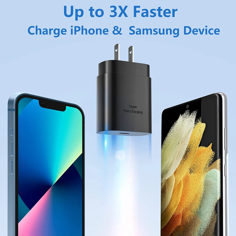 Feature : 1.This is a USB-C to USB-C cable NOT USB-C to USB-A cable, so you need a USB C wall charger to charge your device. 2. For ensure the charging speed of your device, please use the original USB C port wall charger, or other high quality charger which can support QC 2.0/3.0 and USB PD fast charging. 3. It is a charging and data cable not Thunderbolt 3 cable so it can not output video. 4. Supports Qualcomm Quick Charge and USB Power Delivery Charge. Also compatible with Thunderbolt 3 port. 5. These cables are designed according to the USB 2.0 specification. The actual transmission speed is within 480 Mbps( 60 MBps) , so it cannot reach the speed of usb 3.0 (5 Gbps). 25W Fast Wall Charger: [ 25W Rapid Charging ] PD3.0 Power Delivery Technology guarantees an optimized and fast safe charging experience (25W) for all Samsung Galaxy devices. [ Broad Compatibility ] The USB C charger charges majority of USB Type-C and PD devices and non-PD Devices at full speed. Provides up 25W fast charge. [ Dependable Protection ] With the intelligent chip inside, it matches the current as your device's need automatically. Over-current, over-voltage and short-circuit protection effectively protect your devices from damage and ensure the safer charging overnight. [ Slim & Compact ] Small, lightweight and convenient store in your bag and carry. Connectors: Type C to Type C Cable length :3FT Color: Black Compatible With: For Samsung Galaxy S10/Note 10/S20 / Note 20 For MacBook 2016/2017 For Macbook Air 2018 For MacBook Pro 13.3'' For iPad Pro 11'' (2018)/12.9'' (2018) For Google Pixel 2/2XL/3/3XL For Nexus 6P For Huawei P20/P30/Mate 20/Matebook