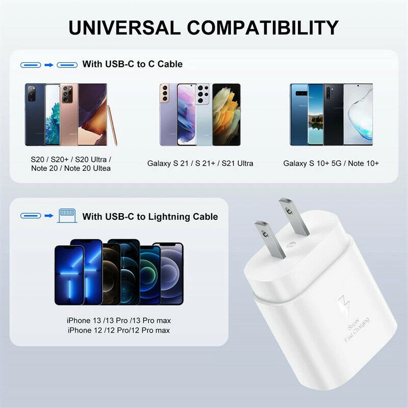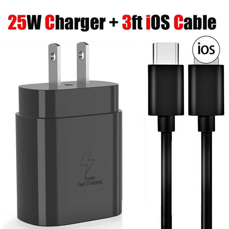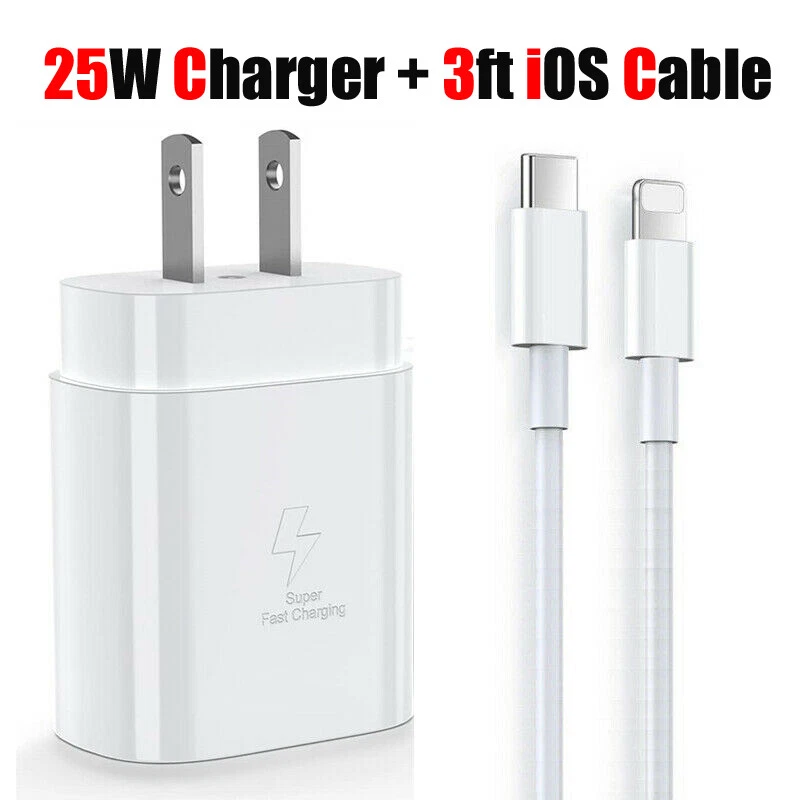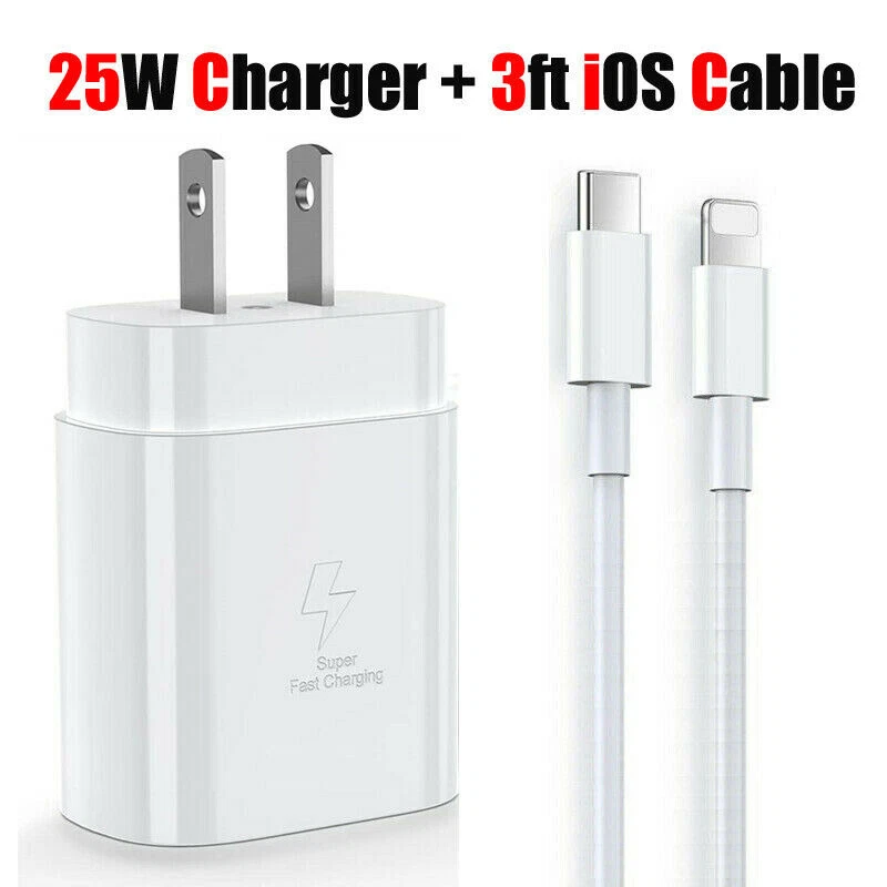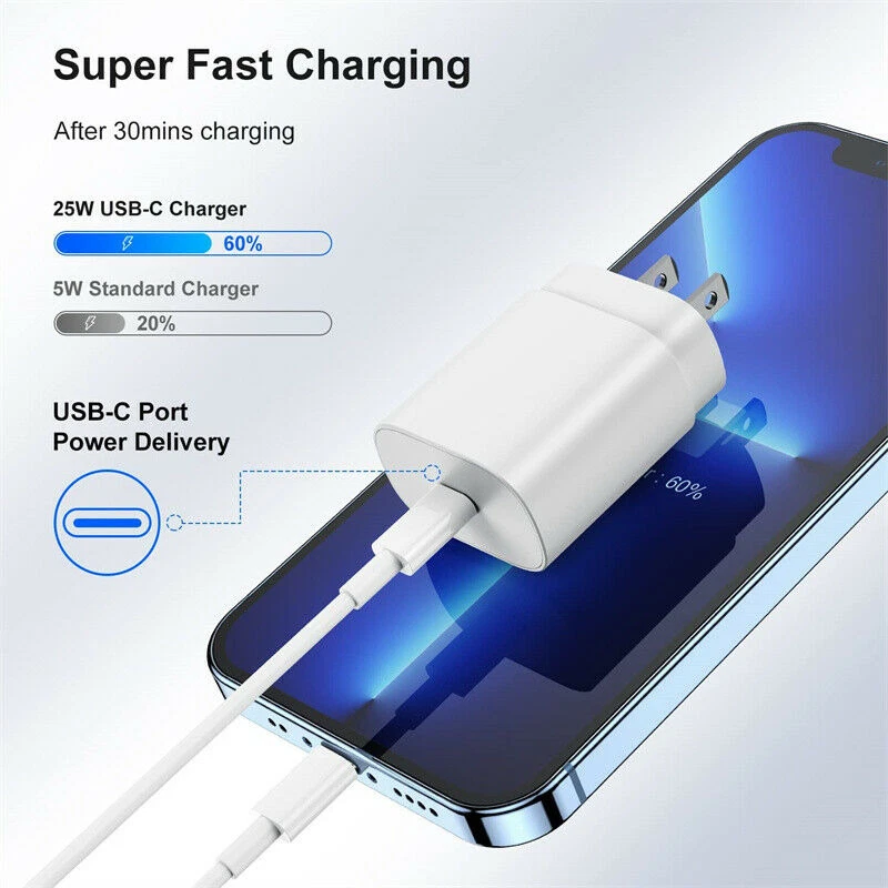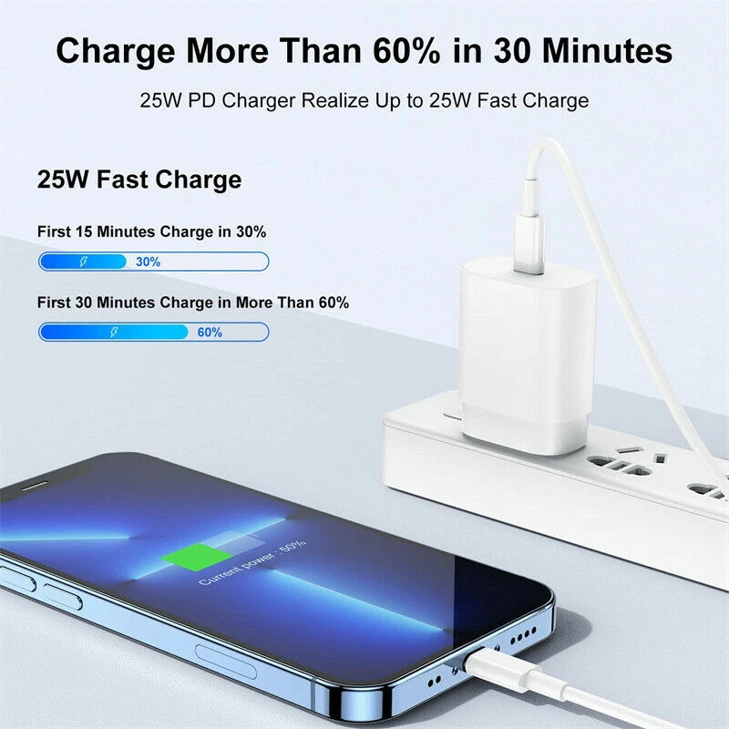 25W Fast Charger PD USB-C Power Adapter Type C Cable For iPhone 14 13 12 Pro Max