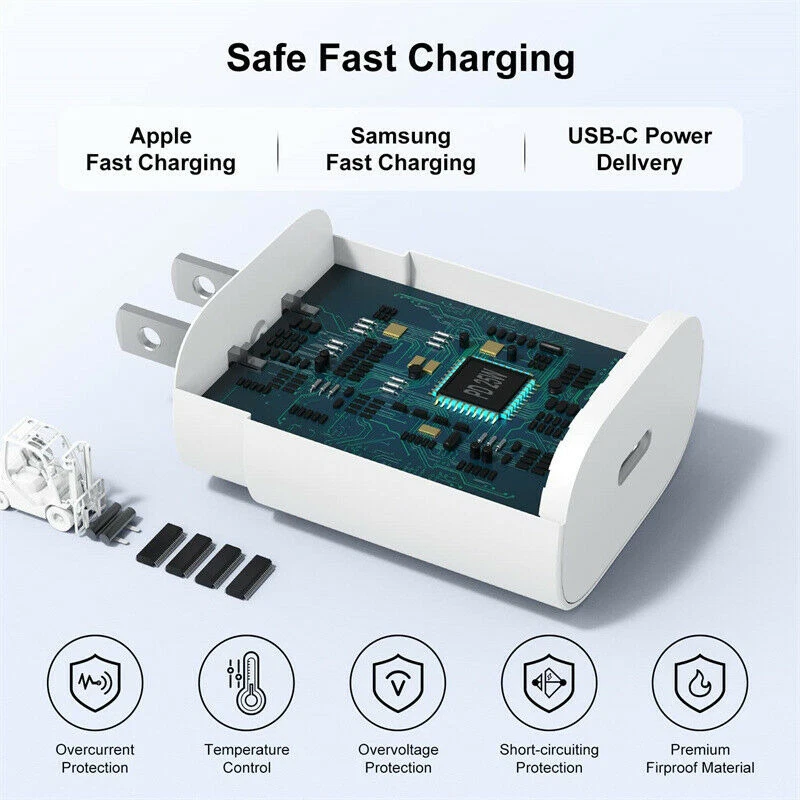 Number of Ports: 1 Items Included: Charging Cable, Wall Charger Design/Finish: Plain MPN: Does Not Apply Connectivity: USB-C, Wall Charger Compatible Brand: Universal, For Apple Features: Fast Charge Material: ABS+Plastic Brand: Unbranded