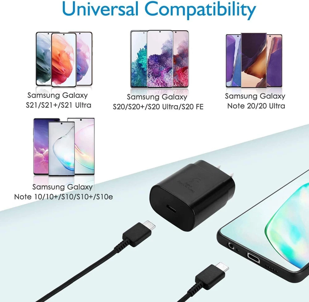 Features: 100% Brand new and high quality Multiple protection, over-charge, voltage, temperature and shore circuit protection, safer Widely compatible with most digital devices, universal High-Speed Charging: Rapidly charge your devices with 25W Power Delivery. Compact & Portable: Extremely compact form factor and foldable plug ensure maximum portability wherever you go. Handy for home, office, and vacations. Safe & Reliable: Built-in safeguards protect your devices against excessive current, overheating, and overcharging. World Wide Voltage: Compatible With 100-240V, Suitable for travel. Specifications: Material: High quality ABS environmental protection material Input: 100V-240V 50/60HZ Output: 5V/3A; 9V/2.22A; 12V/1.5A Power: 25W Max. Work Temperature: 0~50℃ Working Efficiency: 85% Port Type: Type-C Compatible Devices: For Samsung Galaxy S22/S22+/S22 Ultra For Samsung Galaxy S21/S21+/S21 Ultra For Samsung Galaxy S20/S20+/S20 Ultra For Samsung Galaxy Note 10/10+ 5G/20/20 Ultra For Samsung Galaxy Note 20/20+/20 Ultra For Samsung Galaxy Note 9/9+/8/8+ For Samsung Galaxy S10/S10+/S9/S9+/S8/S8+ For Samsung Series Phone For other Phone Buyer Note: If you are satisfied with our service, we appreciate you leaving us a positive feedback and 5 star rating review! Your opinion is important to the success of our business. If you are not satisfied with the product or have not received the product for more than 35 days, please contact us to resolve, we will do our best to solve. We are sure to come up with a satisfactory solution. Please contact us first before leaving cold feedback or good feedback of 1-3 stars and opening the case. We'll do our best to solve your problem. Because we believe that everything can be solved through communication. Thank you very much!