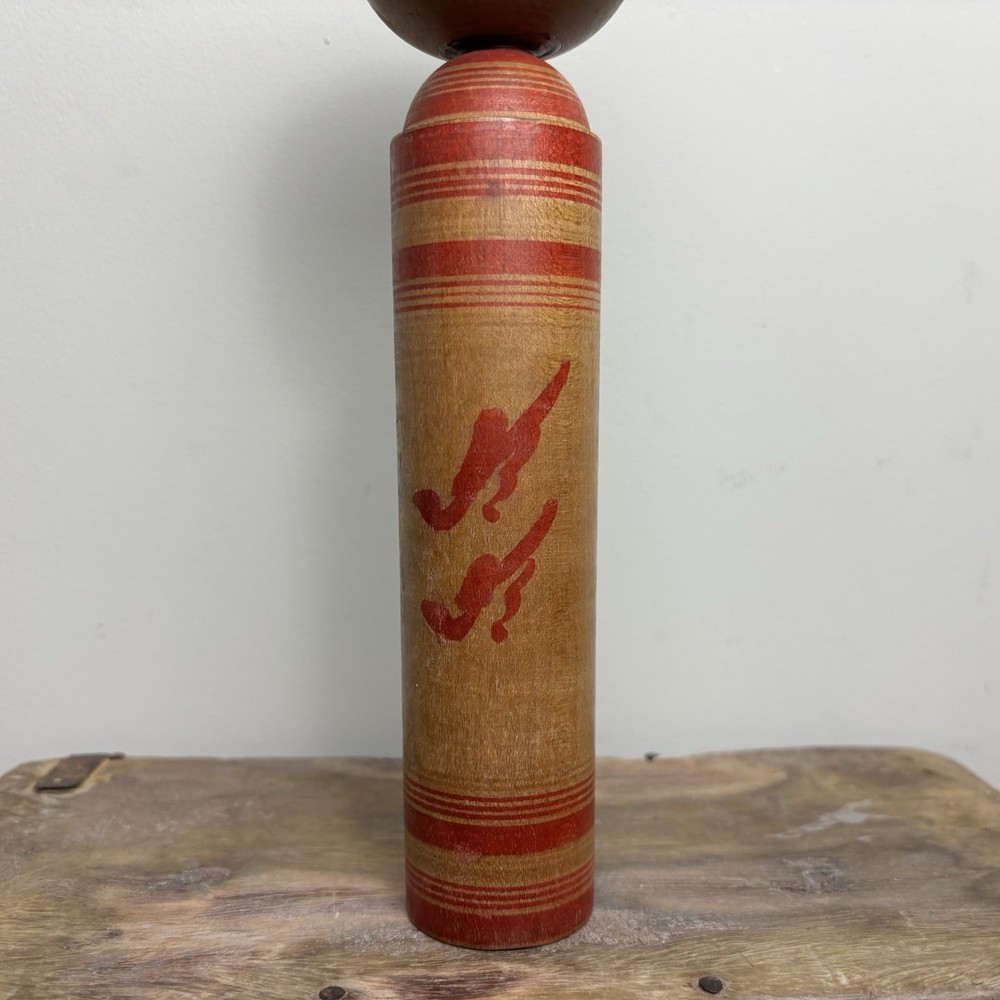 Japanese Kokeshi Doll A Japanese Kokeshi doll that stands approximately 25cm tall. This genuine piece of Japanese culture is an interesting objet d'art. History: Kokeshi dolls are Japanese wooden dolls traditionally made for children. It is said that Kokeshi were originally sold to visitors to hot springs in the Tohoku region of Japan during the late Edo period (1600-1868), to supplement business and keep workers' hands busy during the winter months. Over the years they have become increasingly popular worldwide, especially amongst shinnichi (Japanophiles) and collectors. Interesting fact: These dolls are the inspiration behind the Nintendo Mii characters. Please study the photos as they show the condition of the doll. Please note: These Kokeshi dolls are also listed on our own website (Rustique Living) and available in our shop. Therefore this listing may end suddenly if sold through there. Please study the photos as they form part of the description. Free U.K. delivery via Royal Mail / ParcelForce. See our other listings for more Kokeshi's and much more!