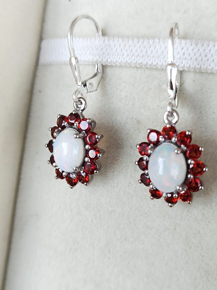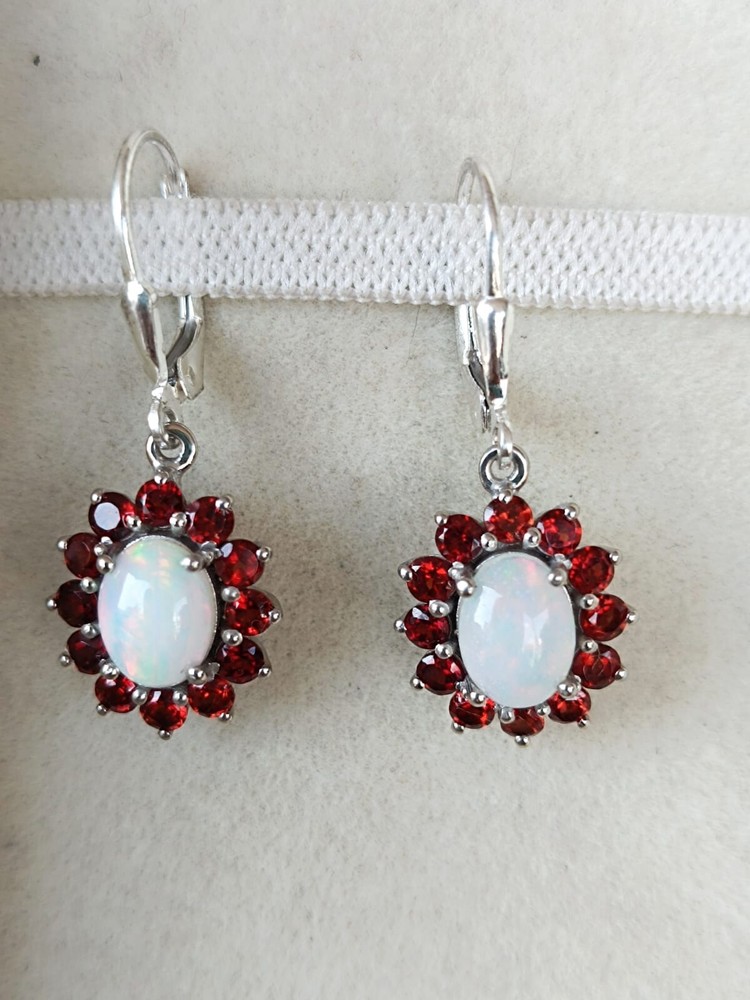 Natural Oval Cut Garnet And Opal Dangle Earring For women's in Sterling silver, June birthstone Earring, Party wear Earring, Finance gift Earring, Gemstone Earring, Dangle Earring. ==================================== PRODUCT DETAILS Product Type - Earring Earring type - Dangle Earring Gemstone setting - Garnet And Opal Garnet & Opal shape - Oval & Round Garnet & Opal size - 3mm x 6mm Garnet & Opal color - Red, Rainbow Setting type - Prong ==================================== Benefits of Garnet stone: 1. Energy and Vitality Garnet is believed to boost energy levels and vitality. It is often referred to as the "stone of health" because it is said to promote physical stamina and vigor. 2. Emotional Balance Garnet is thought to help balance emotions, relieve stress, and improve overall emotional well-being. It can promote feelings of stability and calmness, helping to reduce anxiety and depression. 3. Enhancement of Creativity and Passion Garnet is considered a stone of passion, creativity, and inspiration. It may enhance one's creativity and stimulate the root chakra, promoting personal growth and allowing for the manifestation of goals and desires. 4. Attracting Love and Strengthening Relationships Garnet is traditionally associated with love and relationships. It is believed to strengthen bonds between partners, bring deep emotional healing, and even enhance sensuality. 5. Protection Garnet is also considered a protective stone. It is thought to shield the wearer from negative energy and promote a sense of safety and security. 6. Detoxification and Healing In holistic healing, garnet is sometimes used to assist in detoxifying the body. It is thought to support circulation and stimulate the immune system, aiding the body in self-healing processes. ===================================================================== Benefits of Opal stone: his transcendental gemstone changes its colors in accordance with the health of its wearer. With the slight illness of its wearer, this gemstone turns to a dull gray shade. The sick yellow color of an Opal indicates severe ailment or an accident of the wearer. This gemstone provides Nero- stability to its wearer as it creates a balance in between the left and right hemispheres of the brain. Wearer of an Opal gets benefits from it as it cures several problems related to eye, throat, spleen, bone marrow, pancreas and reproductive organs. A pink opal is exceptionally helpful in curing headaches. As the people with Opal as their Birthstones are calm and gentle, this gemstone provide satisfaction and serenity to its wearer. It relieves the pain linked through the past. =========================== Shipping Policy :---- • Shipping Thru FedEx, DHL Express, USPS & Other Courier Services. • We ship item(s) from India to Worldwide . • We also use USP Which take 4-5 days for delivery with 100 % insured and online tracking . • We provide you each item with individually packed secured with quality products to help ensure safety and undamaged delivery =================================== Regards by RG jewels