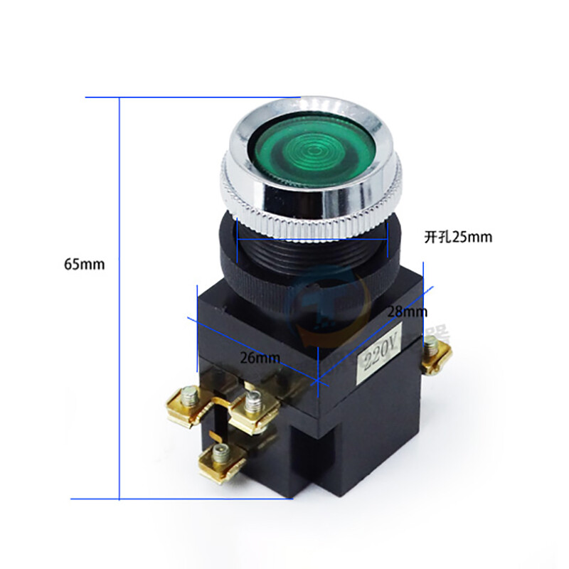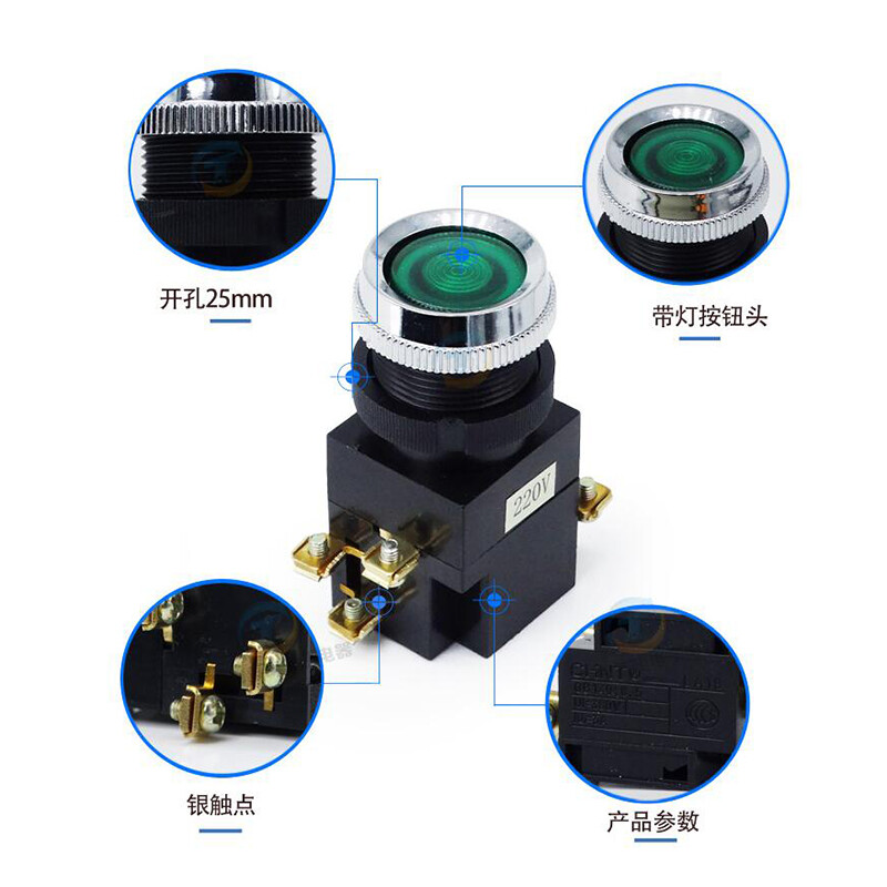 25mm Illuminated Momentary Push Button Switch in Red Green Yellow 220V