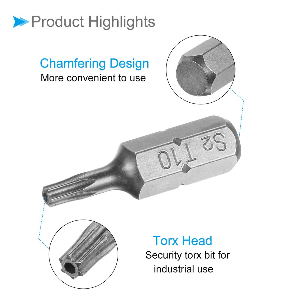 Document Attributes:* Shank Size: 1/4"* Total Length: 25mm / 1"* Bit Type: T10 * Material: S2 SteelWhat Is Included:* 1 Piece x Torx Screwdriver BitApplications & Features:--- Those bits fit for electric screwdrivers, hand screwdrivers, electric drills, air drills, air batches and 1/4" screwdriver sets.--- The torx screwdriver bits are made of S2 steel, which ensures high hardness, durability and wear resistance.--- These screwdriver bits are magnetic, which can firmly absorb the screw to prevent it from falling off.--- The star head bits are easy to install on the screwdriver handle with double ear on the sides of the bit shank.Useful Tips:--- Please apply appropriate force. Excessive force may cause the bit to slip, while insufficient force may not effectively tighten or remove the screw. Torx Screwdriver Bits 1/4" Hex Shank 25mm Long T10 Magnetic Screwdrivers Bit Attributes: * Shank Size: 1/4" * Total Length: 25mm / 1" * Bit Type: T10 * Material: S2 Steel What Is Included: * 1 Piece x Torx Screwdriver Bit Applications & Features: --- Those bits fit for electric screwdrivers, hand screwdrivers, electric drills, air drills, air batches and 1/4" screwdriver sets. --- The torx screwdriver bits are made of S2 steel, which ensures high hardness, durability and wear resistance. --- These screwdriver bits are magnetic, which can firmly absorb the screw to prevent it from falling off. --- The star head bits are easy to install on the screwdriver handle with double ear on the sides of the bit shank. Useful Tips: --- Please apply appropriate force. Excessive force may cause the bit to slip, while insufficient force may not effectively tighten or remove the screw. Hot Item Payment 1.We accept eBay payment . 2.Payment must be received within 7 business days of auction closing. Shipping 1.We ship to your eBay or Paypal address. Please make sure your eBay and Paypal address is correct before you pay. 2.Items will be shipped within 1-3 business day when we received payment. 3.Delivery time depends on destination and other factors. Description Policy Torx Screwdriver Bits 1/4" Hex Shank 25mm Long T10 Magnetic Screwdrivers Bit Attributes: * Shank Size: 1/4" * Total Length: 25mm / 1" * Bit Type: T10 * Material: S2 Steel What Is Included: * 1 Piece x Torx Screwdriver Bit Applications & Features: --- Those bits fit for electric screwdrivers, hand screwdrivers, electric drills, air drills, air batches and 1/4" screwdriver sets. --- The torx screwdriver bits are made of S2 steel, which ensures high hardness, durability and wear resistance. --- These screwdriver bits are magnetic, which can firmly absorb the screw to prevent it from falling off. --- The star head bits are easy to install on the screwdriver handle with double ear on the sides of the bit shank. Useful Tips: --- Please apply appropriate force. Excessive force may cause the bit to slip, while insufficient force may not effectively tighten or remove the screw. Hot Item Payment 1.We accept eBay payment . 2.Payment must be received within 7 business days of auction closing. Shipping 1.We ship to your eBay or Paypal address. Please make sure your eBay and Paypal address is correct before you pay. 2.Items will be shipped within 1-3 business day when we received payment. 3.Delivery time depends on destination and other factors.