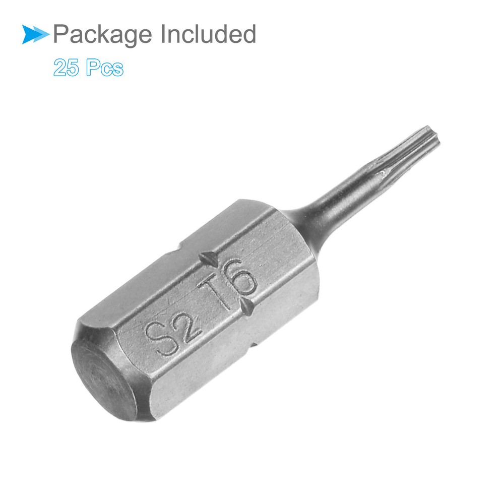 Document Attributes:* Shank Size: 1/4"* Total Length: 25mm / 1"* Bit Type: T6* Material: S2 SteelWhat Is Included:* 25 Piece x Torx Screwdriver BitApplications & Features:--- Those bits fit for electric screwdrivers, hand screwdrivers, electric drills, air drills, air batches and 1/4" screwdriver sets.--- The torx screwdriver bits are made of S2 steel, which ensures high hardness, durability and wear resistance.--- These screwdriver bits are magnetic, which can firmly absorb the screw to prevent it from falling off.--- The star head bits are easy to install on the screwdriver handle with double ear on the sides of the bit shank.Useful Tips:--- Please apply appropriate force. Excessive force may cause the bit to slip, while insufficient force may not effectively tighten or remove the screw. 25pcs Torx Screwdriver Bits 1/4" Hex Shank 25mm T6 Magnetic Screwdrivers Bit Attributes: * Shank Size: 1/4" * Total Length: 25mm / 1" * Bit Type: T6 * Material: S2 Steel What Is Included: * 25 Piece x Torx Screwdriver Bit Applications & Features: --- Those bits fit for electric screwdrivers, hand screwdrivers, electric drills, air drills, air batches and 1/4" screwdriver sets. --- The torx screwdriver bits are made of S2 steel, which ensures high hardness, durability and wear resistance. --- These screwdriver bits are magnetic, which can firmly absorb the screw to prevent it from falling off. --- The star head bits are easy to install on the screwdriver handle with double ear on the sides of the bit shank. Useful Tips: --- Please apply appropriate force. Excessive force may cause the bit to slip, while insufficient force may not effectively tighten or remove the screw. Hot Item Payment 1.We accept eBay payment . 2.Payment must be received within 7 business days of auction closing. Shipping 1.We ship to your eBay or Paypal address. Please make sure your eBay and Paypal address is correct before you pay. 2.Items will be shipped within 1-3 business day when we received payment. 3.Delivery time depends on destination and other factors. Description Policy 25pcs Torx Screwdriver Bits 1/4" Hex Shank 25mm T6 Magnetic Screwdrivers Bit Attributes: * Shank Size: 1/4" * Total Length: 25mm / 1" * Bit Type: T6 * Material: S2 Steel What Is Included: * 25 Piece x Torx Screwdriver Bit Applications & Features: --- Those bits fit for electric screwdrivers, hand screwdrivers, electric drills, air drills, air batches and 1/4" screwdriver sets. --- The torx screwdriver bits are made of S2 steel, which ensures high hardness, durability and wear resistance. --- These screwdriver bits are magnetic, which can firmly absorb the screw to prevent it from falling off. --- The star head bits are easy to install on the screwdriver handle with double ear on the sides of the bit shank. Useful Tips: --- Please apply appropriate force. Excessive force may cause the bit to slip, while insufficient force may not effectively tighten or remove the screw. Hot Item Payment 1.We accept eBay payment . 2.Payment must be received within 7 business days of auction closing. Shipping 1.We ship to your eBay or Paypal address. Please make sure your eBay and Paypal address is correct before you pay. 2.Items will be shipped within 1-3 business day when we received payment. 3.Delivery time depends on destination and other factors.