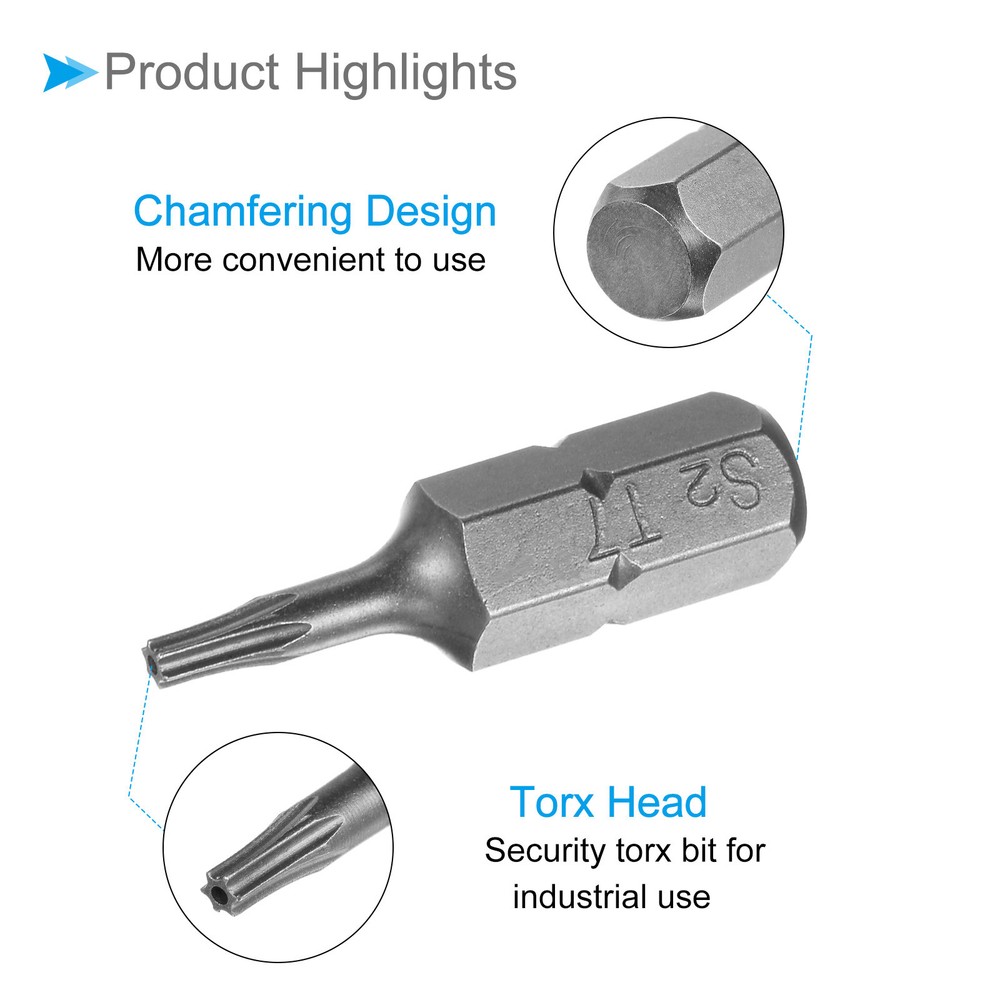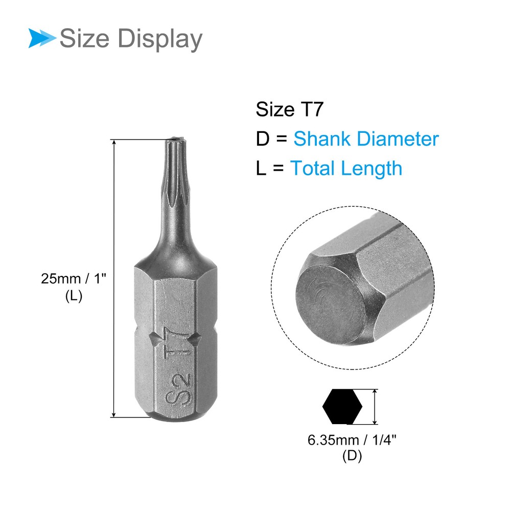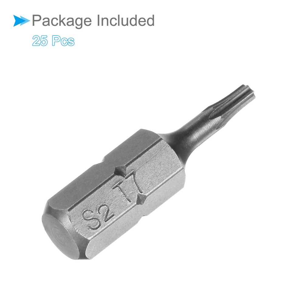 Document Attributes:* Shank Size: 1/4"* Total Length: 25mm / 1"* Bit Type: T7 * Material: S2 SteelWhat Is Included:* 25 Piece x Torx Screwdriver BitApplications & Features:--- Those bits fit for electric screwdrivers, hand screwdrivers, electric drills, air drills, air batches and 1/4" screwdriver sets.--- The torx screwdriver bits are made of S2 steel, which ensures high hardness, durability and wear resistance.--- These screwdriver bits are magnetic, which can firmly absorb the screw to prevent it from falling off.--- The star head bits are easy to install on the screwdriver handle with double ear on the sides of the bit shank.Useful Tips:--- Please apply appropriate force. Excessive force may cause the bit to slip, while insufficient force may not effectively tighten or remove the screw. 25pcs Torx Screwdriver Bits 1/4" Hex Shank 25mm T7 Magnetic Screwdrivers Bit Attributes: * Shank Size: 1/4" * Total Length: 25mm / 1" * Bit Type: T7 * Material: S2 Steel What Is Included: * 25 Piece x Torx Screwdriver Bit Applications & Features: --- Those bits fit for electric screwdrivers, hand screwdrivers, electric drills, air drills, air batches and 1/4" screwdriver sets. --- The torx screwdriver bits are made of S2 steel, which ensures high hardness, durability and wear resistance. --- These screwdriver bits are magnetic, which can firmly absorb the screw to prevent it from falling off. --- The star head bits are easy to install on the screwdriver handle with double ear on the sides of the bit shank. Useful Tips: --- Please apply appropriate force. Excessive force may cause the bit to slip, while insufficient force may not effectively tighten or remove the screw. Hot Item Payment 1.We accept eBay payment . 2.Payment must be received within 7 business days of auction closing. Shipping 1.We ship to your eBay or Paypal address. Please make sure your eBay and Paypal address is correct before you pay. 2.Items will be shipped within 1-3 business day when we received payment. 3.Delivery time depends on destination and other factors. Description Policy 25pcs Torx Screwdriver Bits 1/4" Hex Shank 25mm T7 Magnetic Screwdrivers Bit Attributes: * Shank Size: 1/4" * Total Length: 25mm / 1" * Bit Type: T7 * Material: S2 Steel What Is Included: * 25 Piece x Torx Screwdriver Bit Applications & Features: --- Those bits fit for electric screwdrivers, hand screwdrivers, electric drills, air drills, air batches and 1/4" screwdriver sets. --- The torx screwdriver bits are made of S2 steel, which ensures high hardness, durability and wear resistance. --- These screwdriver bits are magnetic, which can firmly absorb the screw to prevent it from falling off. --- The star head bits are easy to install on the screwdriver handle with double ear on the sides of the bit shank. Useful Tips: --- Please apply appropriate force. Excessive force may cause the bit to slip, while insufficient force may not effectively tighten or remove the screw. Hot Item Payment 1.We accept eBay payment . 2.Payment must be received within 7 business days of auction closing. Shipping 1.We ship to your eBay or Paypal address. Please make sure your eBay and Paypal address is correct before you pay. 2.Items will be shipped within 1-3 business day when we received payment. 3.Delivery time depends on destination and other factors.