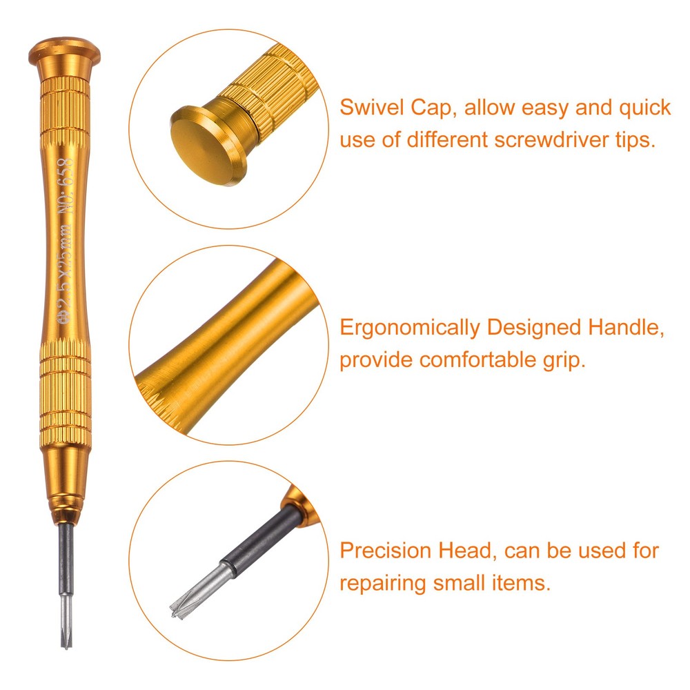 Document The mini magnet screwdriver is made of S2 material, a high-hardness material commonly used in hardware, good for electronic equipment.Ergonomic pen-shaped design aluminum alloy handle provides comfortable grip and excellent control.The tiny screwdriver has a swivel cap at the end of the handle to allow easy and quick use of different screwdriver tips.This small screw driver head features a magnetic design that holds small screws securely in place, preventing them from being lost or misplaced during repairs, allowing you to handle tiny components with precision and efficiency.This pen-style manual screwdriver is suitable for a variety of electronic devices and gadgets, such as repairing cell phones, watches, glasses, cameras, laptops, game consoles, keyboards and other electronic devices.Notice: To prevent damage to the screw and the drill, please do not attempt to turn screws with mismatched sizes. 2.5x25mm Precision Magnetic Phillips Screwdriver with Non-slip Handle, Yellow The mini magnet screwdriver is made of S2 material, a high-hardness material commonly used in hardware, good for electronic equipment. Ergonomic pen-shaped design aluminum alloy handle provides comfortable grip and excellent control. The tiny screwdriver has a swivel cap at the end of the handle to allow easy and quick use of different screwdriver tips. This small screw driver head features a magnetic design that holds small screws securely in place, preventing them from being lost or misplaced during repairs, allowing you to handle tiny components with precision and efficiency. This pen-style manual screwdriver is suitable for a variety of electronic devices and gadgets, such as repairing cell phones, watches, glasses, cameras, laptops, game consoles, keyboards and other electronic devices. Notice: To prevent damage to the screw and the drill, please do not attempt to turn screws with mismatched sizes. Hot Item Payment 1.We accept eBay payment . 2.Payment must be received within 7 business days of auction closing. Shipping 1.We ship to your eBay or Paypal address. Please make sure your eBay and Paypal address is correct before you pay. 2.Items will be shipped within 1-3 business day when we received payment. 3.Delivery time depends on destination and other factors. Description Policy 2.5x25mm Precision Magnetic Phillips Screwdriver with Non-slip Handle, Yellow The mini magnet screwdriver is made of S2 material, a high-hardness material commonly used in hardware, good for electronic equipment. Ergonomic pen-shaped design aluminum alloy handle provides comfortable grip and excellent control. The tiny screwdriver has a swivel cap at the end of the handle to allow easy and quick use of different screwdriver tips. This small screw driver head features a magnetic design that holds small screws securely in place, preventing them from being lost or misplaced during repairs, allowing you to handle tiny components with precision and efficiency. This pen-style manual screwdriver is suitable for a variety of electronic devices and gadgets, such as repairing cell phones, watches, glasses, cameras, laptops, game consoles, keyboards and other electronic devices. Notice: To prevent damage to the screw and the drill, please do not attempt to turn screws with mismatched sizes. Hot Item Payment 1.We accept eBay payment . 2.Payment must be received within 7 business days of auction closing. Shipping 1.We ship to your eBay or Paypal address. Please make sure your eBay and Paypal address is correct before you pay. 2.Items will be shipped within 1-3 business day when we received payment. 3.Delivery time depends on destination and other factors.