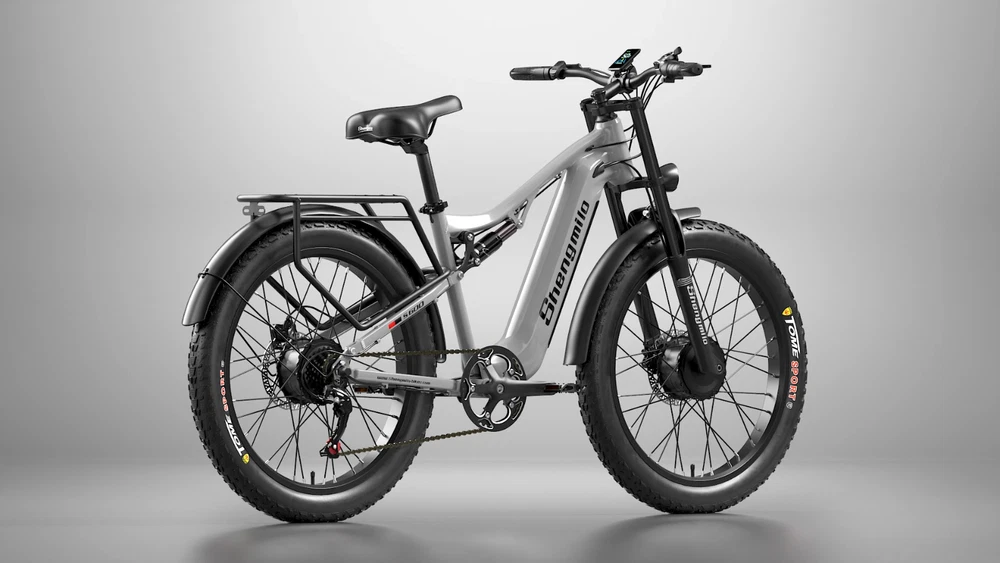 gtin13: 729435103185 Manufacturer Warranty: 1 Year Color: Gray Charging Time: More Than 5 Hours Model Year: 2024 Maximum Speed: 30 mph Shifter Style: Grip Shifter Tire Type: Fat Tires Department: Unisex Adults Item Height: 75-115CM Wheel Size: 26 in Frame Number: Check the handlebar encoding Brand: Shengmilo Custom-Built: Yes Suspension Type: Full Suspension (Front & Rear) Motor Type: Front and rear motors Frame Size: 26 in Maximum Range: Up to 80-100 mi MPN: S600 UPC: 729435103185 Motor Power: 2000W Brake Type: Disc Brake - Hydraulic Voltage: 48 V Gear Change Mechanism: Hub Gears Features: Adjustable Seat, Bell, Display, Front Light, Kickstand, Lithium Ion Battery, Pedal Assist, Rear Bike Rack, Traction Aid Item Weight: 80Ib Country/Region of Manufacture: China Material: Aluminum Alloy Item Length: 186CM Item Width: 58cm Number of Speeds: 7 Speed Bike Type: E-Mountain Bike Handlebar Type: Cruiser Bar Model: Shengmilo S600