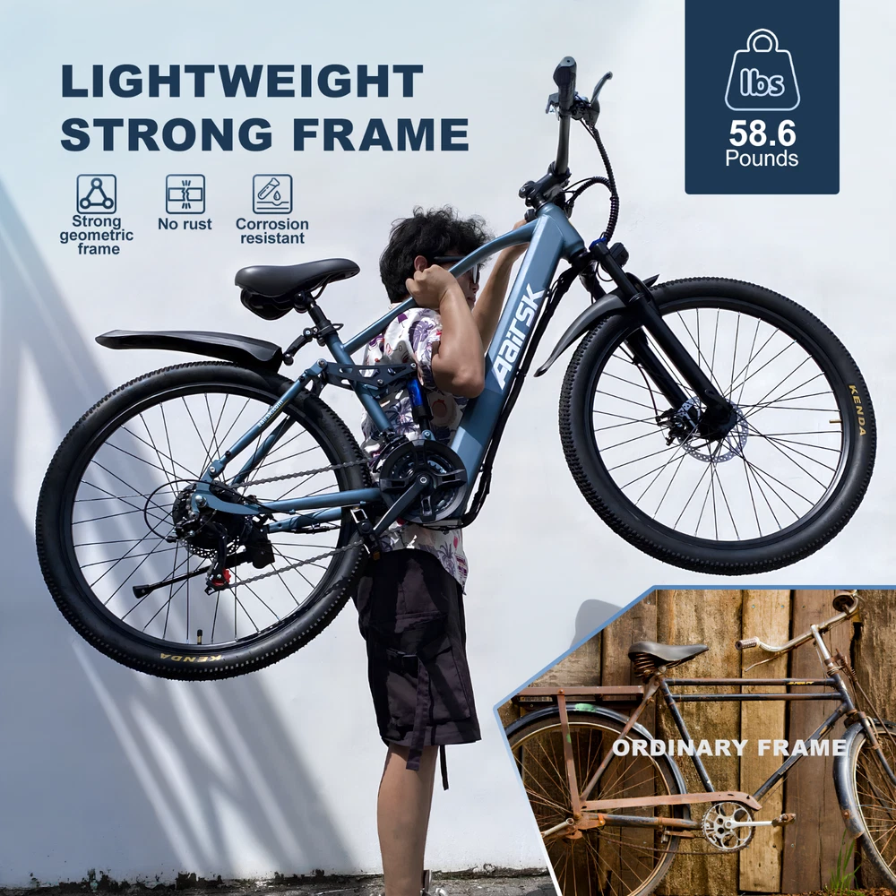 ๐ Key Features: Powerful 400W Motor (Peak 750W): Conquer hills and zip through city streets effortlessly with a motor that delivers 25 MPH top speedโperfect for commutes, adventures, or weekend joyrides! ๐๏ธ๐จ Long-Lasting 40-Mile Range: Explore farther with a high-capacity battery designed for endurance. Whether itโs daily errands or scenic trails, youโll never worry about running out of juice! ๐โจ Smart LCD Display: Track speed, battery life, distance, and assist levels at a glance. Customize your ride with 5-level pedal assist for seamless control! ๐ฑ๐ง Premium 21-Speed Shimano Shifter: Smooth gear transitions for uphill climbs, downhill coasts, or flat-road cruising. Built for versatility and performance! ๐ตโ๏ธโ๏ธ All-Terrain Ready: Tackle any surface with 26"ร1.95" large tires and a shock-absorbing seat bag. Dual disc brakes ensure safety and precision stopping, rain or shine! ๐ง๏ธ๐ ๐ดโ๏ธ Built for Everyone:Adjustable Fit: Adjustable Fit: Accommodates riders from 5' 4"to 6'4"โideal for teens and adults! Heavy-Duty Design: Supports up to 330 lbs with a sturdy aluminum frame. Perfect for carrying groceries, backpacks, or weekend gear! ๐๐ Lightweight & Portable: Weighs just 58.6lbsโeasy to store, lift, or transport. ๐ Safety & Convenience: Dual Disc Brakes: Reliable stopping power in any weather. Pedal Assist + Throttle Modes: Choose between effortless cruising or active pedaling. Quick Assembly: Ready to ride in minutes with pre-installed components! ๐ ๏ธ๐ ๐ฏ Perfect For: Urban commuters ๐๏ธ Weekend adventurers ๐๏ธ Eco-conscious families ๐จ๐ฉ๐ง๐ฆ Fitness enthusiasts ๐โ๏ธ UL 2849 certified for all items in our store. On May 28, 2025 at 18:51:41 PDT, seller added the following information: On Jul 3, 2025 at 05:53:36 PDT, seller added the following information: On Jul 21, 2025 at 09:07:39 PDT, seller added the following information: