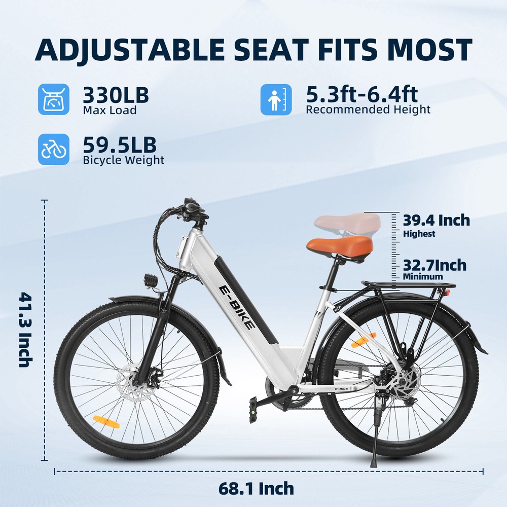 $ 521.6726"ebike Commuter Bike 48V 10Ah 25mph 1500W Peak Ebike for Adults Electric Bike