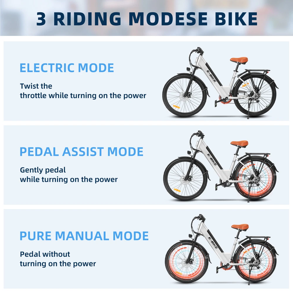 E-Bike 26" Electric Bike for Adults 750W Motor City Bicycle Commuter Ebike US