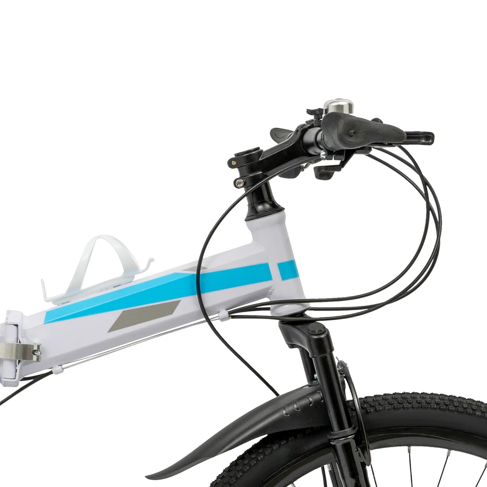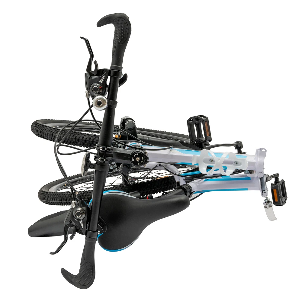 This mountain bike is a fantastic choice for both beginners and experienced riders! The 21-speed gears make it easy to tackle different terrains, and the adjustable seat ensures a comfortable ride for various heights. The foldable design is super convenient for storage and transport, while the sturdy high-carbon steel frame provides excellent durability. The blue and white color combo looks sleek, and the assembly was straightforward. Perfect for commuting or weekend adventures—great value for the price!