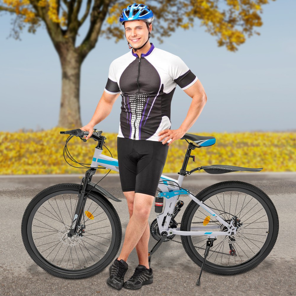 Specifications Color: Blue, White Material: Rubber, High-carbon Steel, Sponge Process: Spray Paint Assembly Required: Yes Number of Speeds: 21 Wheel Diameter: 66cm/26in Load-bearing Capacity: 100kg/220.46lbs Adjustable Height(Seat): About 10cm/3.94in Product Size: 1.72*1.06m/5.64*3.48ft Folded Product Size: 95*100*35cm/37.4*39.37*13.78in Suitable Height: 1.6-1.8m/5.25-5.9ft Package Size: 135*19*70cm/53.15*7.48*27.56in Gross Weight: 21kg/46.3lbs Net Weight: 19kg/41.89lbs Package Included 1* Mountain Bike 1* English Manual Other Needed Accessories 26" Adult Mountain Bike Foldable 21 Speed Adjustable Seat MTB Unisex Bicycle Application The Product Is Suitable for Daily Commuting, Fitness, Off-road Challenges, Competition, Short-distance Recreational Riding, and Long-distance Adventure Travel. Specifications Color: Blue, White Material: Rubber, High-carbon Steel, Sponge Process: Spray Paint Assembly Required: Yes Number of Speeds: 21 Wheel Diameter: 66cm/26in Load-bearing Capacity: 100kg/220.46lbs Adjustable Height(Seat): About 10cm/3.94in Product Size: 1.72*1.06m/5.64*3.48ft Folded Product Size: 95*100*35cm/37.4*39.37*13.78in Suitable Height: 1.6-1.8m/5.25-5.9ft Package Size: 135*19*70cm/53.15*7.48*27.56in Gross Weight: 21kg/46.3lbs Net Weight: 19kg/41.89lbs Package Included 1* Mountain Bike 1* English Manual Other Needed Accessories Description This Mountain Bike Will Be Your Ideal Companion for Both Urban Exploration and Outdoor Adventures. Its Lightweight and Tough Frame with Smooth-shifting 21-Speed Gear System and Seven-piece Alignment Wheels Make It Easy to Ride on Both Steep and Flat Roads. the Unique Folding Design Makes Storage and Carrying Easy and Convenient. the Front and Rear Dual Shock Absorbers, and Double Disc Brakes Allow You to Ride Smoothly and Safely Even on the Rough Mountain Roads, Allowing You to Fully Enjoy the Joy of Outdoor Cycling. Key Features Build to Last: the High-carbon Steel Body, Rubber Wheels, and Spray Paint Process Give the Product High Sturdiness, Durability, Good Shock Absorption Performance, and Resistance to Corrosion, Rust, Deformation, and Abrasion. Flexible Riding: the Front Derailleur with Three Discs and the Rear Derailleur with Seven Discs Give the Bike a Total of 21 Shifting Options, Allowing You to Make Flexible Changes to Optimize Your Riding Experience on the Flats, Steeps, or Hills. It Also Comes with a Finger Paddle and a Rear Paddle for Quick Speed Adjustments. Excellent Load-bearing Capacity: the Stable Structure and Sturdy Material Allow This Product to Withstand a Weight of 220.46 Lbs , Making It Suitable for Most Ordinary People to Use. User-friendly Design: the Dual Shock Absorbing System, Soft Sponge-filled Saddle, and Ergonomic Handle Minimize the Impact of Your Ride, and Relieve Pressure on Your Hands and Shoulders, Allowing You to Control the Direction of Your Ride Safely. Adjustable Design: the Height of the Saddle Is Adjustable by Approximately 3.94 Inches, Allowing You to Adjust According to Your Conditions. Reliable Brake System: Dual Disc Brake System Has Excellent and Stable Braking Performance to Cope with the Harsh Environment and Riding Road Conditions to Ensure Your Driving Safety. Foldable Design: Its Foldable Design (37.4*39.37*13.78in) Makes It Easy to Be Carried Outside or Stored in Your Warehouse Without Taking up Much Space. Easy Assembly: When You Receive the Product, 85% of It Has Been Assembled, and You Only Need to Use the Equipped Tools to Complete the Remaining Installation According to the Instructions. Customer Service: We Aim to Provide Quality Products and Services. If You Have Any Problems, Please Feel Free to Contact Us. We Will Reply and Solve the Problem for You As Soon As Possible. Details Non-slip Wheels: the Spoked Rubber Wheels with Concave-convex Texture Will Greatly Improve the Grip Performance for Better and Safer Riding Performance. Anti-slip Pedals: They Increase the Friction with the Foot and Prevent Slipping. Short Brake Lever: the Shorter Stroke of the Brake Lever Makes It Easier for Young Drivers to Grasp and Squeeze the Brake Lever. Sturdy Kickstand: It Can Hold Your Bike Stably to Prevent Shaking or Falling. Mudguards: Front and Rear Mudguards Can Keep Splashes of Mud and Water from Dirtying You and the Bike Body. Reflectors: the Front End, Seat, and Wheels Are Fitted with Light-reflecting Devices to Make You Feel Safer When Cycling at Night. Cup Holder: You Can Clip Your Cup Onto It for Drinking Conveniently. Notes Please Check the Size Carefully Before Ordering. Please Read the Operating Manual Completely Before Use. and Pay Particular Attention to the Safety Instructions Included. The Foot Pedal Has a Difference Between Left and Right. When Installing, Please Align the Thread and Tighten the Foot Pedal with a Tool. When Cycling, Please Follow the Traffic Rules of Your Area and Do Not Ride in Dangerous Areas or Motor Vehicle Lanes. Please Use This Product Within the Load-bearing Range. Please Allow the Slight Color Difference Caused by the Shooting Light and 1-3cm Error Due to Manual Measurement, and Make Sure You Do Not Mind Before You Order. Payment Delivery details Terms of sales About us Contact us Payment We accept ebay payment 。 Fees such as import duties, taxes are not included in the item price or shipping costs. These charges are the buyer's responsibility. Delivery details Shipping: 2-9 working days to: USA Terms of sales We maintain high standards of excellence and strive for hundred percent customer satisfaction. Feedback is very important to us. We hope that you contact us immediately before you give neutral or negative feedback, so that we can address your concerns. It is impossible to address issues if we do not know about them! About us Your satis faction is our ultimate goal. We work hard to earn your trust and future business. Our certified technicians have tested each item before shipping. The unit comes with 1 year limited warranty on all manufacturing defects.