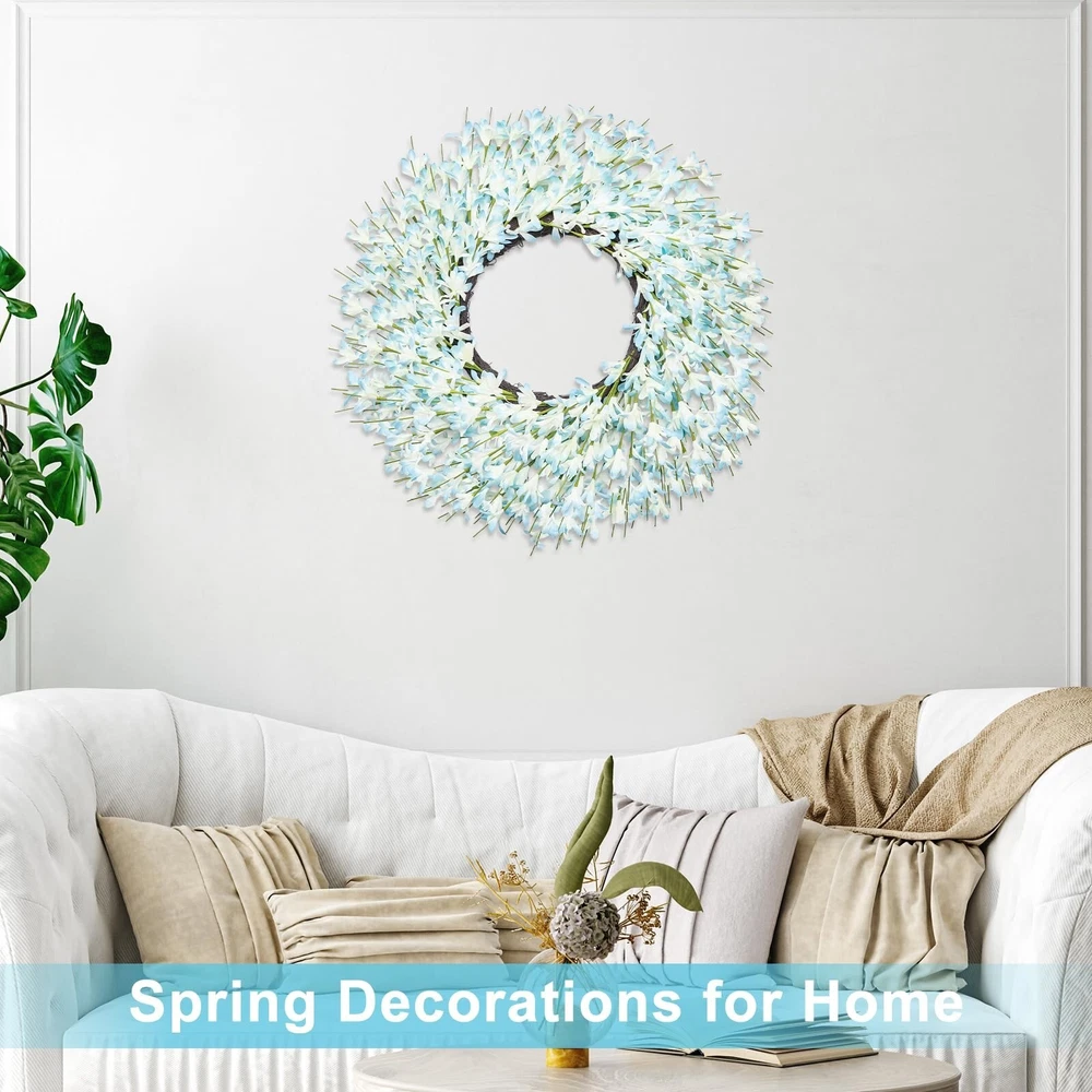 Large Summer Spring Wreaths for Front Door 26 Inch Spring Summer Door Wreath Easter Wreaths for Front Door Wild Floral Wreath for Farmhouse Porch Wall Wedding Living Room Home Decor Aesthetic(Blue) Product Details Color: Blue Brand: LZNPA MPN: HS-H0 UPC: Does not apply EAN: Does not apply Color: Blue Brand: LZNPA Material: Twigs, Artificial Flowers Mounting Type: Wall Mount Shape: WREATHS Product Dimensions: 26"D x 26"W x 2.75"H Seasons: Winter, Summer, Spring Occasion: Easter, Summer, Spring, Valentine's Day Manufacturer: LZNPA Indoor/Outdoor Usage: Outdoor, Indoor Color: Blue Brand: LZNPA Material: Twigs, Artificial Flowers Mounting Type: Wall Mount Shape: WREATHS Product Dimensions: 26"D x 26"W x 2.75"H Seasons: Winter, Summer, Spring Occasion: Easter, Summer, Spring, Valentine's Day Manufacturer: LZNPA Indoor/Outdoor Usage: Outdoor, Indoor Item Weight: 1.4 pounds Country of Origin: China Item model number: HS-H0 Date First Available: January 7, 2025 Lifelike Summer Spring Wreath: The lush large summer spring wreaths for front door outside are meticulously crafted with high quality EVA. Compared to other summer spring wreath, the LZNPA 26 Inch outdoor wreaths for front door use as many petals as possible to make the whole spring door wreath look very full ! Beautiful !Elegant ! enhanced by vibrant colors create a welcoming atmosphere for guests, This is a very beautiful summer spring decorations for home 26 Inch Large Front Door Wreath Spring: Attention please, the 26 Inch large door wreaths for front door outside all season is securely packaged in a 16 Inch gorgeous box. Remove the easter wreaths for front door from the delicate carton, arrange the large green wreaths for front door simply, and the gorgeous easter wreath can be fully displayed.The high-quality materials used in its structure ensure that it can maintain its stunning gorgeous appearance over time Large Spring Summer Wreath Decor: This versatile large spring wreaths for front door clearance can be used indoors outdoors home decor in different seasons. Hang it on a door or wall.Suitable for home decor, front door living room bedroom window mirror wall fireplace kitchen dining room porch villa wedding office balcony stairs shop hotel Valentine's Day spring door front porch farmhouse decor. Its timeless and professional design complements a variety of indoor and outdoor styles, making it a perfect addition to everyday spring decor and holiday celebrations Easy to Arrange and Maintain: The 26 Inch large wild flower wreaths for front door is made of a resilient memory material allows for easy shaping and adjustment to the desired form,the outdoor wreaths for front door is easy to maintain, the bottom base is made of grape vine, each petal is reinforced to ensure the integrity of the spring door decor, and the gorgeous color guarantees the novelty and uniqueness of the summer spring door wreath, which will definitely make your front door stand out on the whole block Professional Factory and High Quality: LZNPA is a factory focusing on Artificial Plants Decoration, we continue to increase the investment in research and development, only to provide high quality Artificial Plants Decoration products, we always adhere to the principle of quality first, if there is any problem, I will be the first time for you to solve, please believe in our product quality