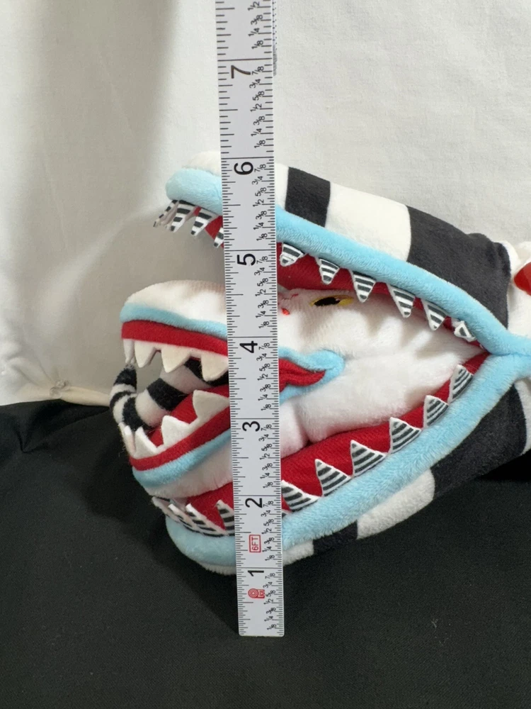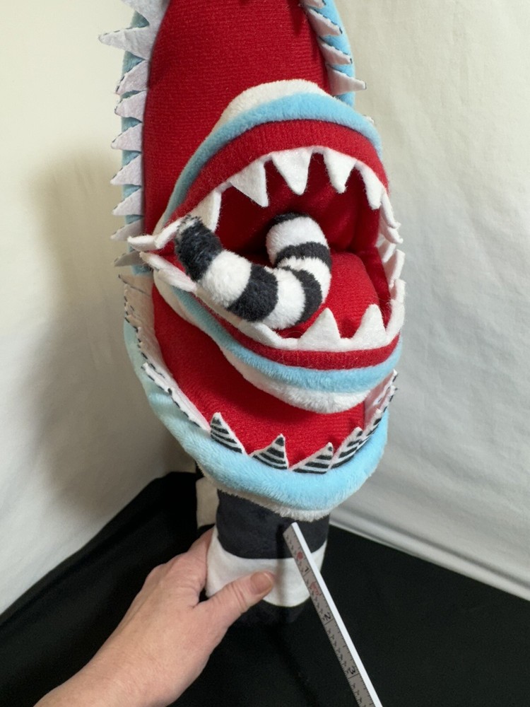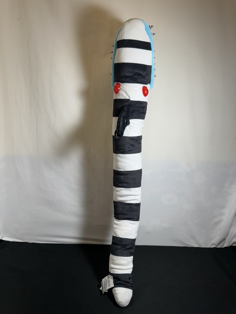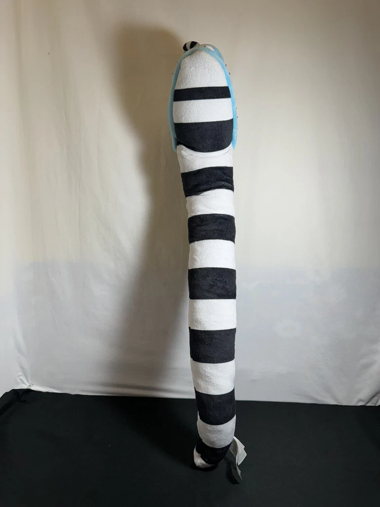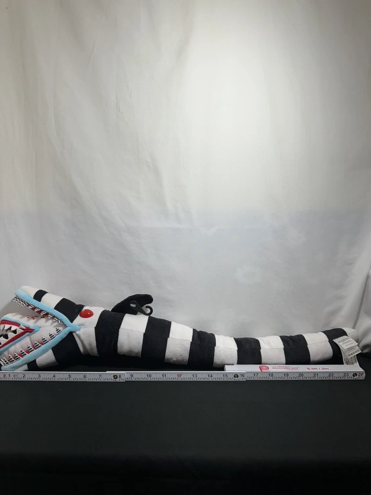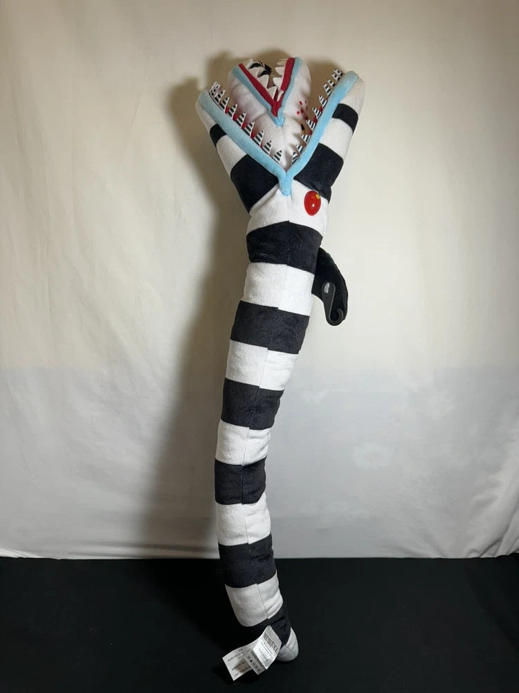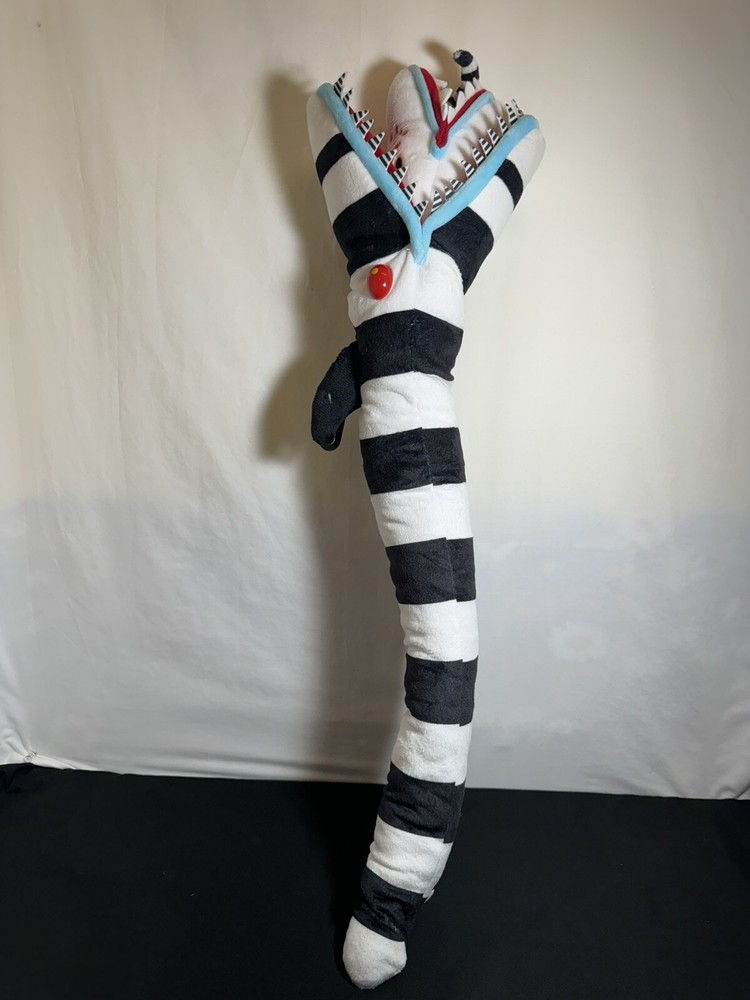 This 26" poseable Beetlejuice Sandworm plush toy is perfect for Halloween or any occasion. With its large size and detailed design, it is sure to impress any fan of the Beetlejuice movie. The Sandworm is a must-have for any collector of movie memorabilia or stuffed animal enthusiast. It is made by Spirit Halloween and is part of the Character Family category. Use it for decoration or as a fun toy for kids and adults alike.