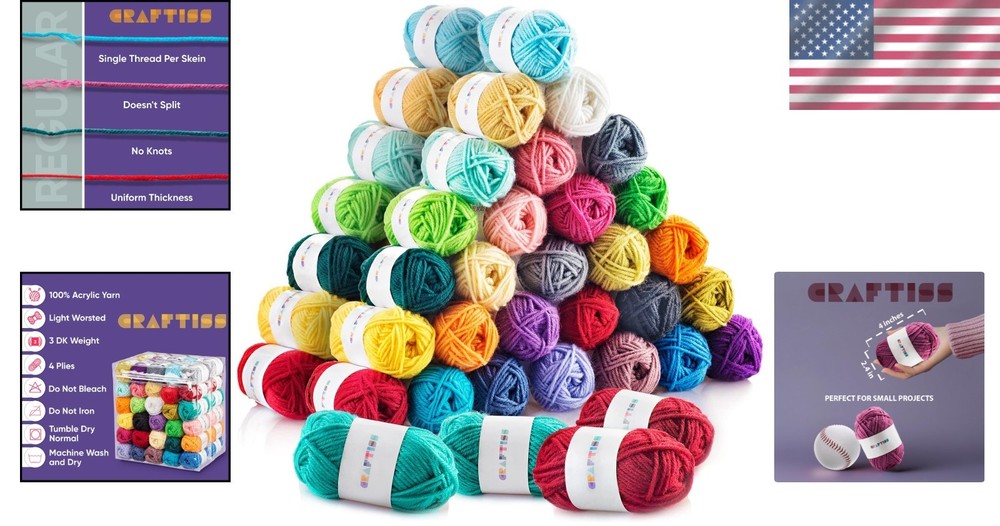 2600 Yards Acrylic Yarn Bundle - Craft Supplies for All Ages ‹ › ‹ › ‹ › ‹ › ‹ › ‹ › ‹ › ‹ › ‹ › ‹ › 2600 Yards Acrylic Yarn Bundle -Craft Supplies for All Ages Product Features: 60 durable and easy-to-work-with acrylic crochet yarn skeins. Each skein holds rich color, perfect for a dazzling array of crafting projects. Perfect for beginner crochet projects such as granny squares, amigurumi, or temperature blankets. Soft and multi-color yarn ideal for knitting, making it suitable for both kids and adults. Each skein measures 8s/4 plies, DK weight, and is 40 meters long. Comes with a convenient plastic zippered bag for effortless storage and organization. Benefits: Endless craft possibilities for all skill levels, from beginners to seasoned crafters. Soft, durable yarn ensures your creations are comfortable to wear or use. Inspiring assortment of 30 vibrant colors to ignite creativity. Ideal for crafting fun activities with kids, fostering creativity and skills. Convenient and organized storage for hassle-free crafting sessions. Why Choose Our Acrylic Yarn Bundle? Unlock a world of creativity with our 2600 Yards Acrylic Yarn Bundle . This beautifully assorted craft supply kit not only tempts your creative spirit but also caters to all ages, providing soft yet durable yarn that is perfect for various projects. Whether you're a beginner venturing into the art of crochet or knitting, or an experienced crafter exploring new horizons, this bundle is tailored for your artistic journey. With 60 mini skeins in an array of vibrant colors, you have the freedom to explore limitless crafting possibilities—create stunning granny squares, intricate amigurumi, or cozy blankets. Plus, the convenient zippered bag ensures your yarn stays organized and ready for your next project. Don’t wait to start crafting beautiful pieces—order your Acrylic Yarn Bundle today and let your creativity shine! Shipping Free & Fast Shipping - We offer free shipping to most of the USA with a normal delivery time of 3-10 business days. However, due to various situations, additional delivery time (up to 3 weeks) may be required for some items. Alternative Carriers - We may use alternative carriers (e.g. USPS, FedEx, UPS, etc.) to ensure your package arrives safely and on time. Due to the use of multiple carriers, we are unable to provide a tracking number automatically. Handling Time - Orders are processed and shipped within 1-5 business days of receiving cleared payment. Shipping Restrictions - Shipping to Alaska, Hawaii, Puerto Rico, Guam, and other US territories may incur shipping charges or delivery restrictions. Please contact us before ordering, or your order can be refunded/cancelled. State Restrictions - There may be restrictions based on your state of purchase. For example, certain items may not be shipped to California due to state regulations. Contact for Tracking Updates - If you require tracking updates or have any concerns about the delivery of your order, please feel free to contact us, and we will be happy to assist you. Return 30-Day Hassle-Free Returns - We want you to be completely satisfied with your purchase. If you are not, you can return the item within 30 days of receiving it for a full refund or exchange. Easy Return Process - To start a return, simply contact us and we will provide you with a prepaid return shipping label and detailed instructions. Restocking Fee - There are no restocking fees for returns. However, the buyer is responsible for return shipping costs if the return is not due to a seller's error. Refund Processing Time - Refunds will be processed within 5 business days of receiving the returned item in its condition. Payment We accept all major credit cards, PayPal, and Apple Pay for your convenience. Your payment information is secure and encrypted to ensure a safe and seamless transaction. Please complete your payment within 3 days of purchase to avoid any delays in shipping. Feedback Your feedback is extremely important to us. We strive to provide the best products and customer service possible. If you are satisfied with your purchase, please take a moment to leave us a positive review. If you have any concerns or issues with your order, please contact us before leaving negative feedback. We are committed to resolving any problems and ensuring your satisfaction. Contact Us If you have any questions or concerns, please feel free to out to our customer support team. You can contact us through the eBay messaging system. We are available Monday to Friday, 9:00 am to 5:00 pm EST, and we will do our best to respond to your inquiry within 24 hours. Buy it now and enjoy a pleasant shopping experience! Unit Quantity: 60 Fiber Content: Acrylic Suitable For: Crafts,Crochet,Knitting Unit of Sale: Pack/Set Color: Multi-Color Weight: 3 - DK/Light Worsted Style: Plain Type: Mini Skein Shape: Ball