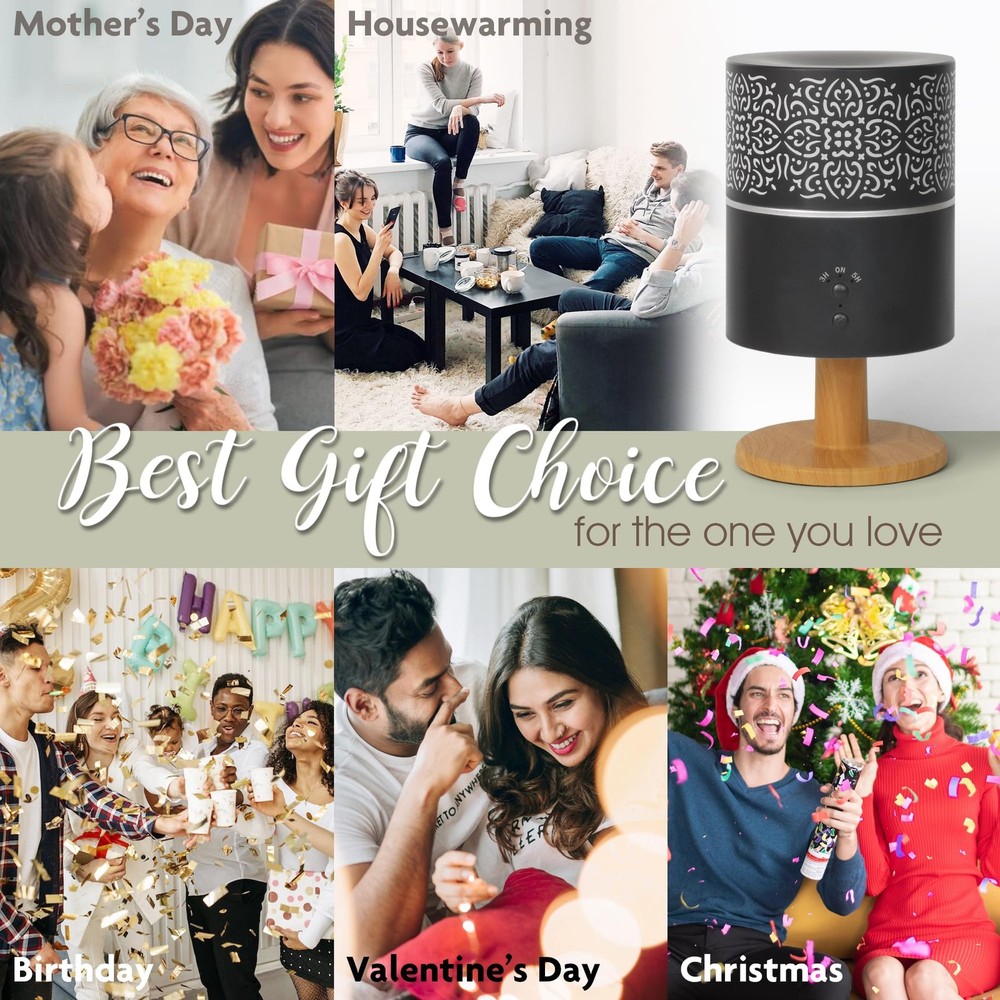 Aromatherapy is one of the best ways to create a soothing, relaxing environment, and our Essential Oil would help you bring that peacefulness into your life. Just add a few drops of your favorite essential oils, and the fine mist will be emitted into your surroundings; you will instantly feel the calming sensation from nature scent, it is often used to improve sleep. Essential Oil Diffuser 260ml Classic Lamp Diffuser [no beep upgrade] improve your home’s air and atmosphere quality, overcome the smell of pets or smoking, protect your family from excessively dry air, and relieve stress from all day’s work. Aromatherapy Diffuser is equipped with waterless auto shut-off function. Fill it with water and add a few drops of essential oils, and make a comfortable and unique aroma space for yourself. Cool Mist Humidifier advanced ultrasonic diffuser with 3 timers, this beautiful decorative piece runs steady and quiet. It’s the best experience for you and your family. Essential Oil Diffuser with Lamp Night Light is the perfect match. It’s a great companion for you to focus, study, yoga or sleep. Ultrasonic Diffuser for Essential Oils is a great gift for your friends, family and lover on Birthday, Housewarming, Wedding party, Mother's Day, Father's Day, Christmas, New Year and Valentine's Day. Risk- free purchase with money back guarantee in 30 days warranty.