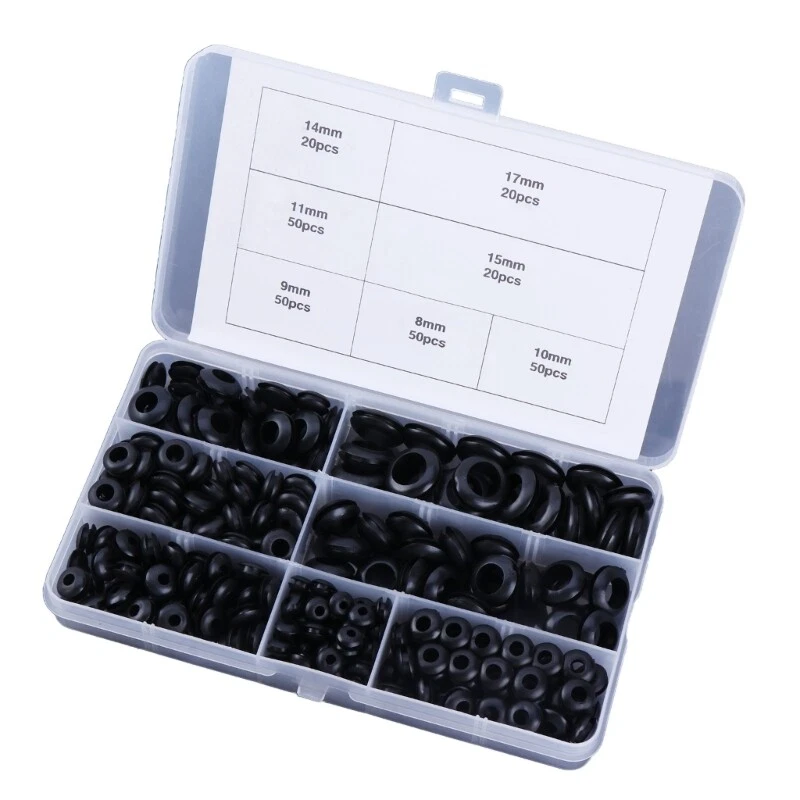 Features: Keep your electrical connection secure with the 260pcs Rubber Grommet Set. Crafted from flexible rubber, these grommets offer protections for your wiring need. Suitable for wide rangings of users, including electricians and hobbyists in need of cable insulation. Use these rubber grommets in various applications such as plumbing and electronics projects. The storage box keep your grommets organized and easily accessible. Specifications: Produced of rubber Quantity: 14mmx20pcs 17mmx20pcs 11mmx50pcs 15mmx20pcs 9mmx50pcs 8mmx50pcs 10mmx50pcs Package Includes: 260pcs Rubber Grommets note: Please allow 1 to 3cm error due to manual measurement, please make sure you not mind before your bid, Due to the differences between different monitors, the picture may not reflect the actual colorful of the item.