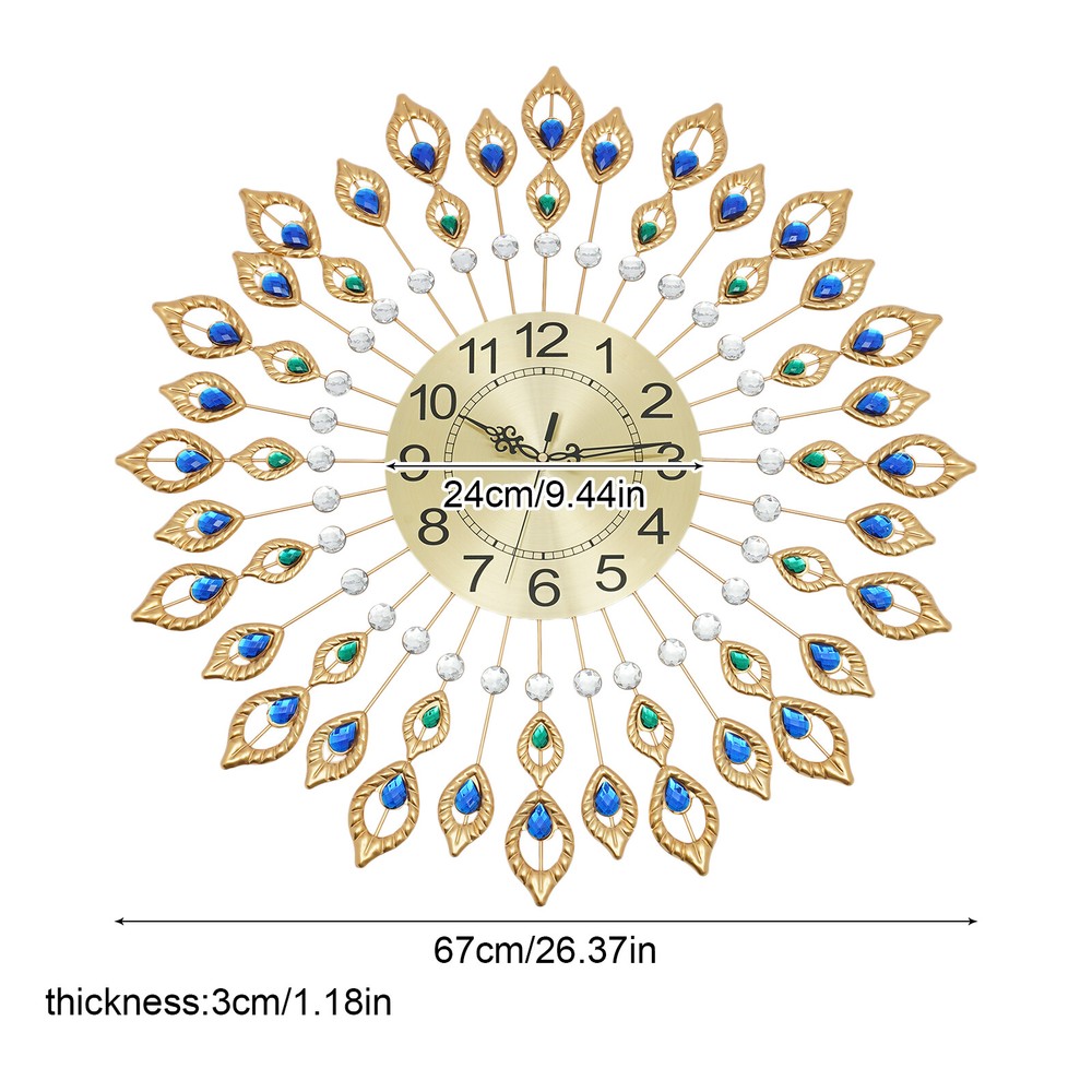 26.4'' Modern 3D Large Wall Clock Metal Watch Art Design Home Living Room Decor 26.4'' Modern 3D Large Wall Clock Metal Watch Art Design Home Living Room Decor 26.4'' Modern 3D Large Wall Cloc Note: Must Be Use 1 Aa Carbon Battery (Not Included ), Please Don't Use Alkaline Batteries or Rechargeable Batteries,Wall Clocks Should Use Carbon Batteries. Wall Clock for Living Room Decor,Crystal Peacock Wall Clocks Modern Design 3d Clocks Wall for Home Decor Large Round Metal Silent Non-ticking Feature: Peacock Design: This Big Wall Clocks Made Just like a Pretty Peacock, It’s Body Has Small Royal Blue Jewels in It, When the Light Is Shined on It, It Sparkles. If You Have a Spotlight to Put on It- It Would Be Stunning. This Large Wall Clocks Decor Is Painted with Metallic Iridescent Blue That Closely Resembles some of the Colors of the Peacock. It Is Very Attractive. Size:this Big Wall Clock Peacock Whole Size Is:67*67cm/ 26.4*26.4inch, Please Check the Size Before Buying, It's Big Enough for Your Living Room and Bedroom Decor. Material : Handmade Metal Creative Wall Clock , Made of Durable Metal with High Temperature Lacquer,Metal Dial ,48pieces Crystal and Aluminum Needle Silent Movement: Silent Sweeping Quartz Movement Allows You to Studying, Working or Sleeping in a Quiet Environment with No "Tick Tick". Clock Information: 100% Brand New. Product Name: Gold Peacock Wall Clock Color :Gold Product Size: 67x67x3cm/26.38x26.38x1.18in Movement : Quartz ( Battery Powered) Product Material:iron Requires: 1 X Aa Batteries (Not Included) Weight:about 1.8kg Package Included: 1x Clock 2 X Hooks Tips: 1. Manual Measuring, Please Allow 1 ~ 3mm Error,Thank You. 2. Due to the Difference Between Monitors,the Picture May Not Reflect the Actual Color of the Item.the Style Is the Same As Shown in the Picture Welcom to alwaytty03 Payment Delivery details Terms of sales About us Contact us Payment We accept ebay payment 。 Fees such as import duties, taxes are not included in the item price or shipping costs. These charges are the buyer's responsibility. Delivery details Shipping: 2-9 working days to: USA Terms of sales We maintain high standards of excellence and strive for hundred percent customer satisfaction. Feedback is very important to us. We hope that you contact us immediately before you give neutral or negative feedback, so that we can address your concerns. It is impossible to address issues if we do not know about them! About us Your satis faction is our ultimate goal. We work hard to earn your trust and future business. Our certified technicians have tested each item before shipping. The unit comes with 1 year limited warranty on all manufacturing defects. a) If you receive a defective item, you may return it or ask for a discount. Please contact us within 14 days after you receive the package. b) What you returned must be intact and in its original packaging as re? u. Customer is responsible for shipping costs of the returned item. c) We will cover the cost of shipping back t with the shipping rate indicated in the registration page. We will send you a new unit or refund the full payment you paid. Thank you. Contact us Business Hour Business Hour: Monday To Friday: 8:30 AM to 5:00 PM (Beijing China time) Due to time zones, our reply to your questions may not be immediately. But within above working time, we will reply your email within 24 hours. If it's non-workdays, please kindly be patient and wait till Monday. Please contact us with ebay message. Please feel free to contact us if you have any questions. Monday To Friday: 8:30 AM to 5:00 PM (Beijing China time) Due to time zones, our reply to your questions may not be immediately. But within above working time, we will reply your email within 24 hours. If it's non-workdays, please kindly be patient and wait till Monday. Please contact us with ebay message. Please feel free to contact us if you have any questions.