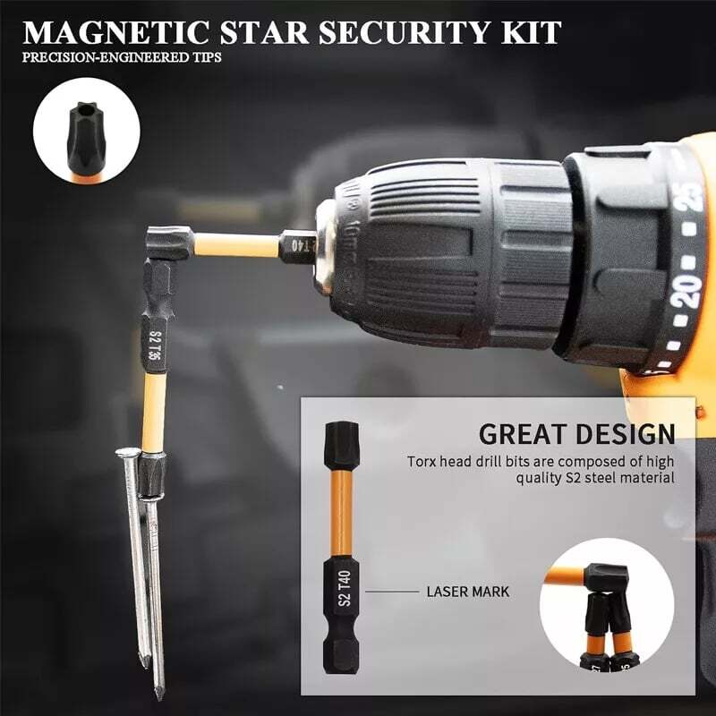 This Torx screwdriver bit set is a game-changer! The industrial-grade S2 alloy steel feels incredibly sturdy, and the heat treatment makes it last way longer than regular bits. The black phosphate coating adds extra rust resistance, so it stays reliable even with heavy use. The tamper-proof design is a nice touch, and the 1/4" hex handle fits snugly for better control. Perfect for DIY projects or professional work—durable, precise, and totally worth it!