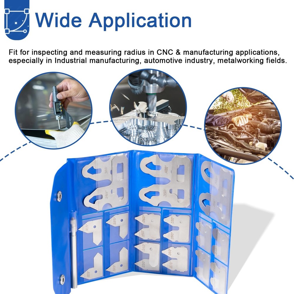 FITMENT: The 3602-5025 Radius Gauge Set commonly used in Industrial manufacturing, automotive industry, metalworking fields. Fit for inspecting and measuring radiuses in CNC and manufacturing applications. FEATURES: 1)Key Function-- The kit helps in determining correct radius of objects. Measure the concave and convex radius or fillet of metal objects for checking angles, which works as a reference and standard for comparing tools. 26-Piece Radius Gauge Set 0.010'' to 0.500'' Gauges with Holder, 3602-5025 Radius Gauge Set (26) FITMENT: The 3602-5025 Radius Gauge Set commonly used in Industrial manufacturing, automotive industry, metalworking fields. Fit for inspecting and measuring radiuses in CNC and manufacturing applications. FEATURES: 1)Key Function-- The kit helps in determining correct radius of objects. Measure the concave and convex radius or fillet of metal objects for checking angles, which works as a reference and standard for comparing tools. 2)Individually Marked-- Each radius gauge labeled with a precision etched numbers, making users easy to quickly read and select. The set made of rust proof steel with satin chrome finish, ensuring high hardness, wear and corrosion resistance. 3)Protective Sleeve-- Keep each gauge in order within a set and facilitate the use, making it easy to remove and replace from the set without damaging other gages. Storage radius gauges from dings, scratches, and corrosion and provide a compact and secure way to transport the set. 4)Included Sizes-- The kit has 26 pcs Radius Gauge, including 0.010'' to 0.025'' by 0.005'' ; 0.030'' to 0.100'' by 0.010''; 0.120'' to 0.300'' by 0.020'' ; 0.350'' to 0.500'' by 0.050''. Item Specifics Brand NO-Auto Warranty 1 Year MPN NOQP1932 Type 26pcs Radius Gauge Set Material Stainless Steel Model 3602-5025 Number of pieces 26 Payment 1. Payment methods accepted: Payoneer . Our Payoneer account allows you to pay by credit card, debit card and your paypal balance. 2. We ship items to Your Ebay address .Please make sure your Ebay address is correct before you pay, cause it cannot be changed once the order shipped out. Shipping 1. Item will be shipped out within 1-2 business day after clear payment received. 2. Please make sure shipping address on your ebay account is correct & up-to-date. 3. All of our items are shipped from our AU warehouse. 4. Please feel free to contact us by email if you cannot get your order in time. Please read the shipment and payment detail carefully before you bid. Returns 1. Return to us within 30 days from the delivery date for exchange or refund. Refund will be given as Money back or item exchange (buyer's choice). 2. Return shipping fee is the responsibility of buyer unless the return is a result of our mistake. 3. If you need return, please contact our customer service representative, let us know the detailed problem and send us some pictures for confirmation. Contact Us Please contact us via ebay using" Contact member ". We will respond within 1 business day or less.Thank you for your understanding. Our office hours is as below : - 9:00 a.m. to 6:00 p.m. (GMT +8) of Monday to Friday - 9:00 a.m. to 1:00 p.m. (GMT +8) of Saturday And our office is closed on Sunday and public holidays. We apologize for the late reply during the holidays.Please contact us via ebay using" Contact member ". We will respond within 1 business day or less. Please include your ebay item number or order number in all communications. 26-Piece Radius Gauge Set 0.010'' to 0.500'' Gauges with Holder, 3602-5025 Radius Gauge Set (26) FITMENT: The 3602-5025 Radius Gauge Set commonly used in Industrial manufacturing, automotive industry, metalworking fields. Fit for inspecting and measuring radiuses in CNC and manufacturing applications. FEATURES: 1)Key Function-- The kit helps in determining correct radius of objects. Measure the concave and convex radius or fillet of metal objects for checking angles, which works as a reference and standard for comparing tools. 2)Individually Marked-- Each radius gauge labeled with a precision etched numbers, making users easy to quickly read and select. The set made of rust proof steel with satin chrome finish, ensuring high hardness, wear and corrosion resistance. 3)Protective Sleeve-- Keep each gauge in order within a set and facilitate the use, making it easy to remove and replace from the set without damaging other gages. Storage radius gauges from dings, scratches, and corrosion and provide a compact and secure way to transport the set. 4)Included Sizes-- The kit has 26 pcs Radius Gauge, including 0.010'' to 0.025'' by 0.005'' ; 0.030'' to 0.100'' by 0.010''; 0.120'' to 0.300'' by 0.020'' ; 0.350'' to 0.500'' by 0.050''. Item Specifics Brand : NO-Auto Warranty : 1 Year MPN : NOQP1932 Type : 26pcs Radius Gauge Set Material : Stainless Steel Model : 3602-5025 Number of pieces : 26 Payment Shipping Returns Contact Us 1. Payment methods accepted: Payoneer . Our Payoneer account allows you to pay by credit card, debit card and your paypal balance. 2. We ship items to Your Ebay address .Please make sure your Ebay address is correct before you pay, cause it cannot be changed once the order shipped out. 1. Item will be shipped out within 1-2 business day after clear payment received. 2. Please make sure shipping address on your ebay account is correct & up-to-date. 3. All of our items are shipped from our AU warehouse. 4. Please feel free to contact us by email if you cannot get your order in time. Please read the shipment and payment detail carefully before you bid. 1. Return to us within 30 days from the delivery date for exchange or refund. Refund will be given as Money back or item exchange (buyer's choice). 2. Return shipping fee is the responsibility of buyer unless the return is a result of our mistake. 3. If you need return, please contact our customer service representative, let us know the detailed problem and send us some pictures for confirmation. Please contact us via ebay usi