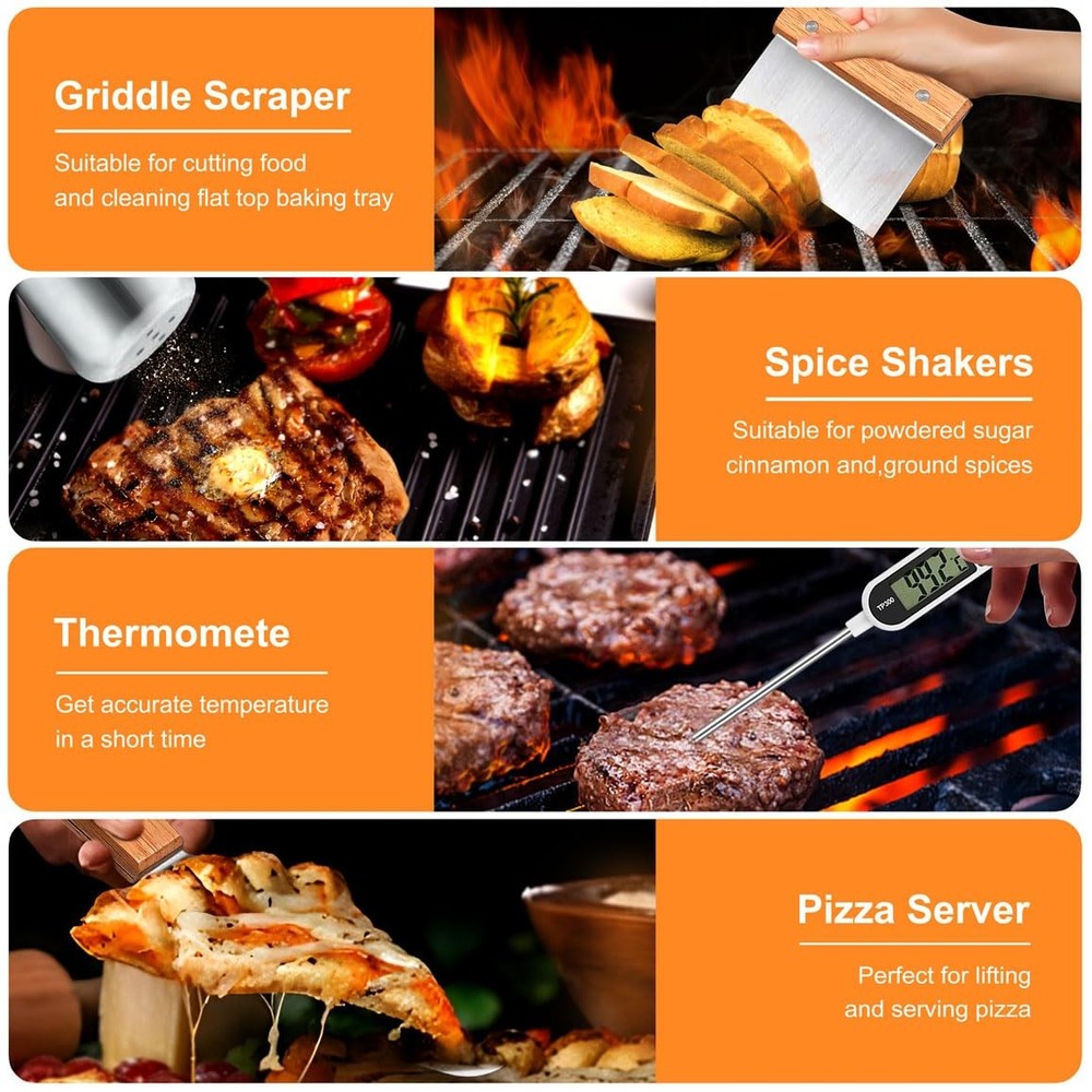 This 26-piece griddle kit is a game-changer for any grill master! The high-quality stainless steel tools feel sturdy and cover everything from flipping burgers to scraping the grill. They make outdoor cooking so much easier—no more running back inside for missing utensils. Cleanup is a breeze since they’re dishwasher-safe, and they stay organized in the handy holder. Whether you’re a weekend warrior or a serious grill pro, this set has everything you need to take your cooking to the next level. Totally worth it!