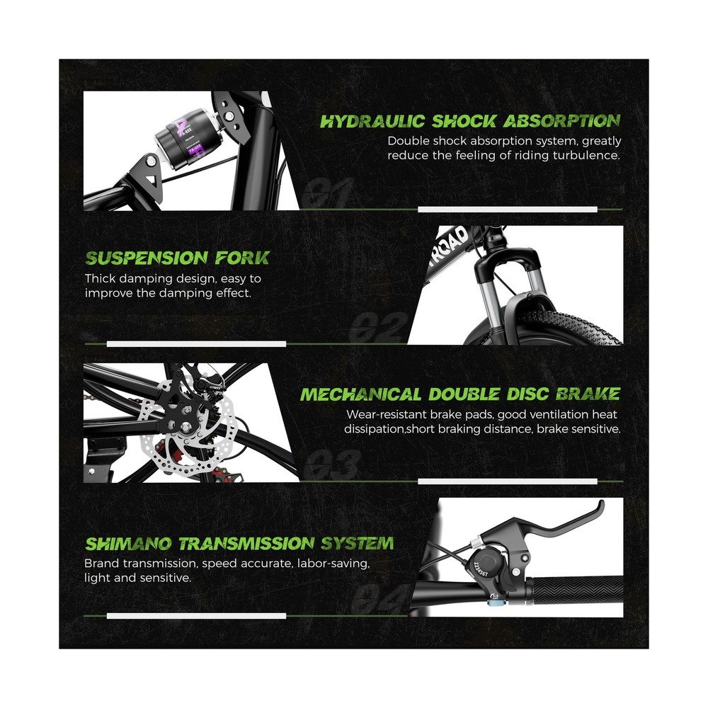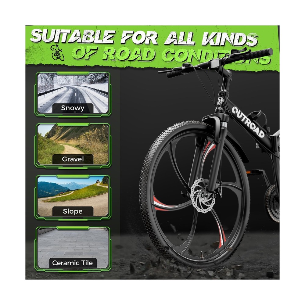 26 Inch Adult Folding Mountain Bike, 21 Speed Foldable Bicycle with Full Suspension, Dual Disc Brake, High Carbon Steel Frame, Folding Bikes for Men/Women/Teen Description Features: Rapid Folding CapabilityWith its quick-folding mechanism, this foldable bike effortlessly collapses within seconds to a compact size of 33"x38", facilitating easy transportation and storage wherever you go. Aerodynamic EfficiencyFeaturing 6-spoke magnesium alloy wheels, PanAme folding bike ensures superior aerodynamics and strength compared to traditional spoke wheels, enhancing speed and durability on any terrain. Enhanced ComfortFeatures front and rear dual suspension systems and an ergonomically adjustable seat extending up to 12", allowing riders to find their optimal position for maximum comfort, suitable for heights ranging from 5.3' to 6'. Precision HandlingEquipped with dual disc brakes and a 21-speed thumb shifter, this bicycle offers unparalleled control and maneuverability, ensuring a thrilling riding experience whether on rough trails or city streets. Easy Installation and Support:With 90% pre-assembly, the bike comes with installation tools and instructions. A helpful installation video on the product page further assists users in setting up their folding mountain bikes effortlessly. Product Details: Bike Type: Folding Bike, Mountain Bike Age Range (Description): Adult Brand: MarKnig Number of Speeds: 21 Color: HM-Black Wheel Size: 26 Inches Frame Material: Carbon Steel Suspension Type: Dual Special Feature: Adjustable Seat, Dual Disc Brake, Dual Suspension, Foldable, Portable Included Components: Kickstand, Mudguard, Tool Kit Bike Type: Folding Bike, Mountain Bike Age Range (Description): Adult Brand: MarKnig Number of Speeds: 21 Color: HM-Black Wheel Size: 26 Inches Frame Material: Carbon Steel Suspension Type: Dual Special Feature: Adjustable Seat, Dual Disc Brake, Dual Suspension, Foldable, Portable Included Components: Kickstand, Mudguard, Tool Kit Size: 26" Brake Style: Disc Wheel Width: 1.77 Inches Specific Uses For Product: Gravel, Road, Trail Style: Foldable Model Name: MarKnig Mountain Bike Power Source: Pedal Power Wheel Material: Magnesium Alloy steel Seat Material Type: Faux Leather Warranty Type: Customer Service Warranty Maximum Weight Recommendation: 330 Pounds Assembly Required: Yes Bicycle Gear Shifter Type: Thumb Is Autographed: No Seatpost Travel Distance Maximum: 12 Inches Skill Level: Intermediate Minimum User Height: 5.3 Feet Fender Material: Plastic Bicycle Drivetrain Type: Derailleur Manufacturer: MarKnig Item Package Dimensions L x W x H: 60 x 40 x 40 inches Package Weight: 52 Pounds Brand Name: MarKnig Material: carbon steel Date First Available: October 30, 2024 Delivery We Do Not Ship Outside of the Continental US. Return Policy All items qualify for returns within 30 days of receipt. Buyer is responsible for return shipping on any item that is not damaged. Feedback We take our reputation seriously, we buy and sell online, so we understand the value of trust. If you are unsatisfied with your order, please contact us and we will work with you to resolve it to your satisfaction.